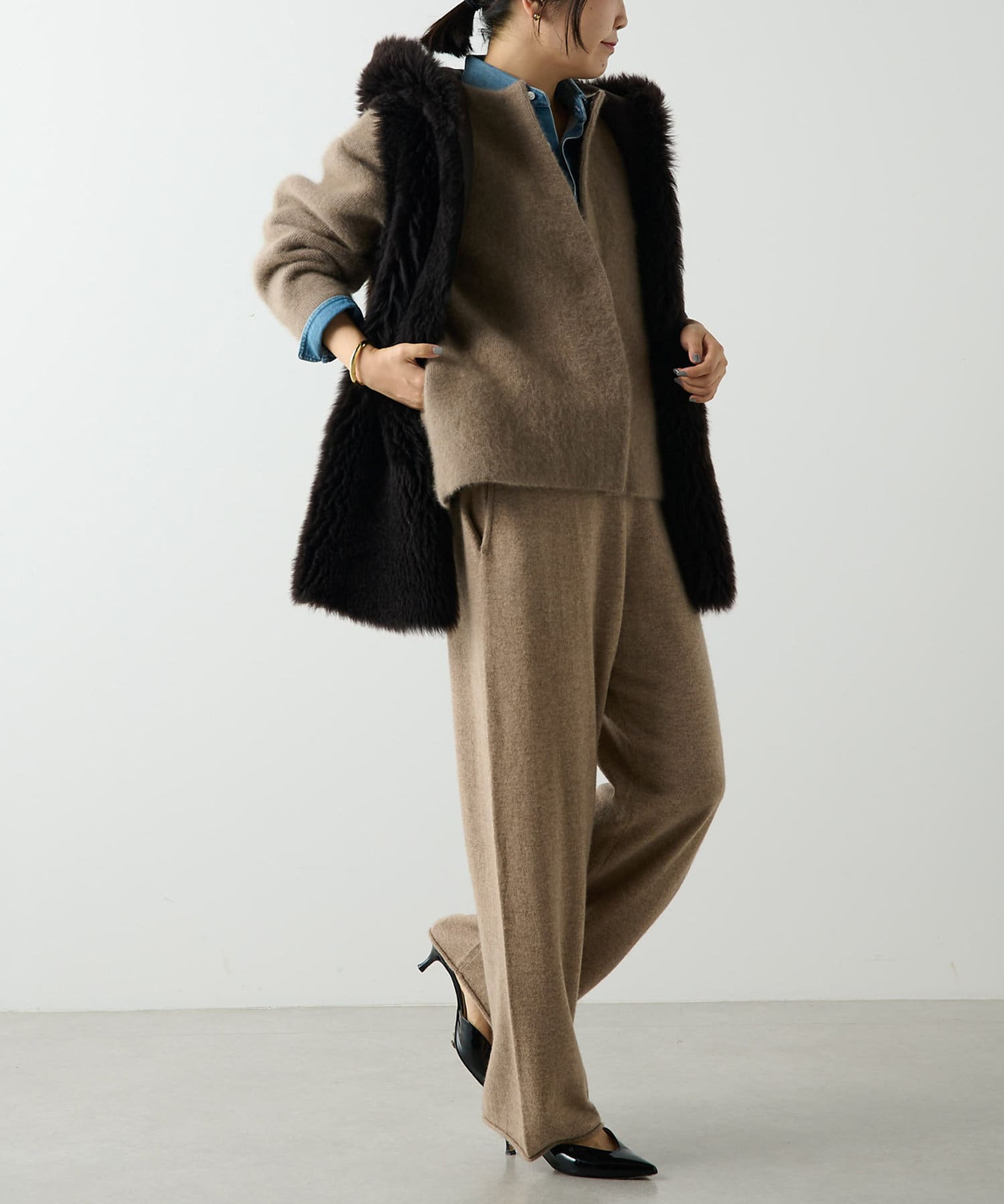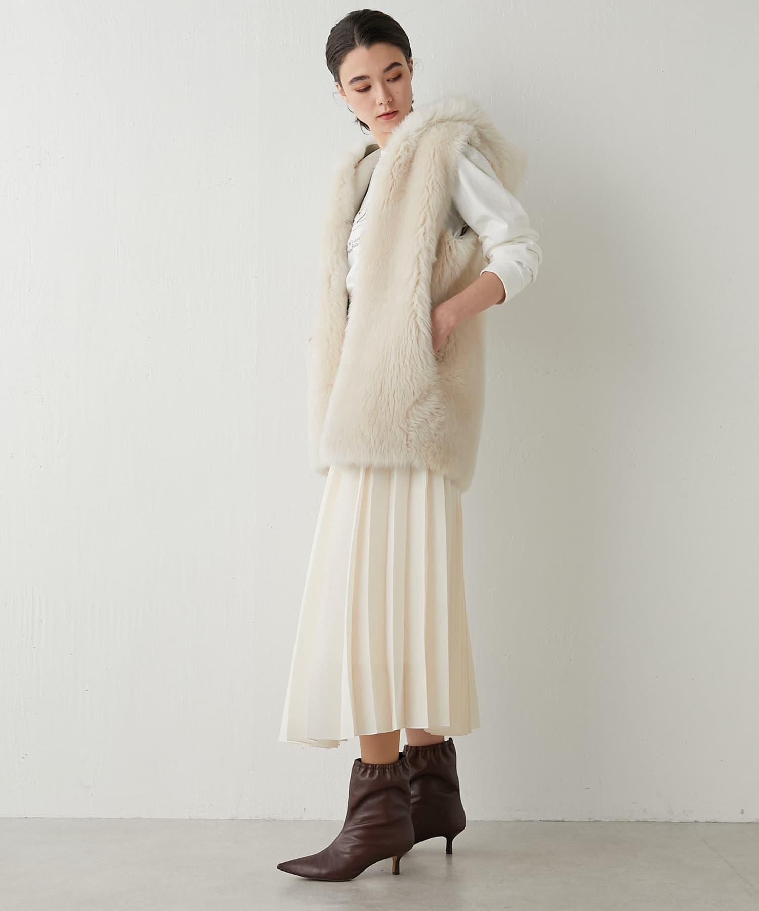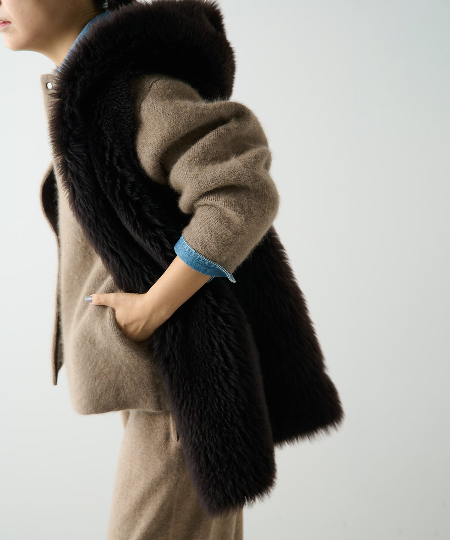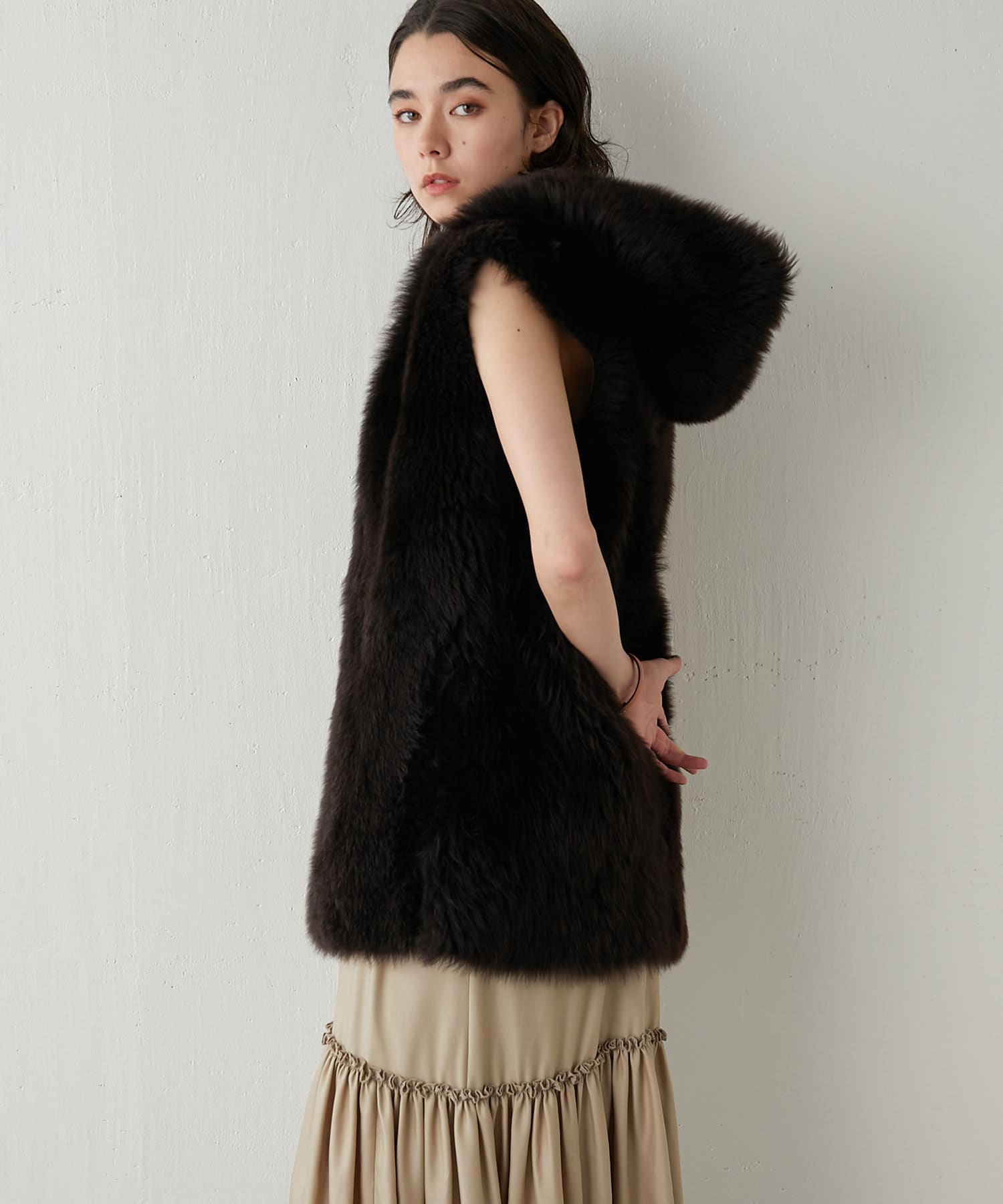 ■カジュアルにもエレガントにもなり過ぎない、日常にフィットするムートンをテーマにしたファーベスト。