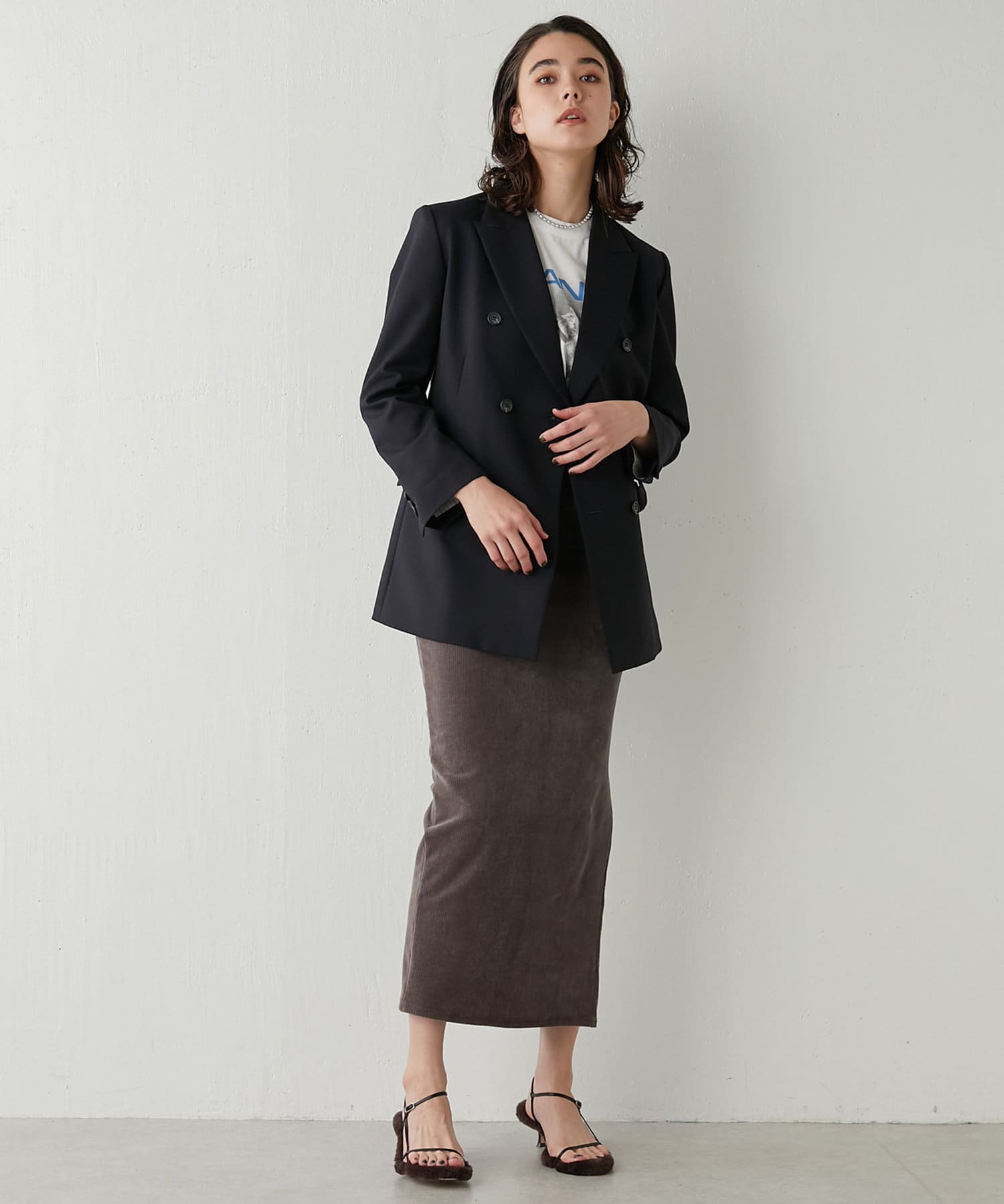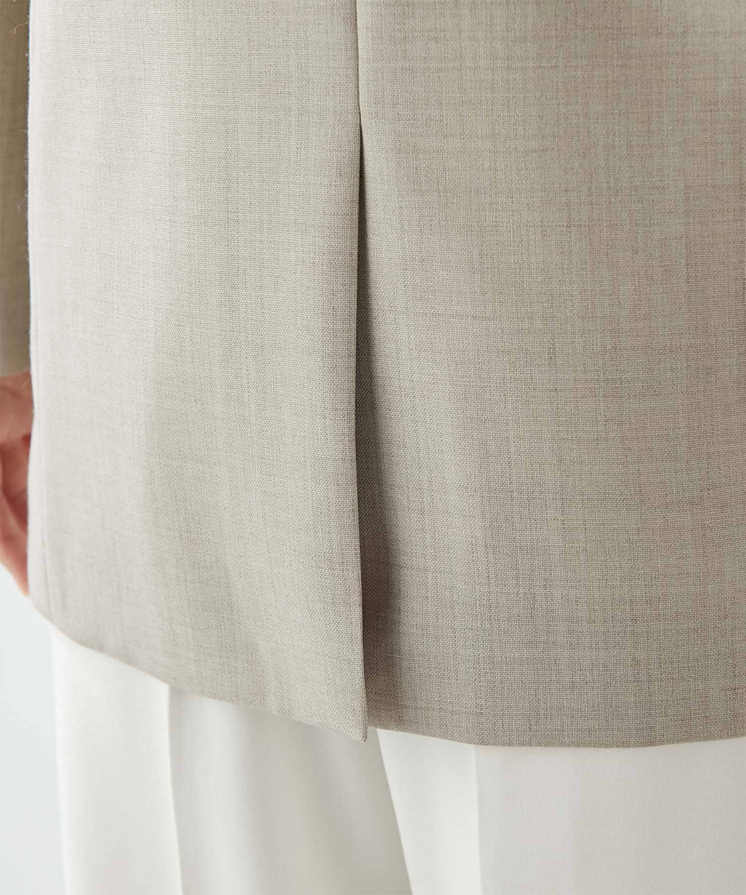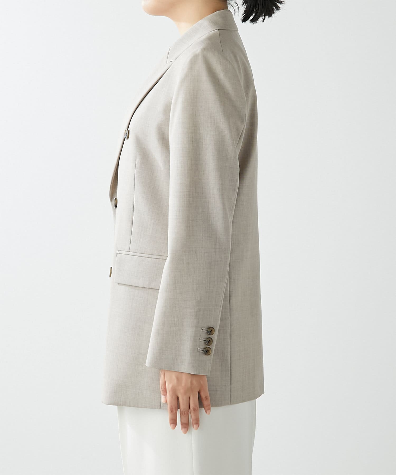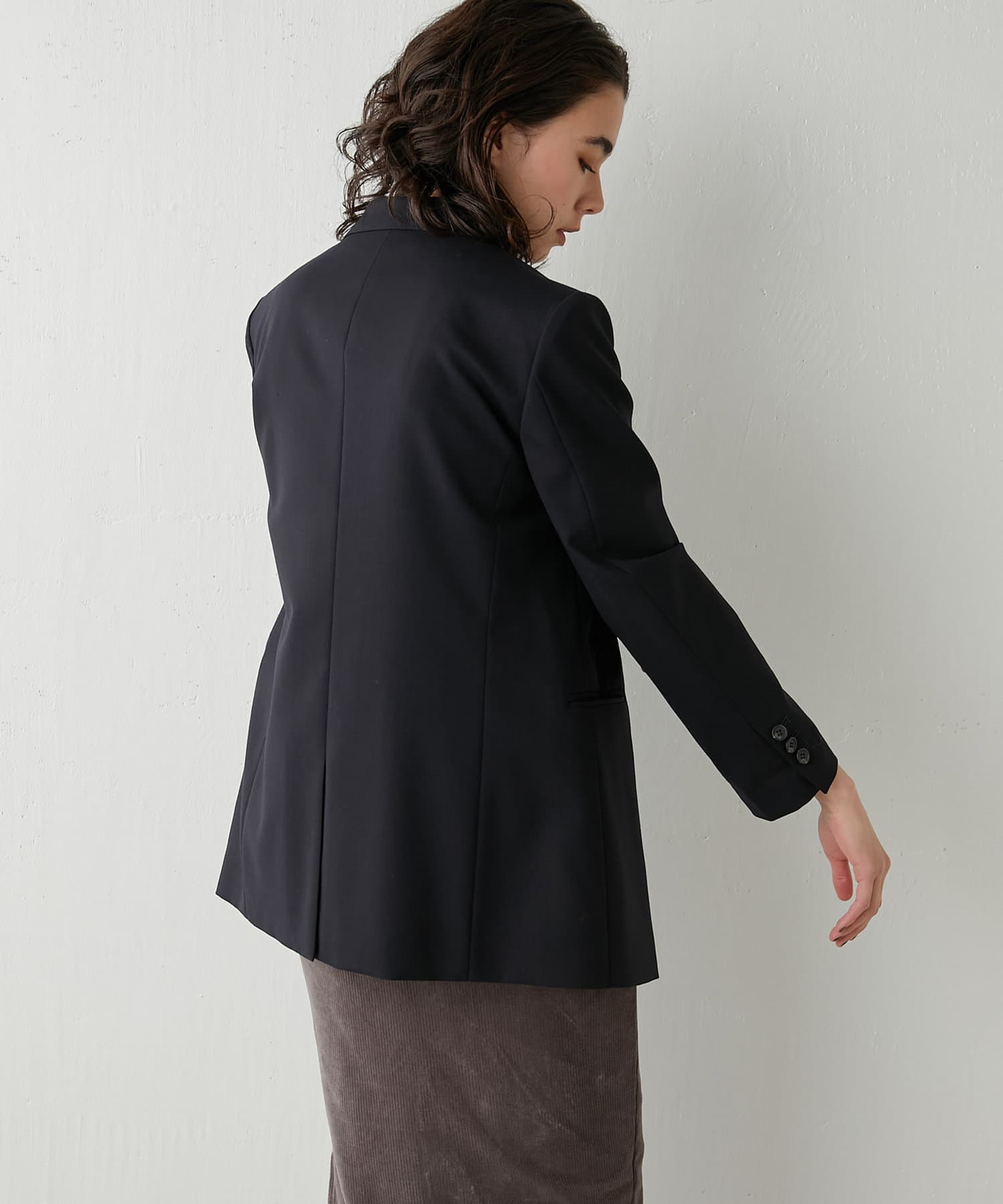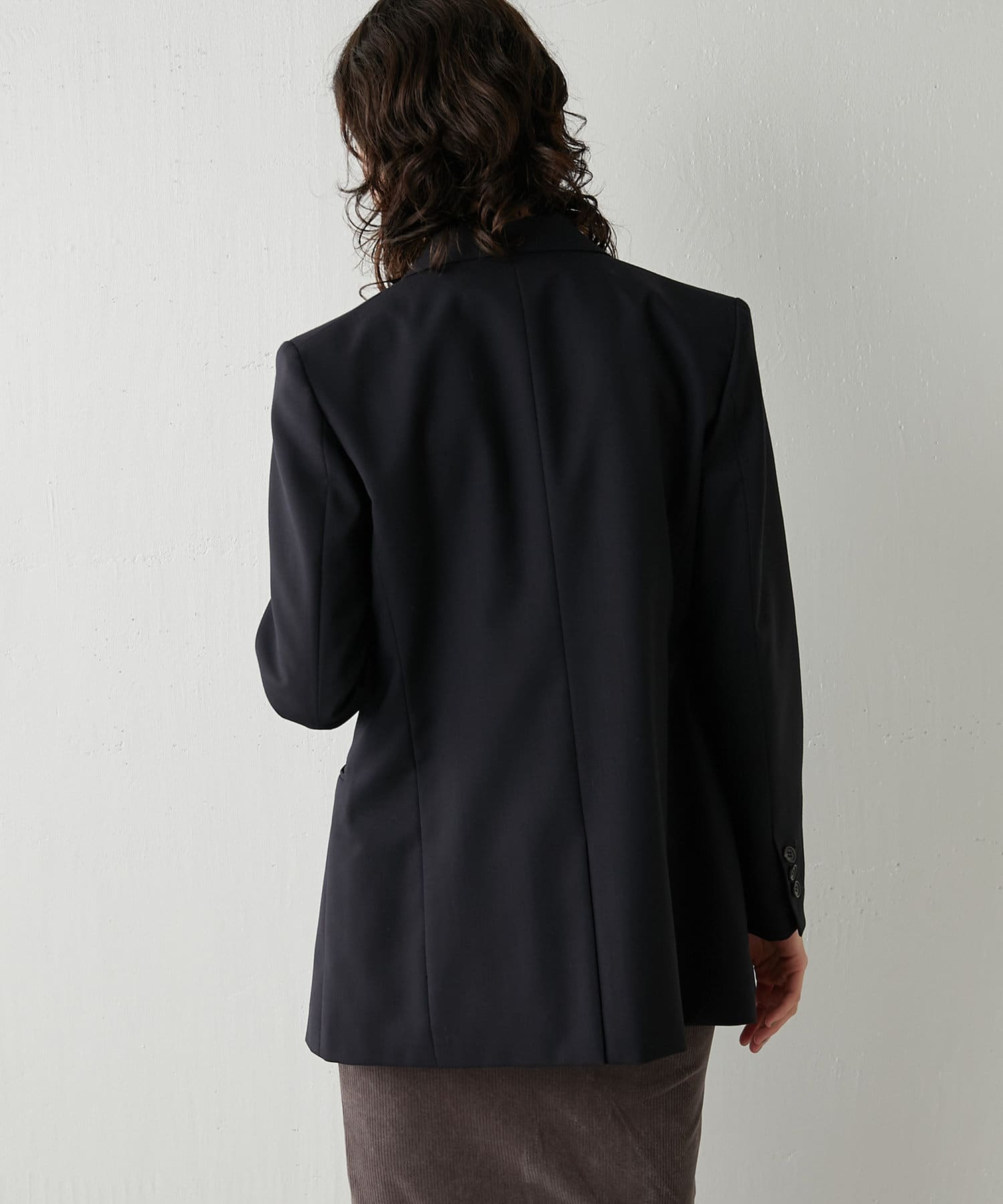 ■薄く入った肩パッドやウエスト位置、長めの着丈と程よいゆとりのあるシルエットがスタイリングの幅を広げてくれる優秀ジャケット。
