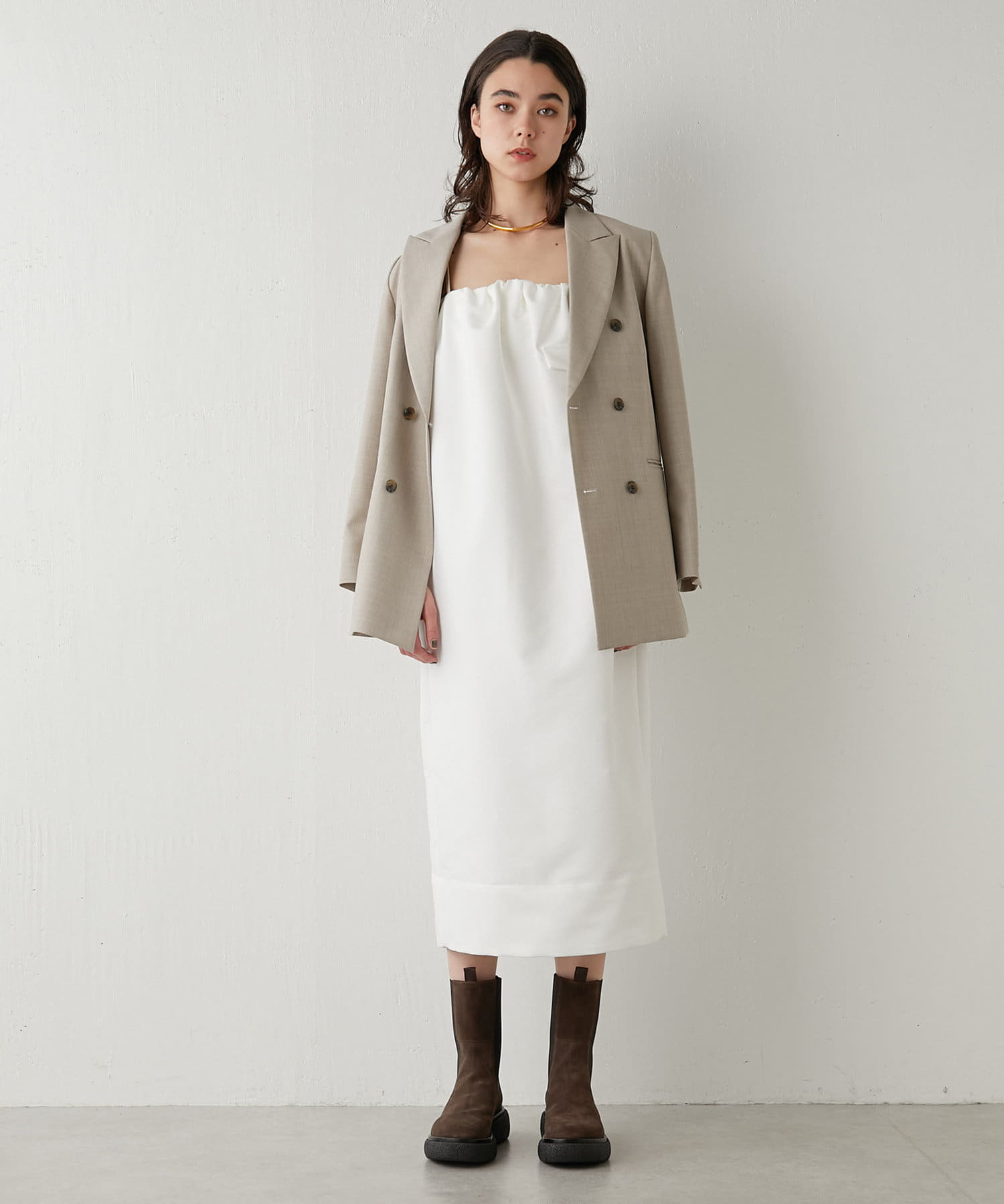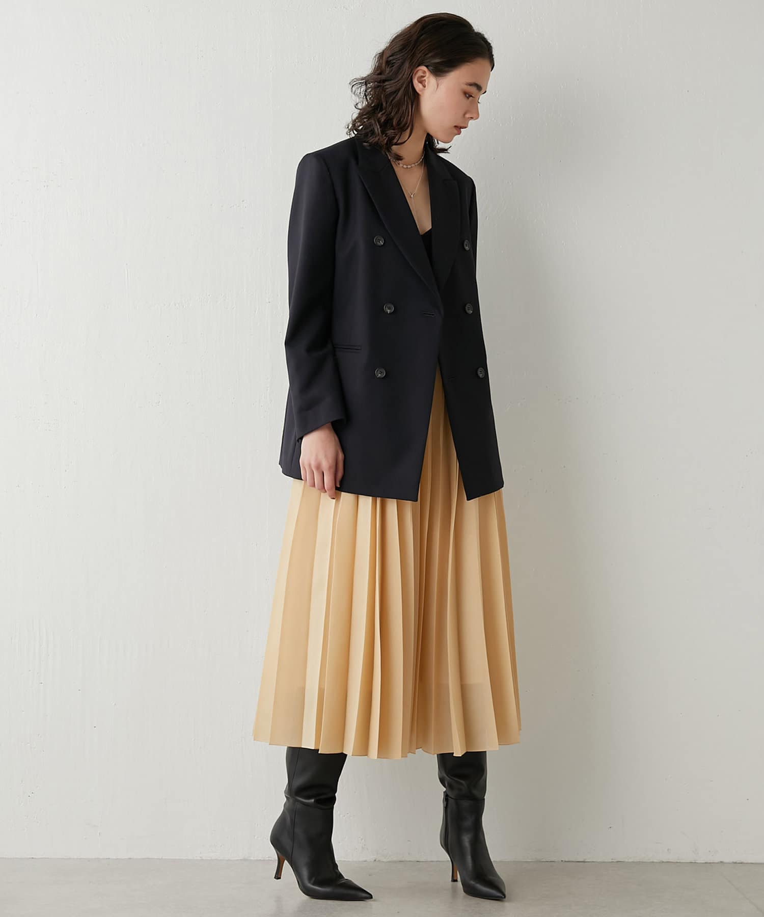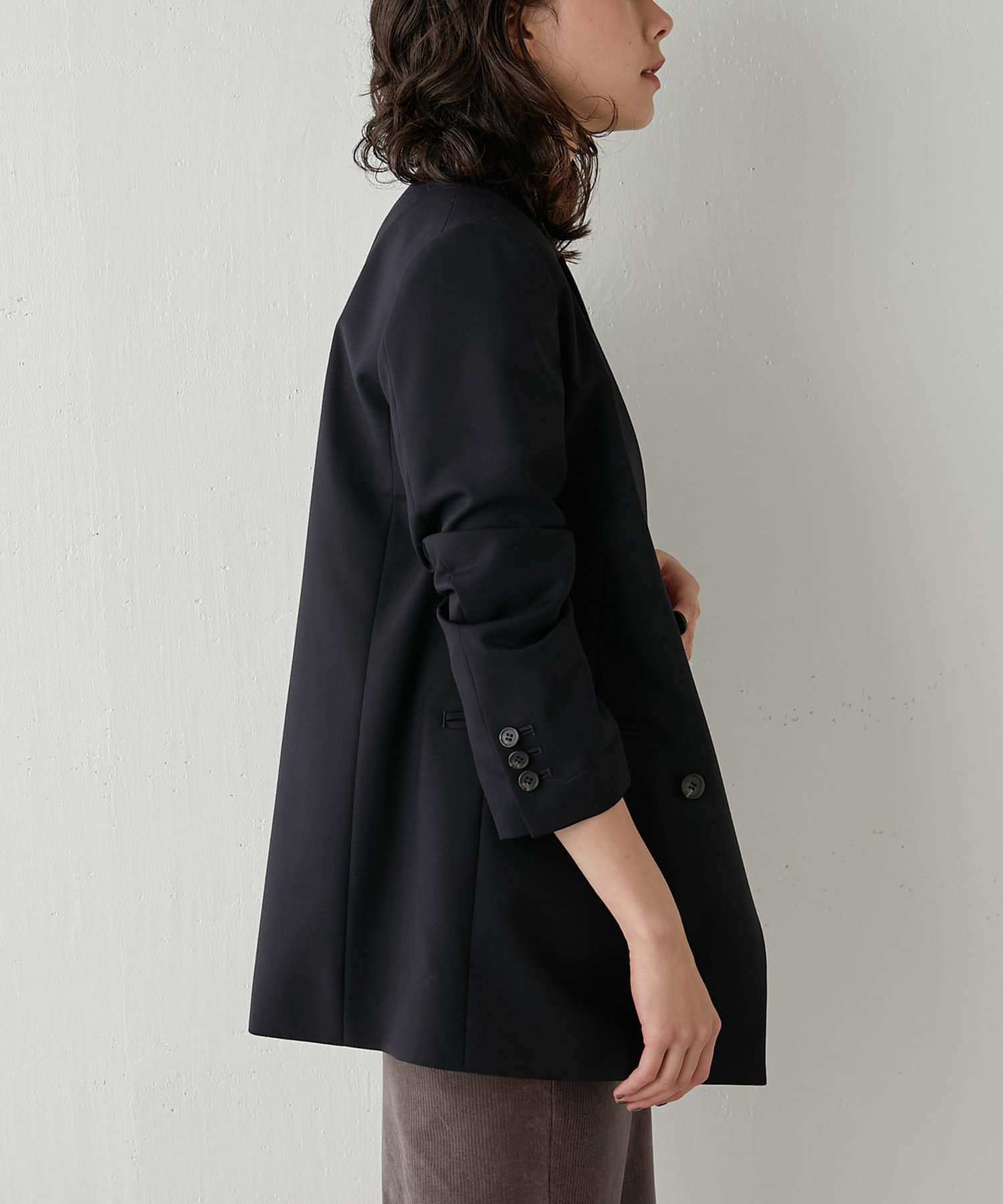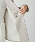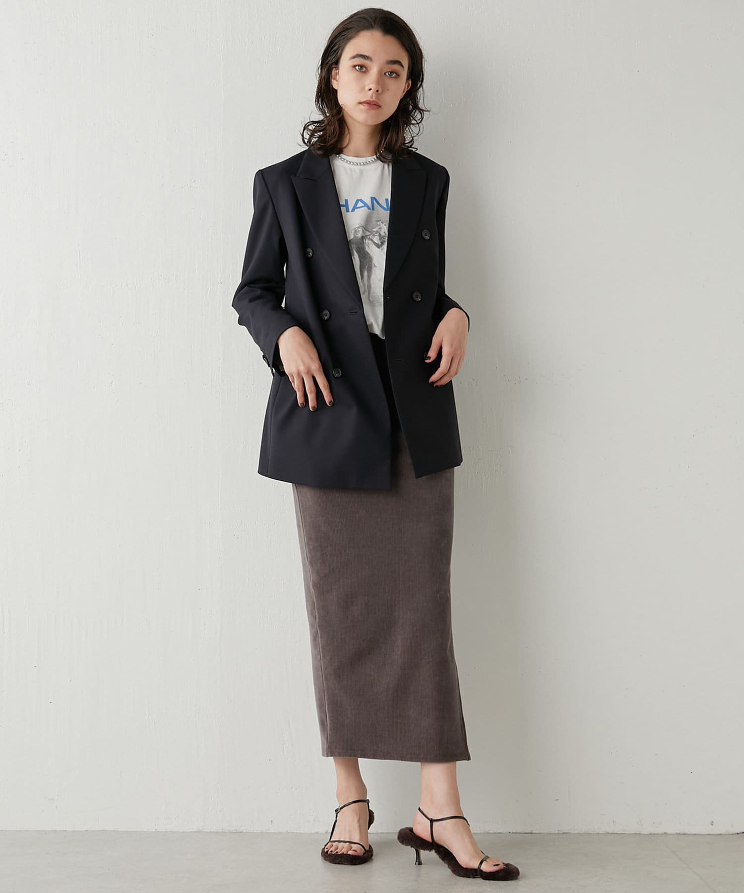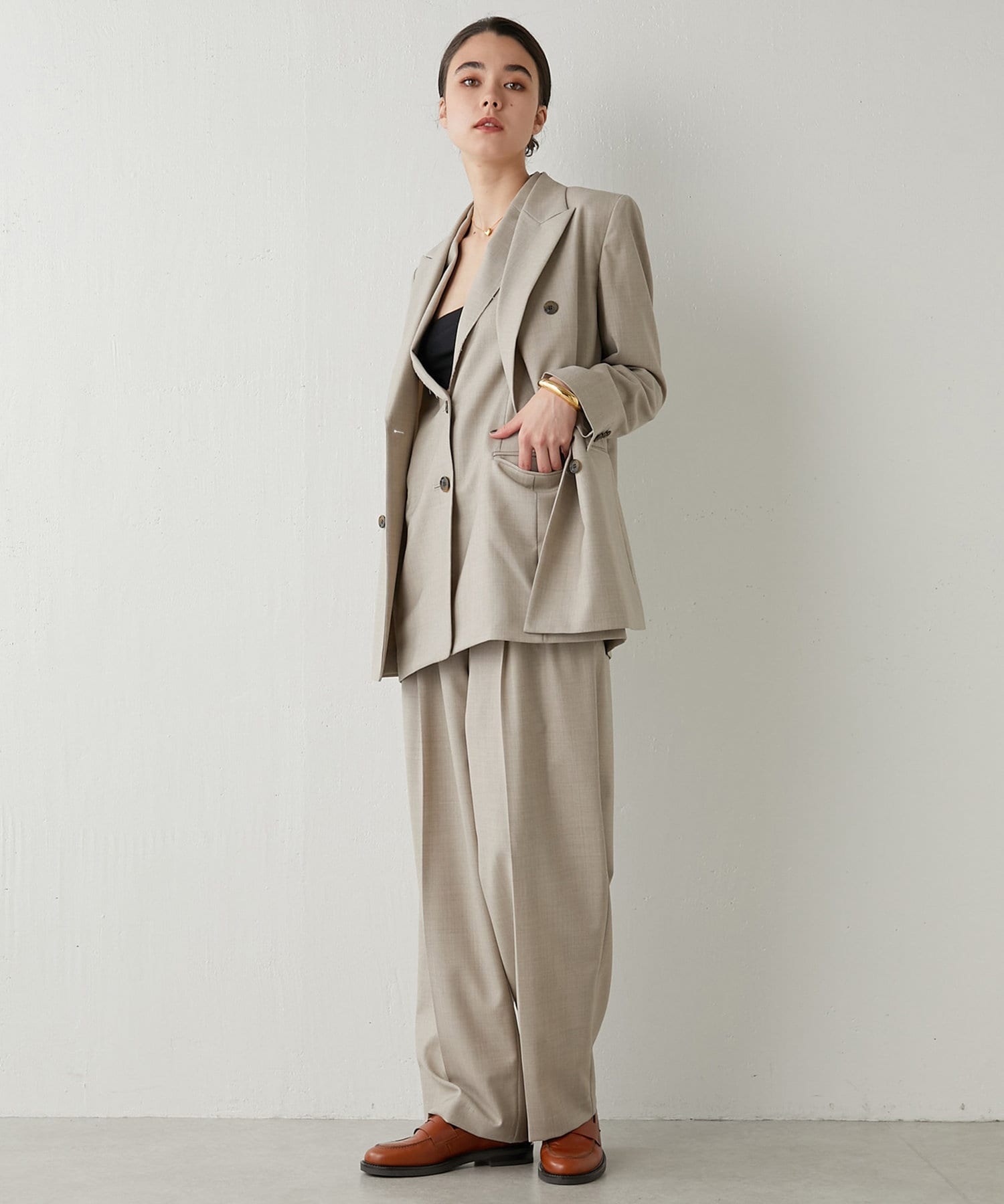 ■薄く入った肩パッドやウエスト位置、長めの着丈と程よいゆとりのあるシルエットがスタイリングの幅を広げてくれる優秀ジャケット。