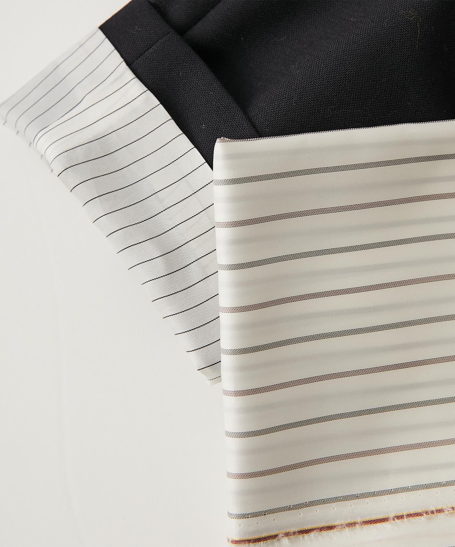 ■袖裏にはカラー毎に異なるストライプを用い、袖口を折り返したときに覗く柄がポイントに。
