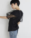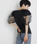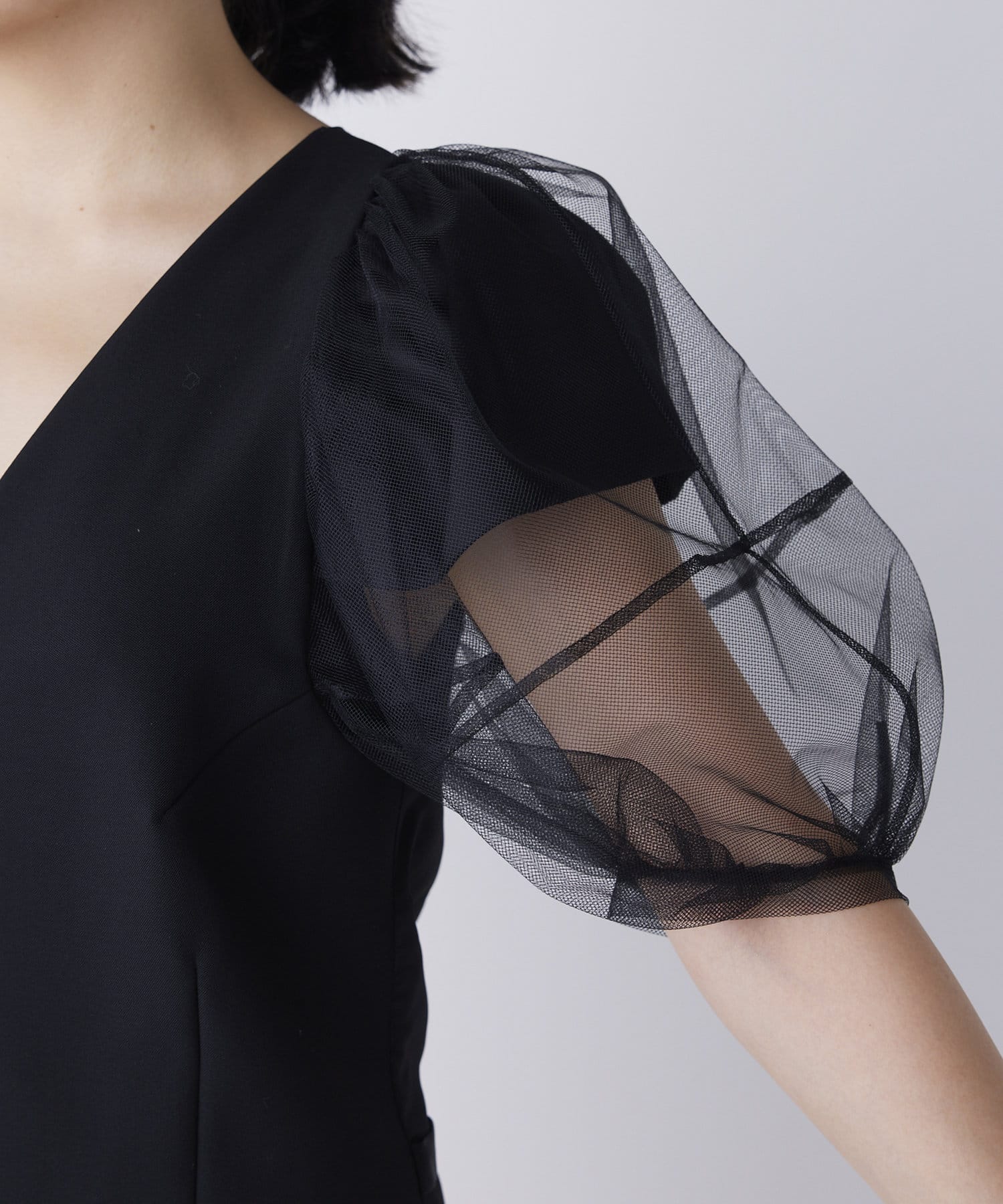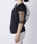 ■肩を覆うキャップスリーブがよりモードな印象を引き立て、袖のフォルムをきれいに演出。