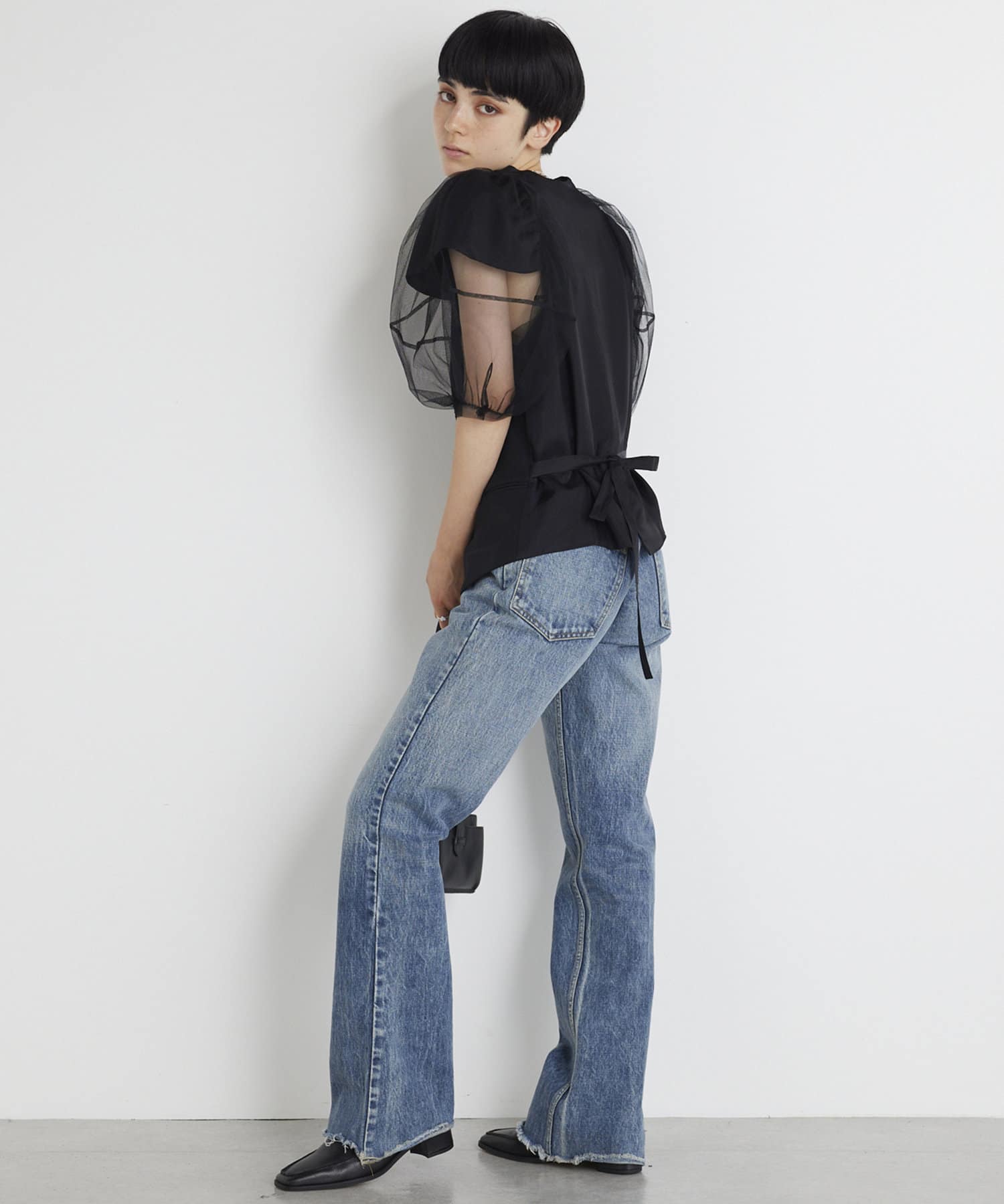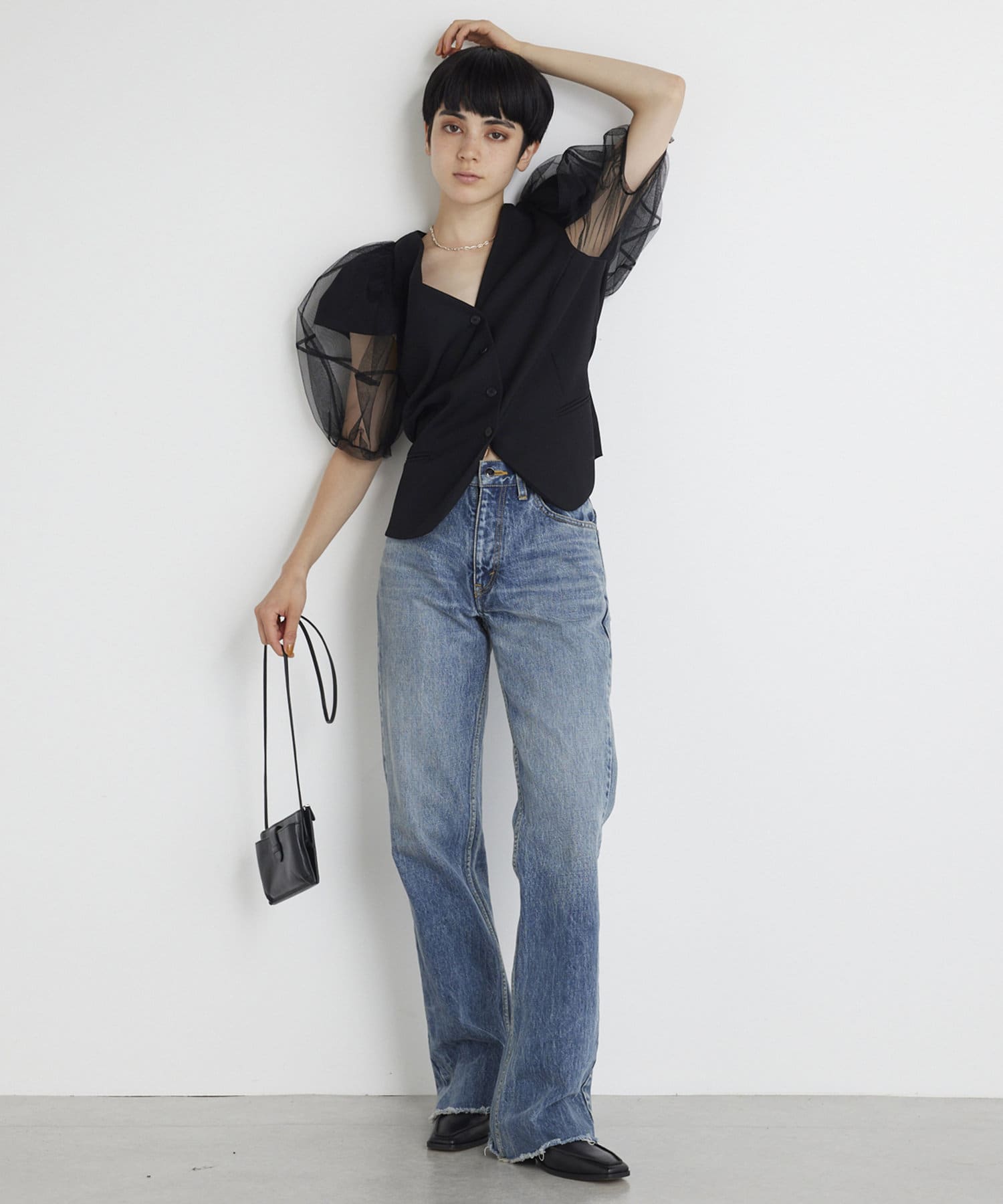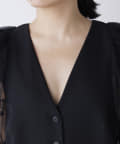 ■マニッシュなベストの雰囲気と甘めのスリーブとのバランスが個性的で、一枚で着映えるアイテム。