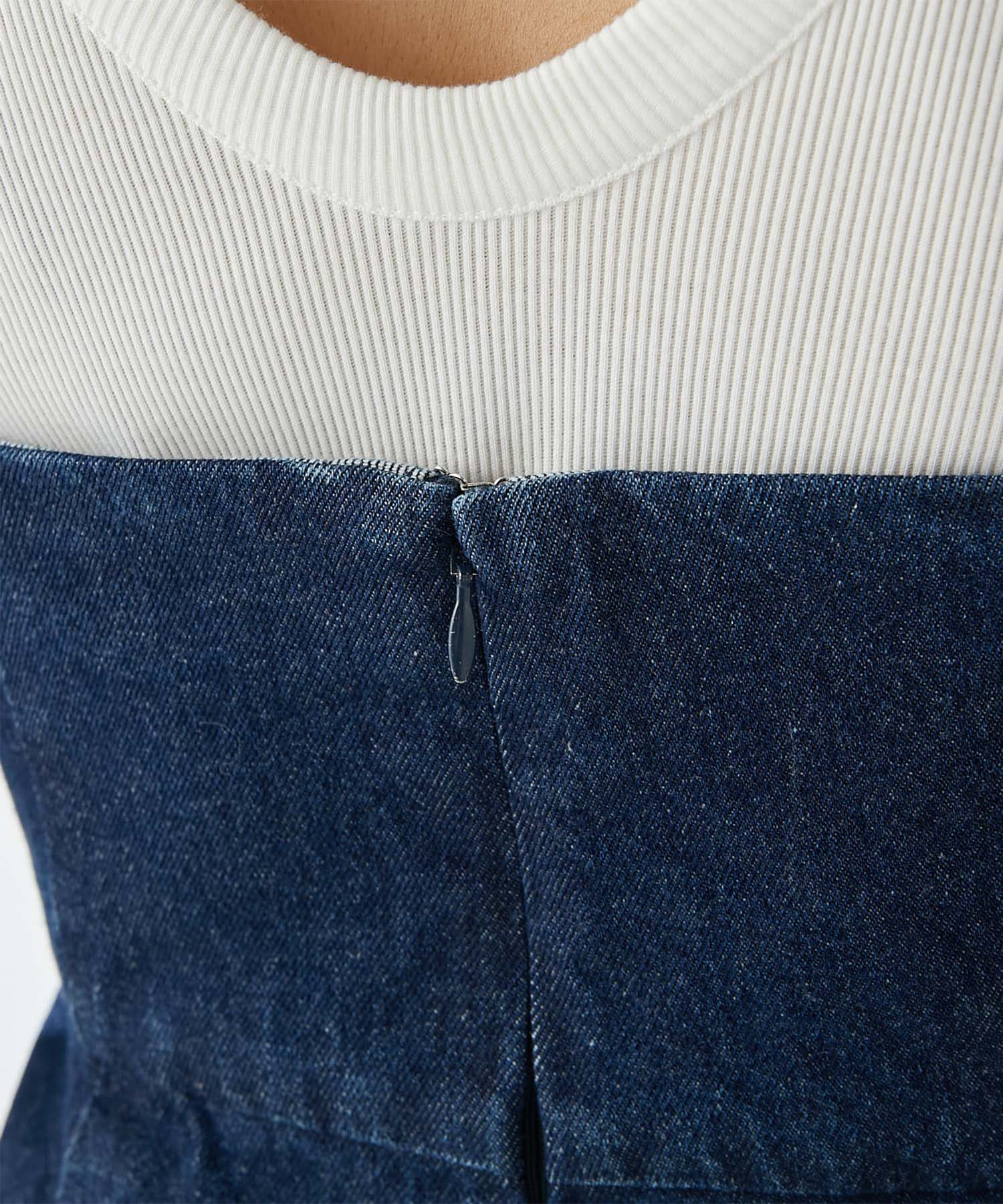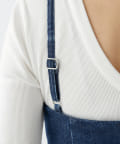 トップスはタイトめでビスチェのような印象です。ボトムとのシルエットの差がメリハリとなり、オシャレ。一枚でサマになるサロペットで、インナーを変えてあげれば季節を問わず楽しめるアイテムです。