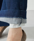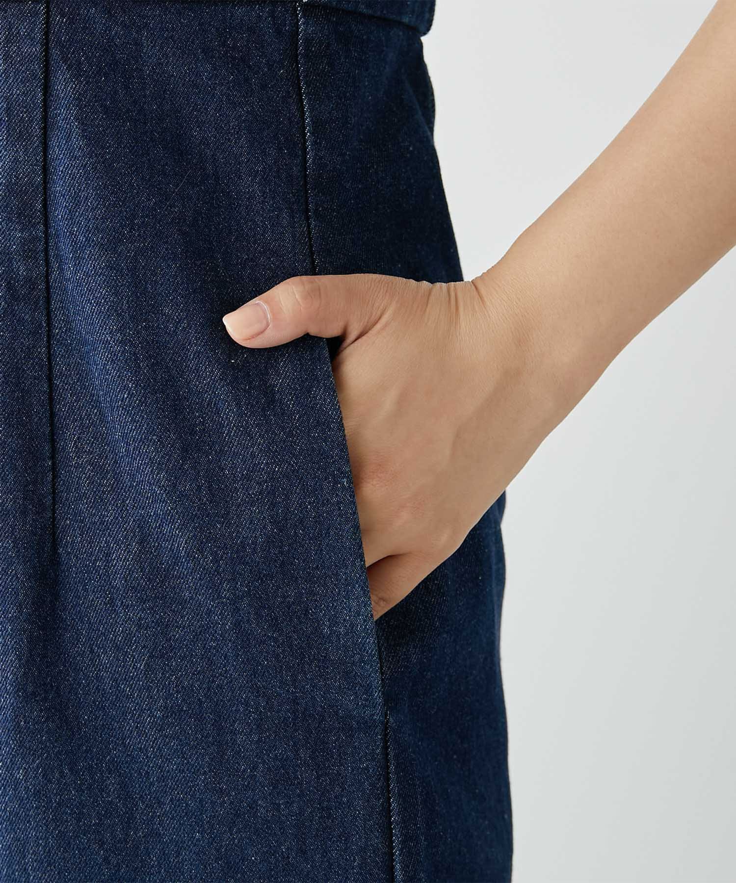 ■女性らしいアイテムながら、加工感の少ないクリーンなデニムがモードな雰囲気に。