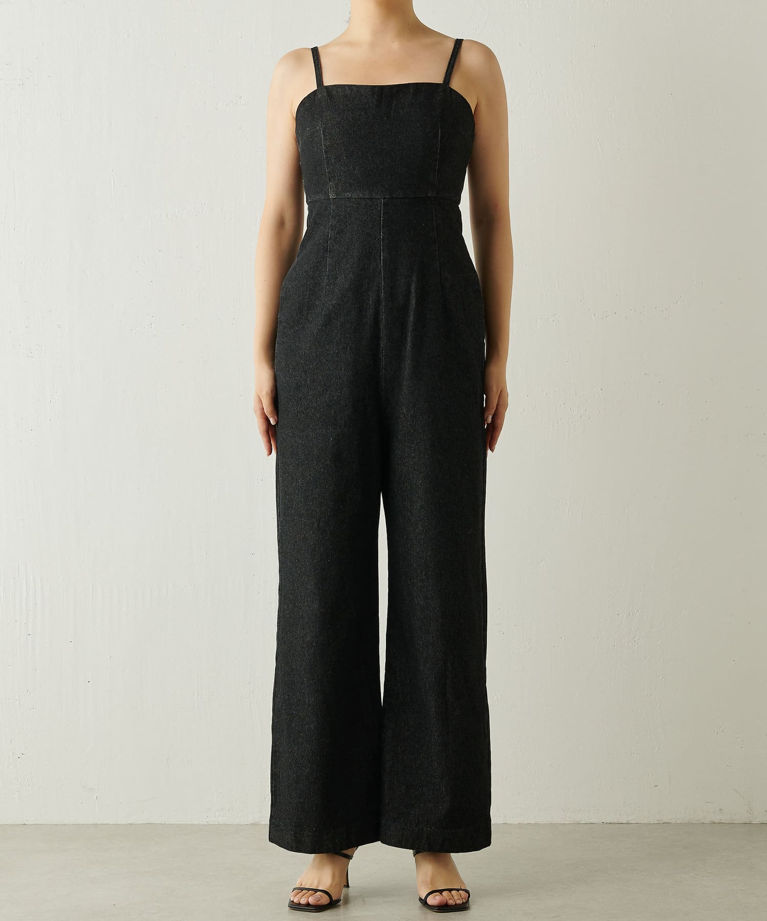 ビスチェのような上半身と、ハイウエストパンツがドッキングしたようなデザインで、とにかくスタイルアップ効果抜群です!ウエストをきゅっと見せてくれ、少しワイドなストレートシルエットがお尻や太ももの張りを目立たせずきれいに見せてくれます。