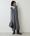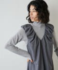 ■襟ぐりに施したギャザーのボリューム感が華やかな印象をプラス。