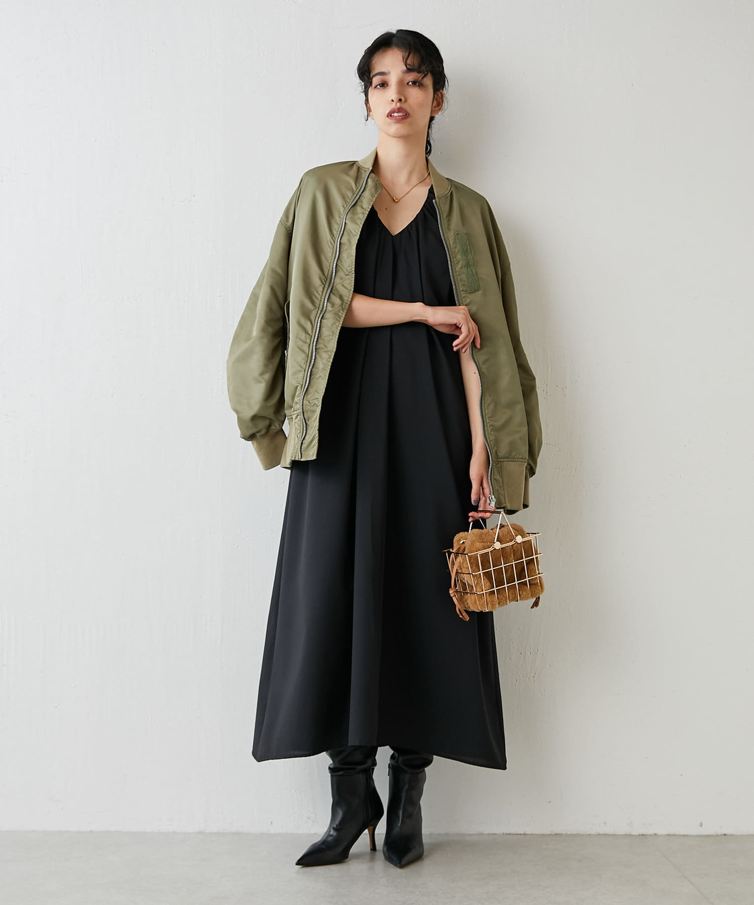 ■一枚で楽しむのはもちろん、カットソーやタートルネックなどをレイヤードすればロングシーズン着回し可能。