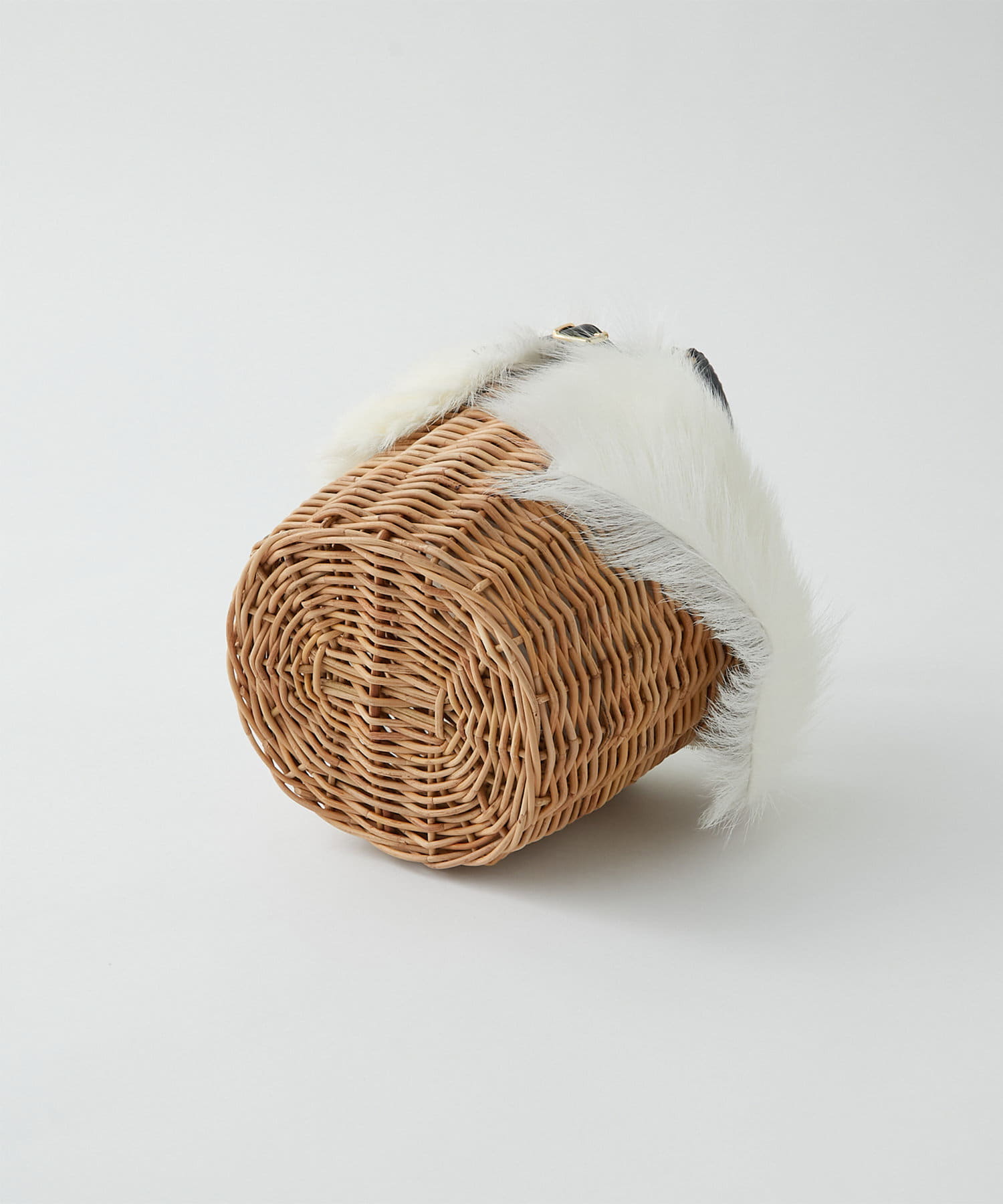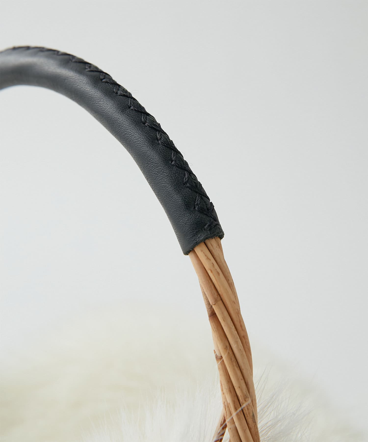 ■フラップ部分にゴートファーを使用したワンハンドルのカゴバッグ。