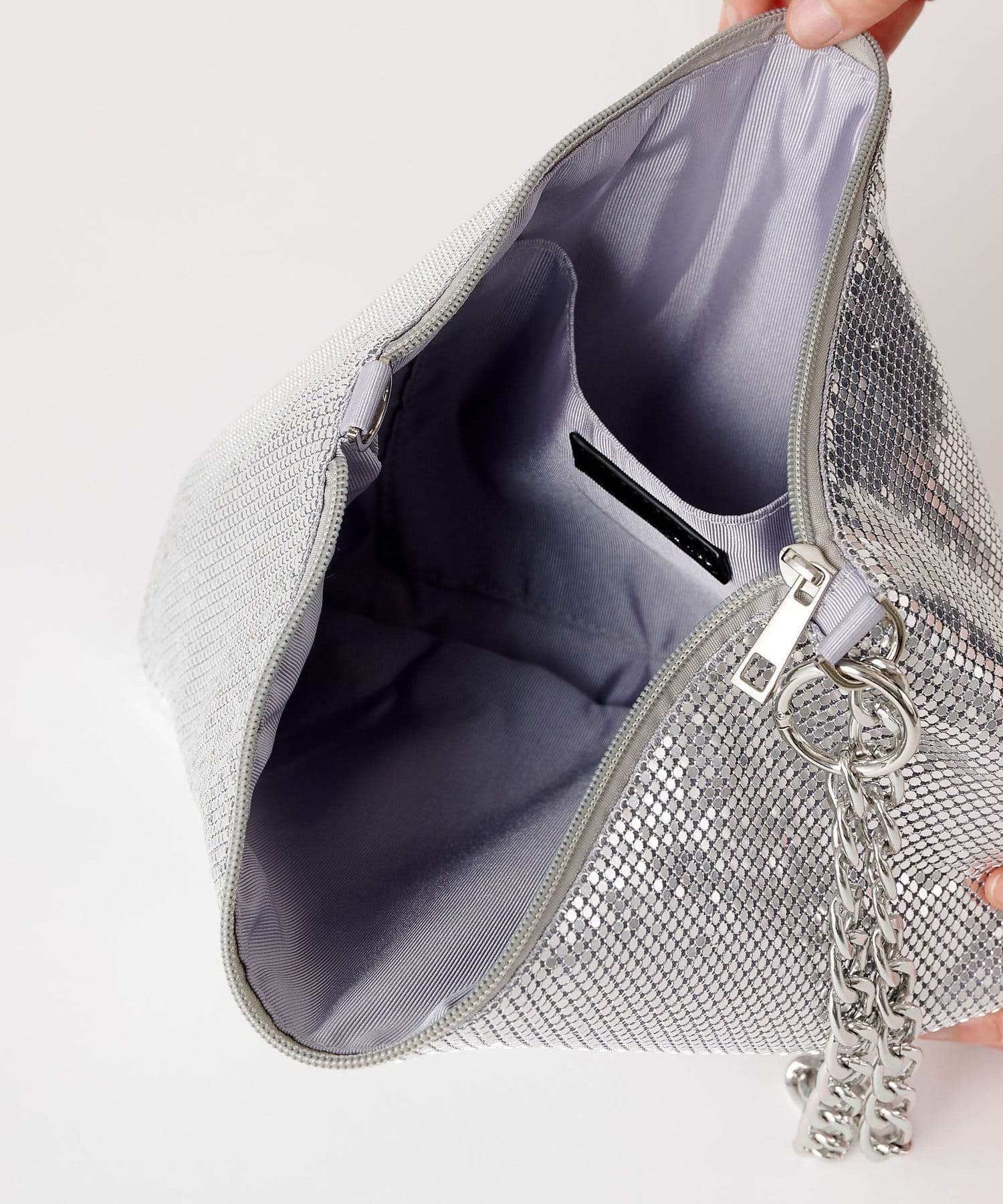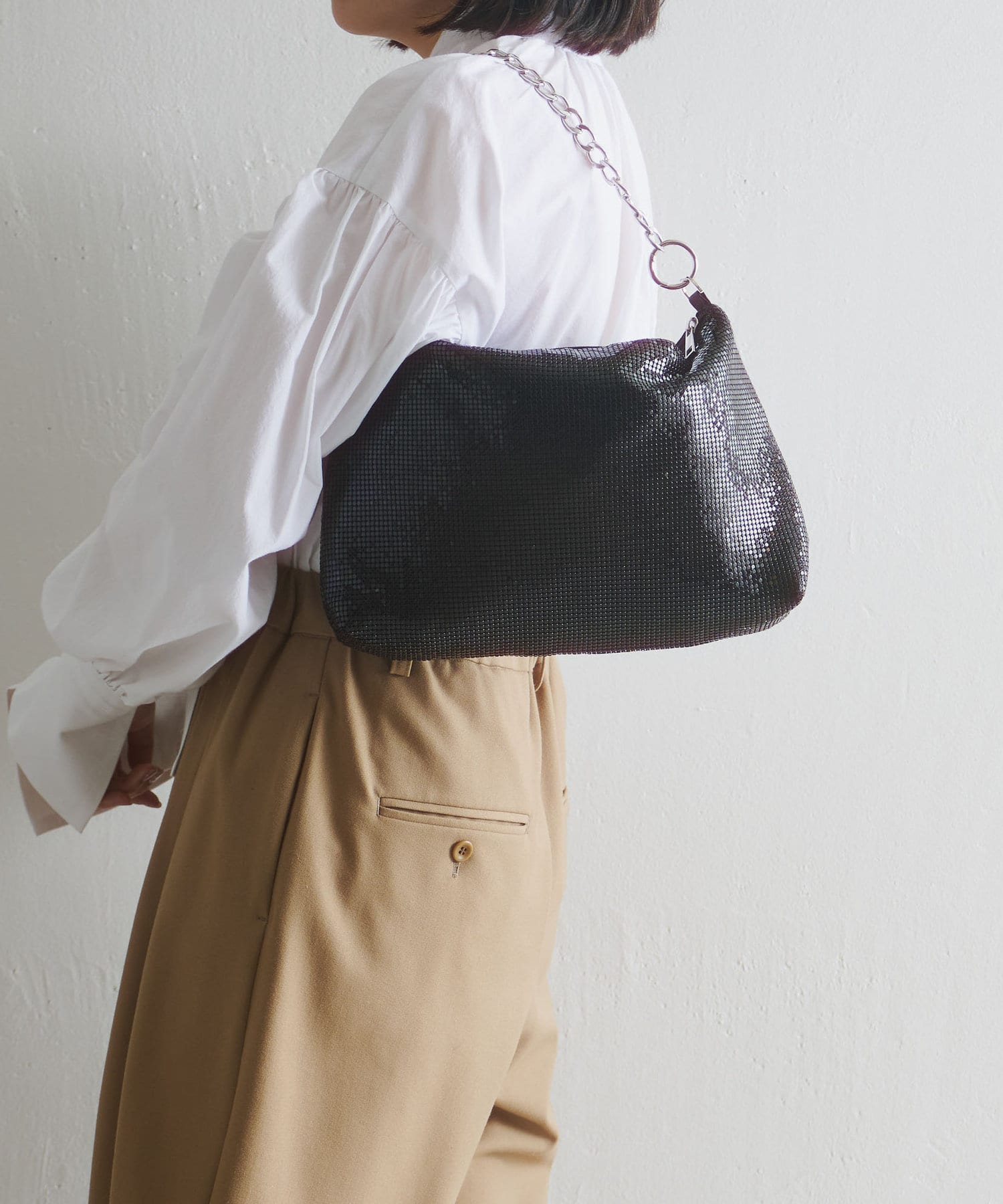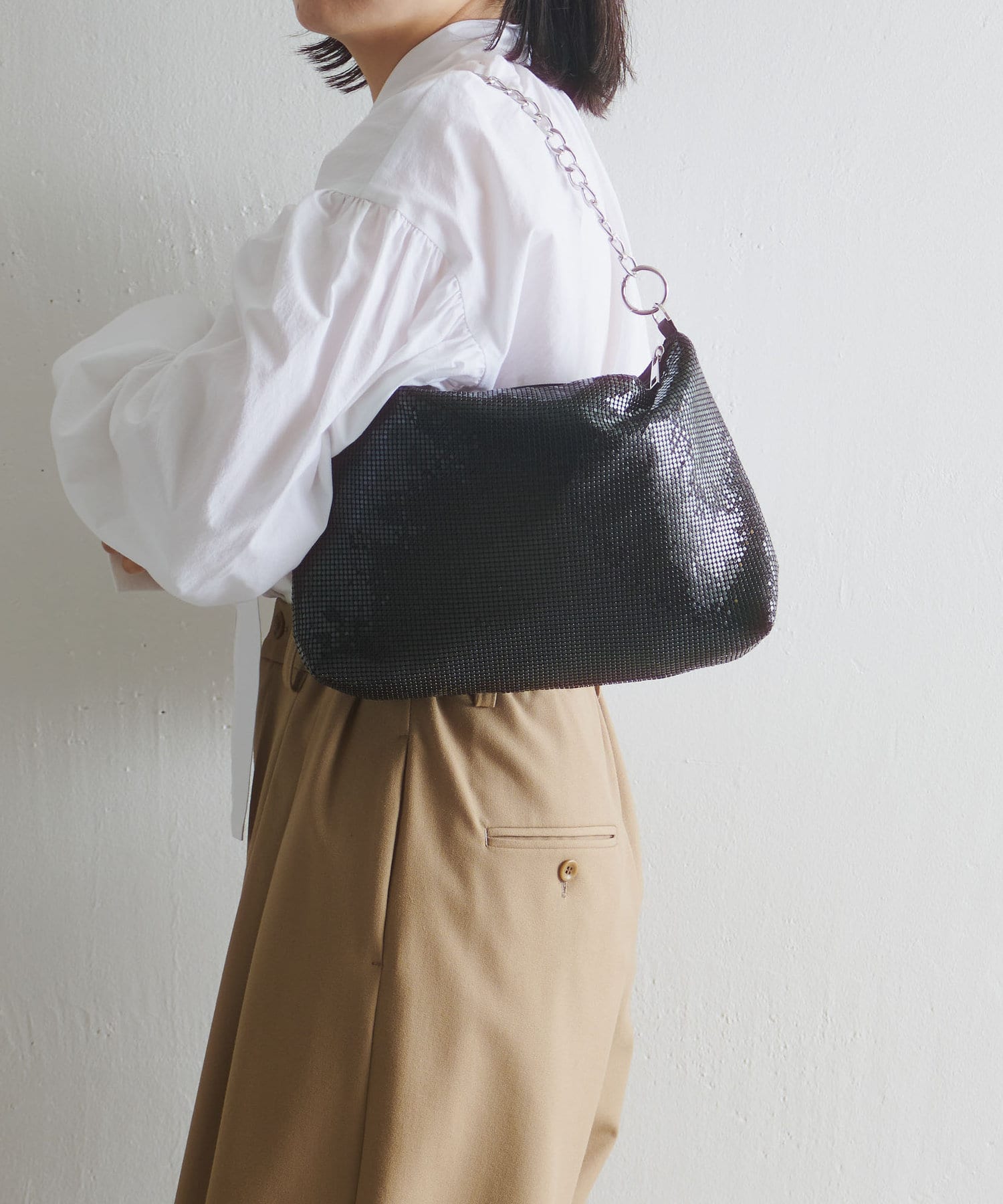 スタイリングにアクセントを効かせるメタルメッシュバッグ
