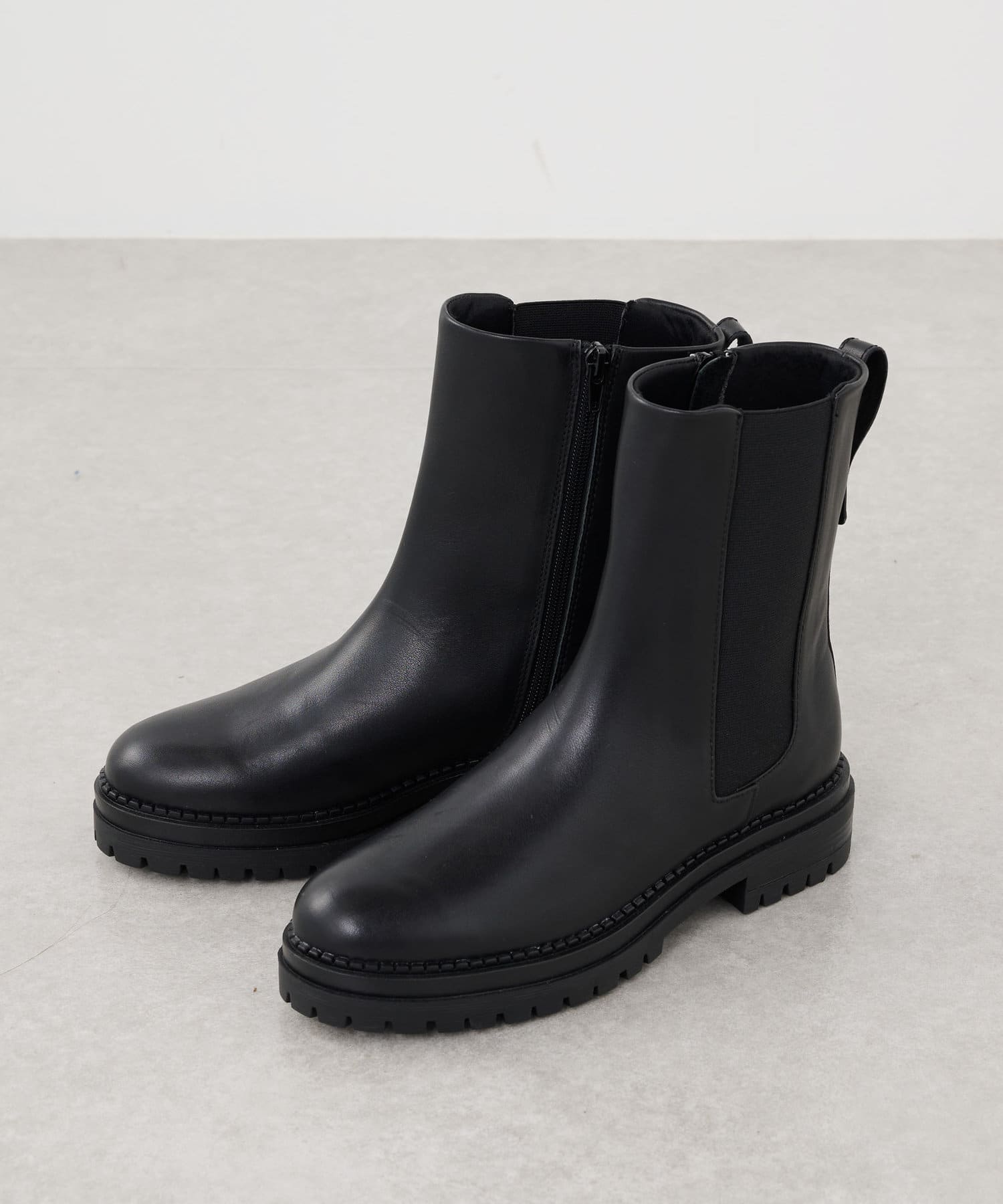 ■牛革スムース素材を使用したサイドゴアブーツ。