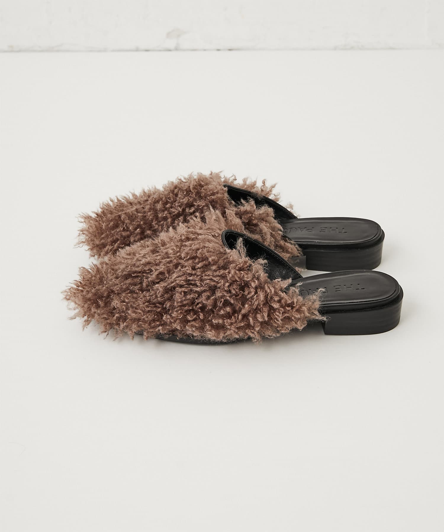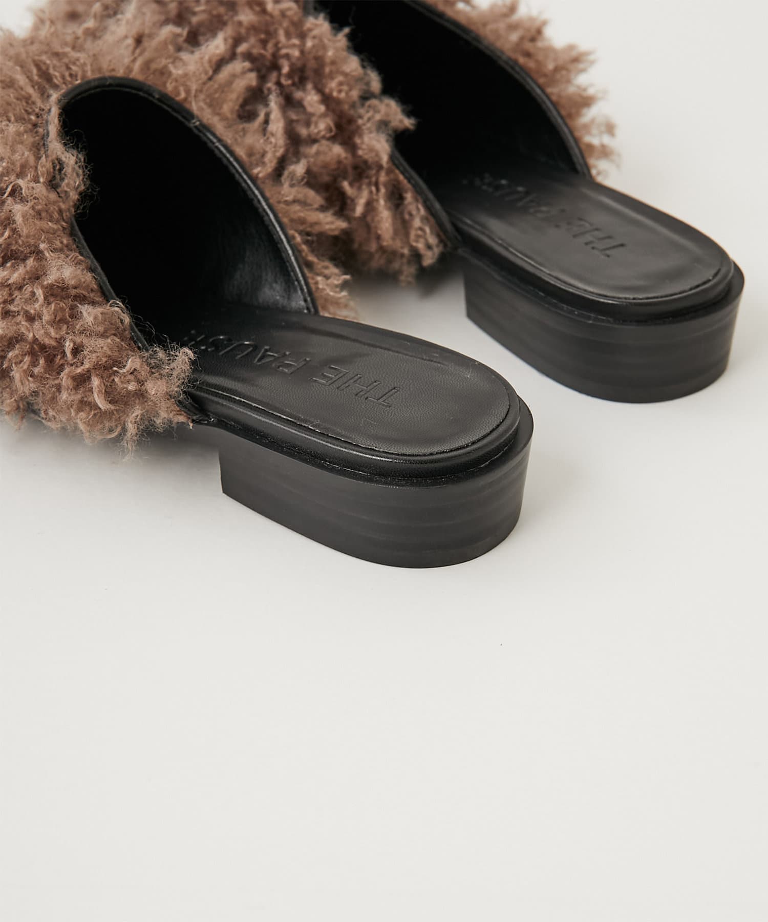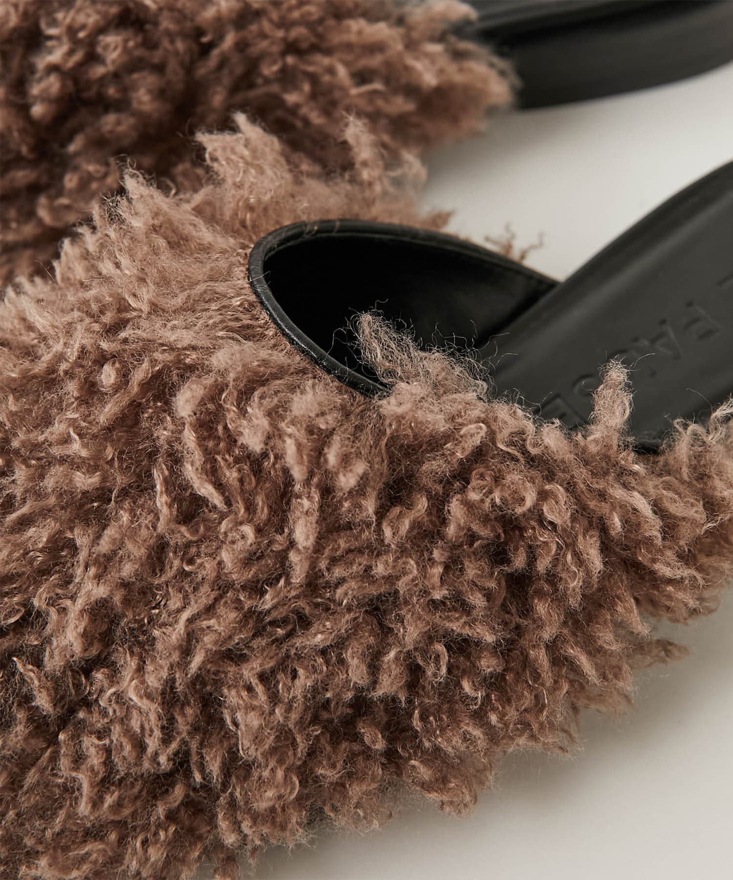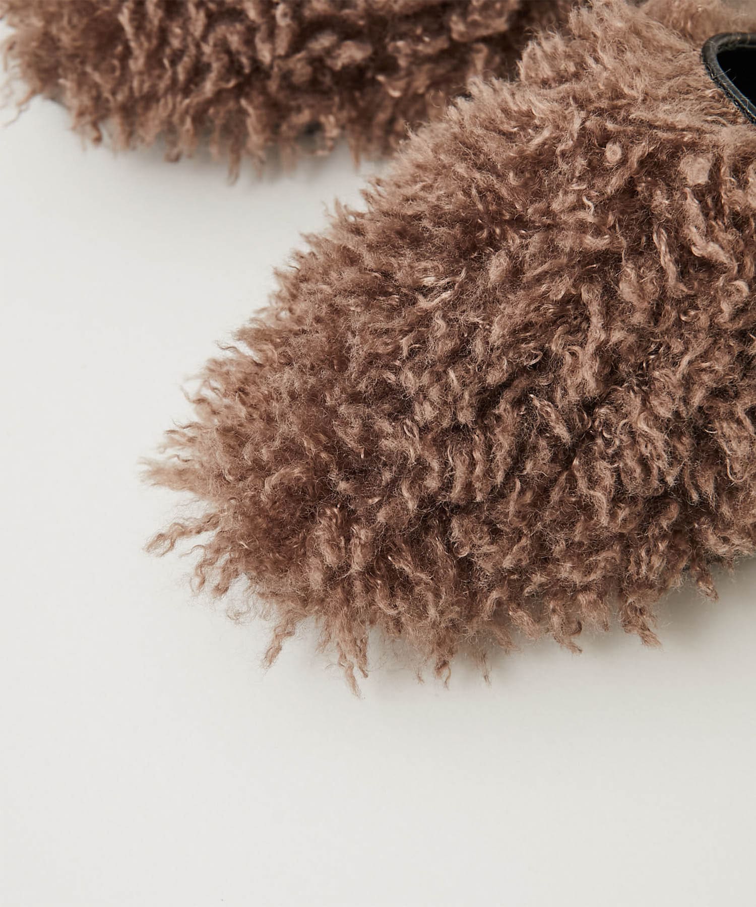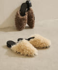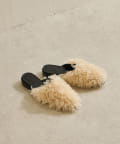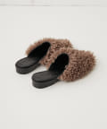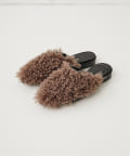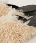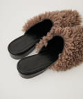 ■ウェーブ感のあるエコファーを使用したスリッパタイプのミュールサンダル。
