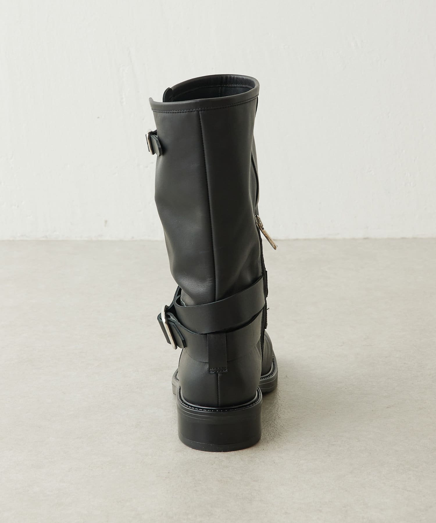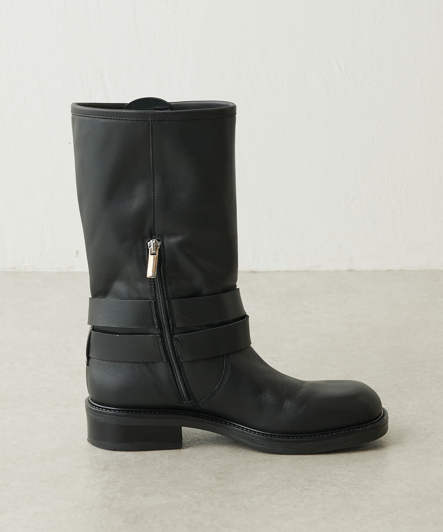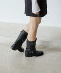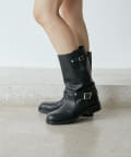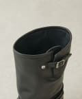 ■ハードなイメージのエンジニアブーツを、程よいスクエアトゥやマットなレザー使い、シルバーの大きなバックルでモードな印象に昇華させた一足。