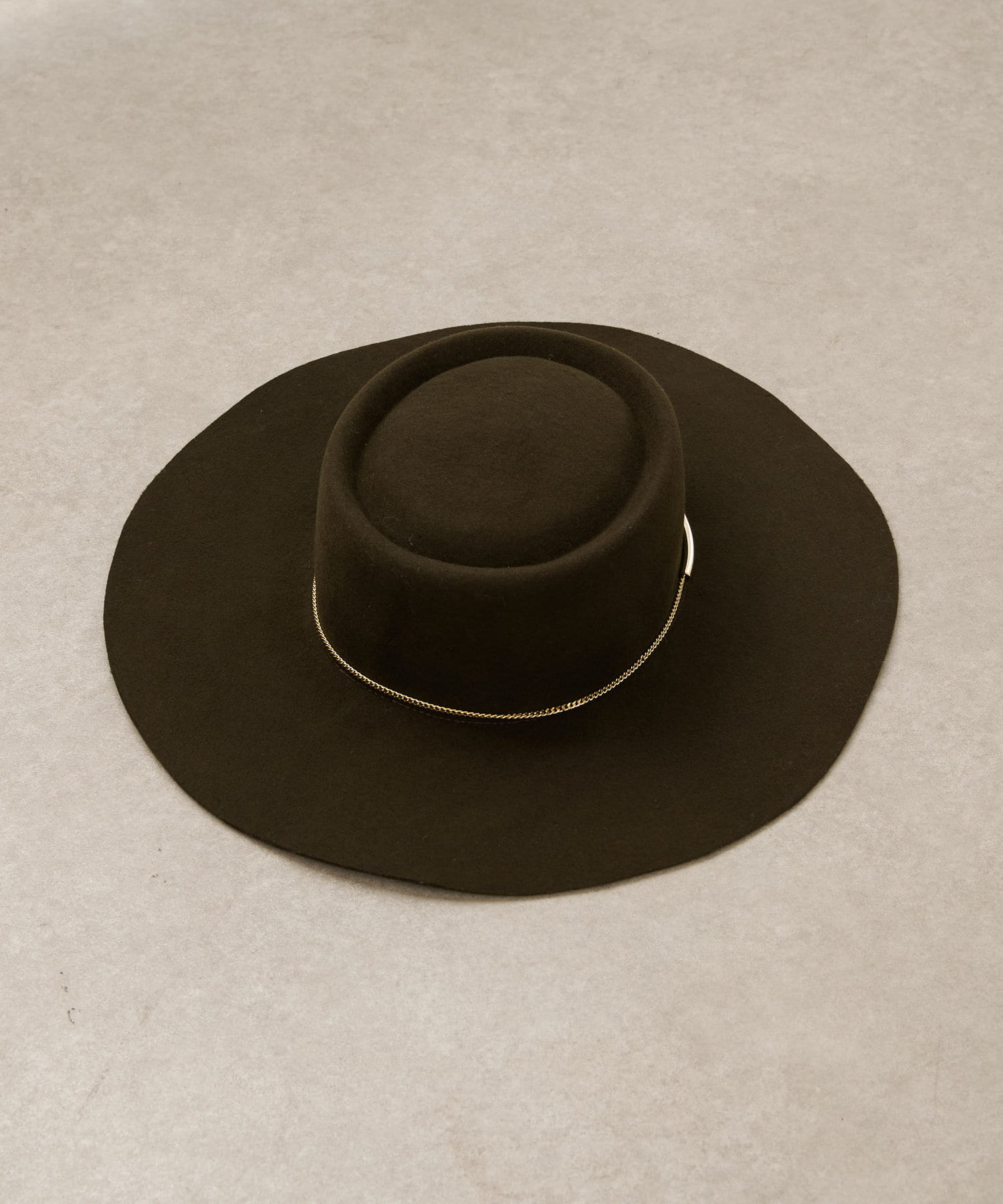 ■ゴールドのチェーンが華やかなアクセントを添えるウールハット。