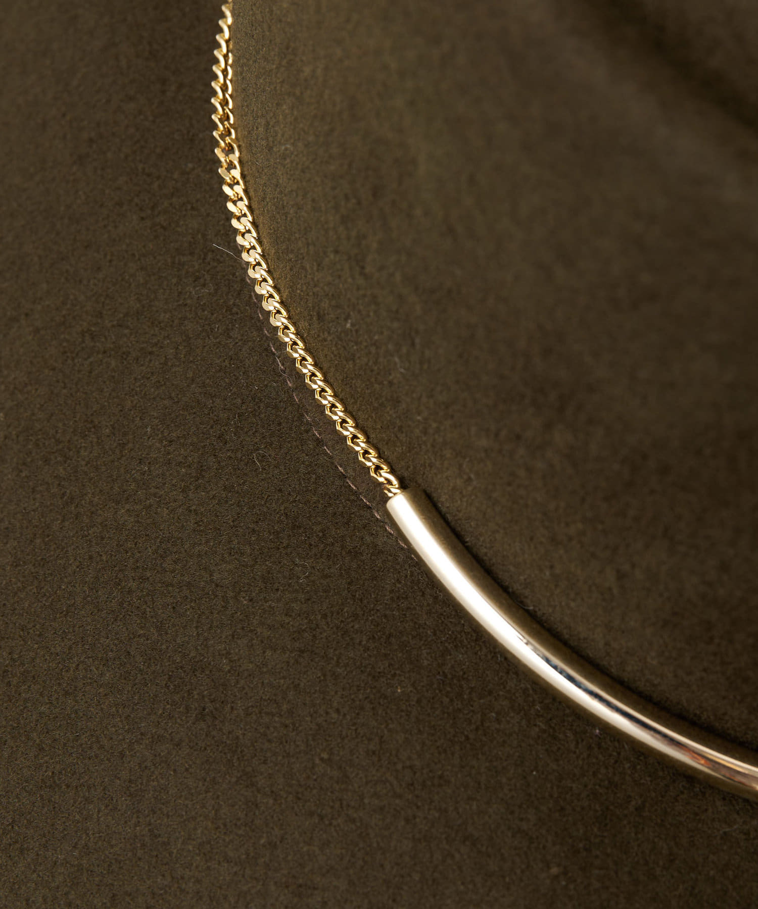ゴールドチェーンがアクセントに。トップが高すぎないので、いつものコーディネートに馴染みやすいです。上質なフェルト素材で大人スタイルにクラスアップしてくれます。