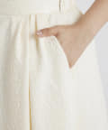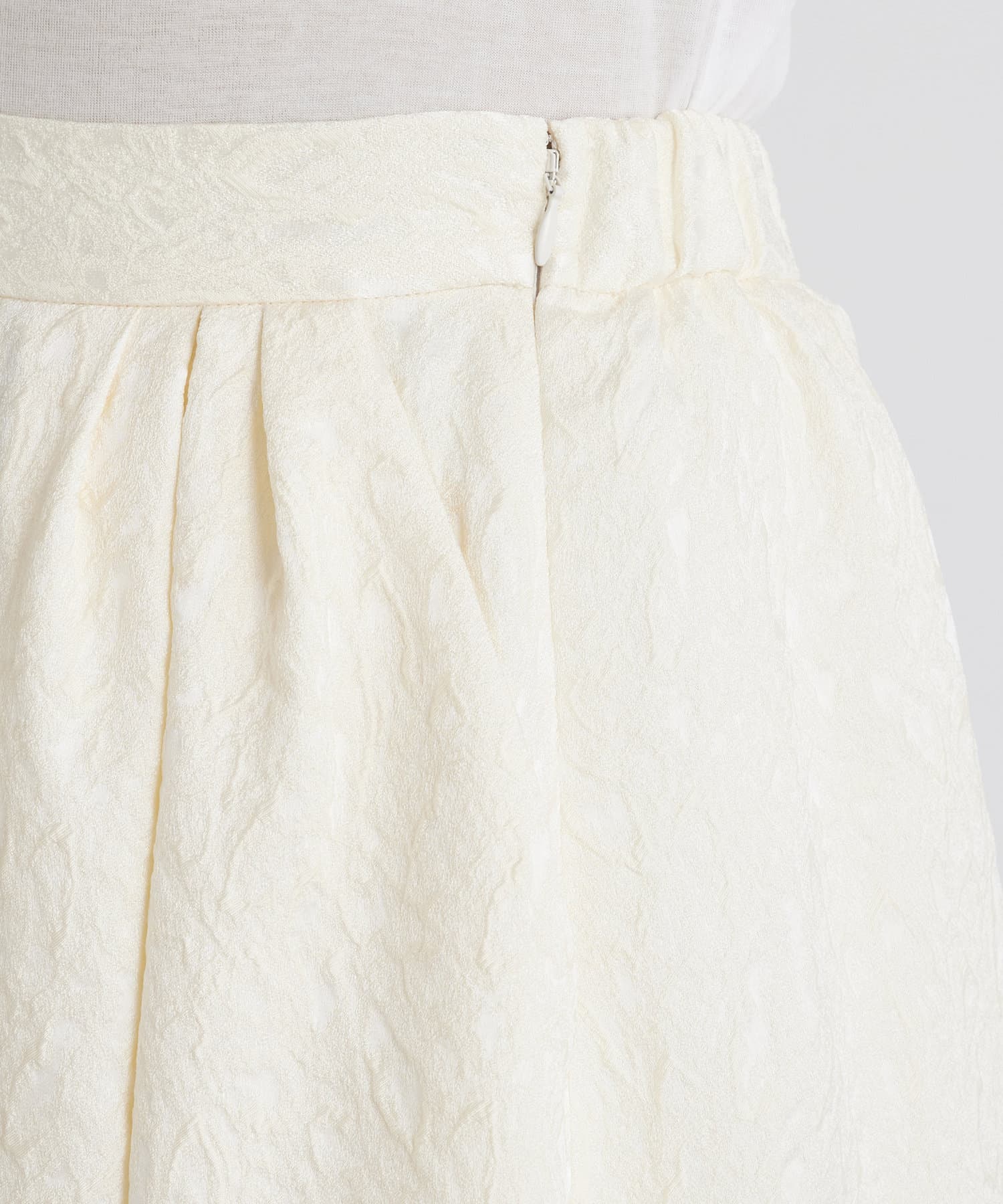 ハリのあるジャガード素材がポイントのボリュームスカート。私の身長で足首が見えるくらいの丈感でした。合わせるだけでぐっと華やかに見える主役級スカートです。