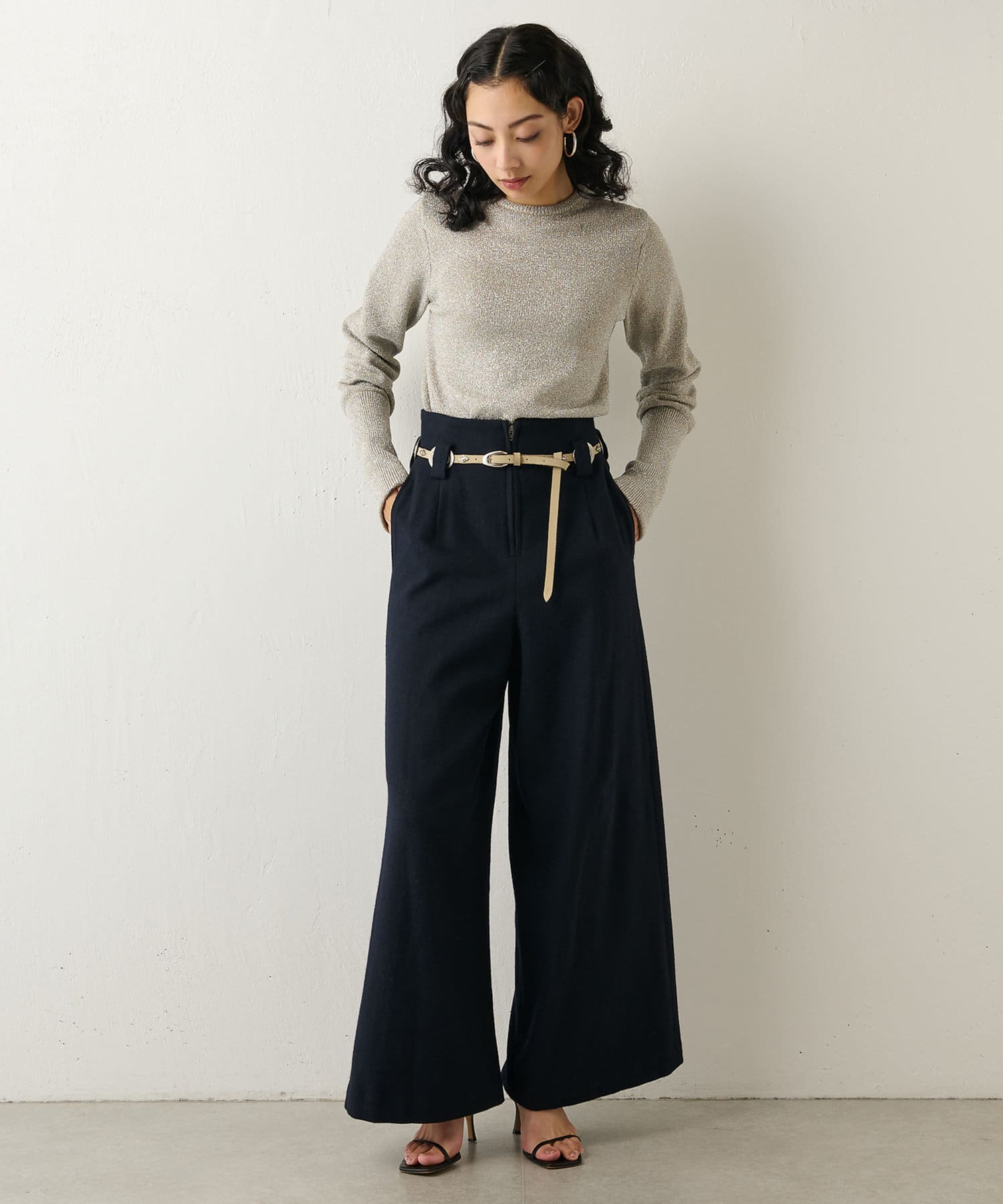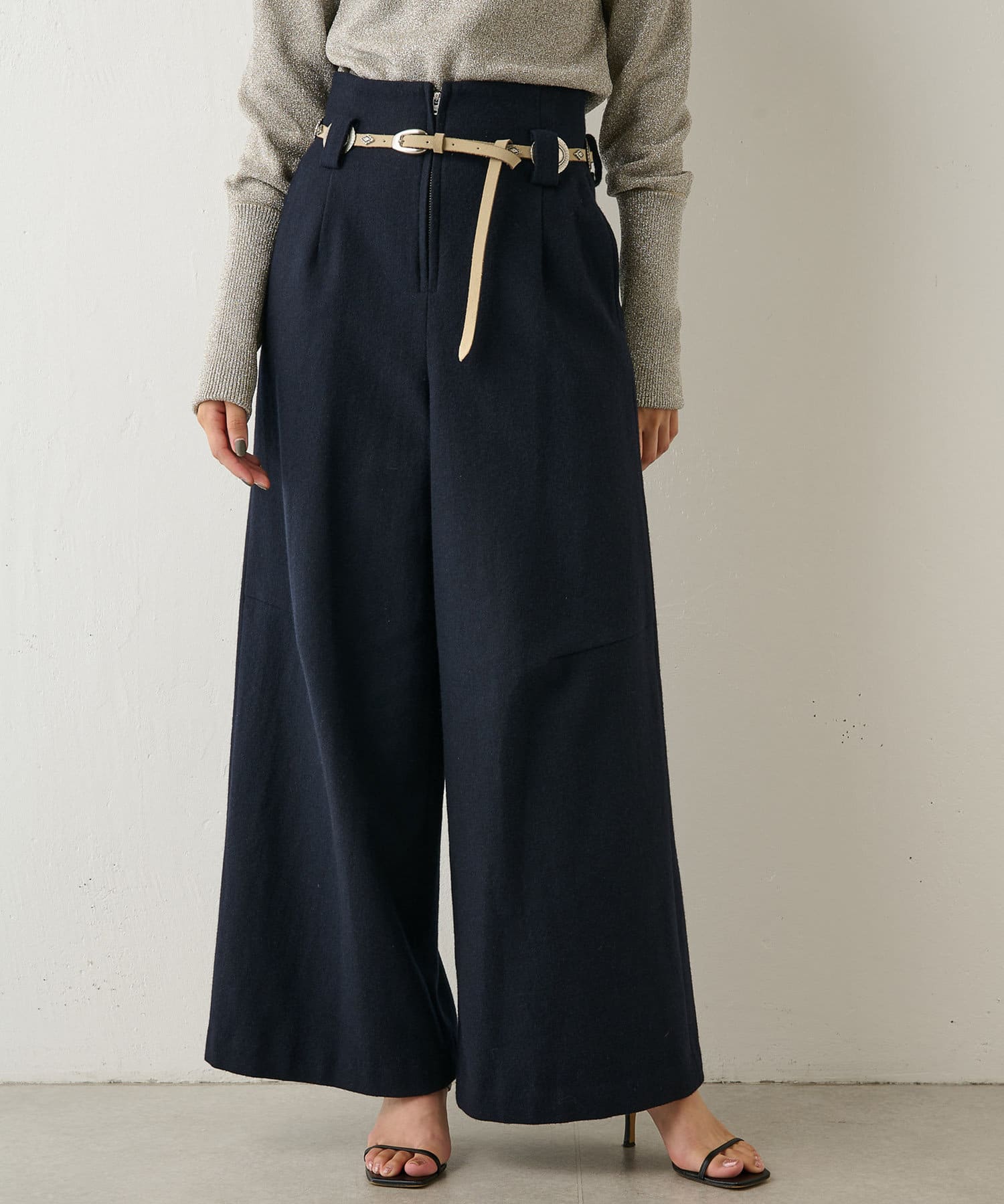 ■ゆったりとしたワイドレッグに、あえて広めのベルトループをあしらうことでカジュアルな雰囲気もプラス。