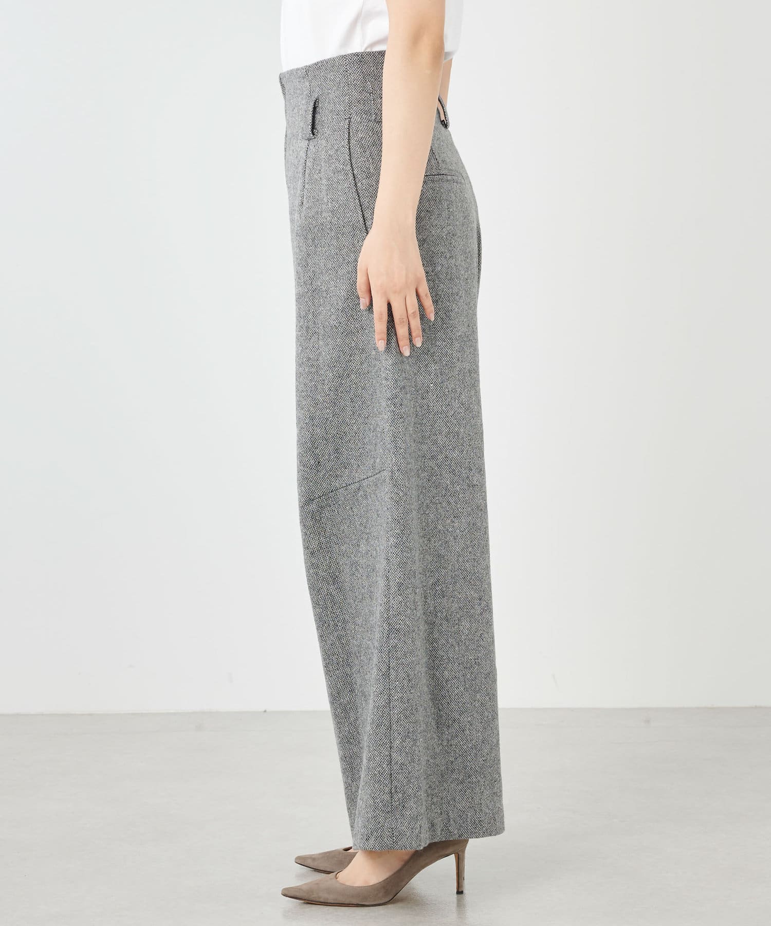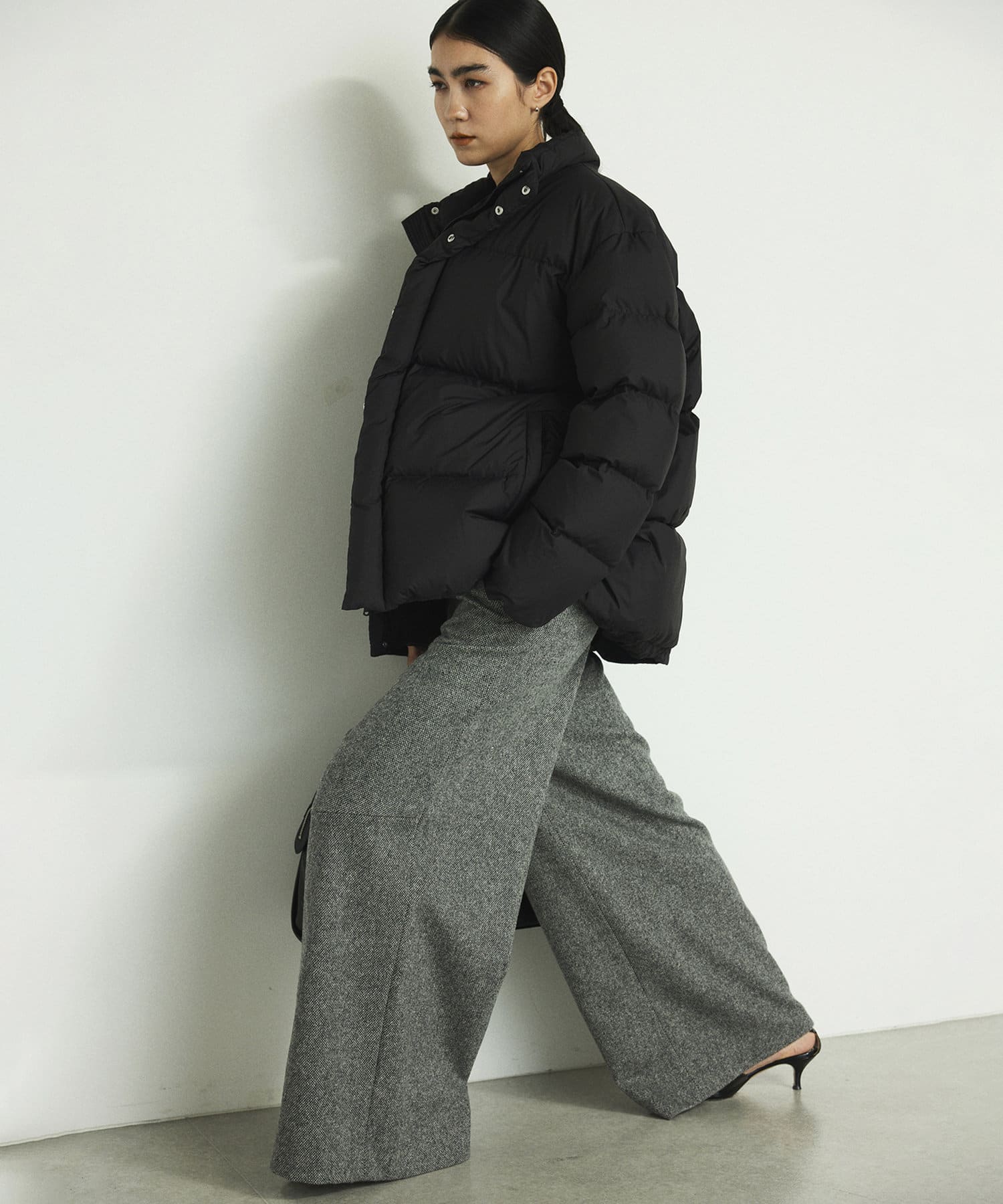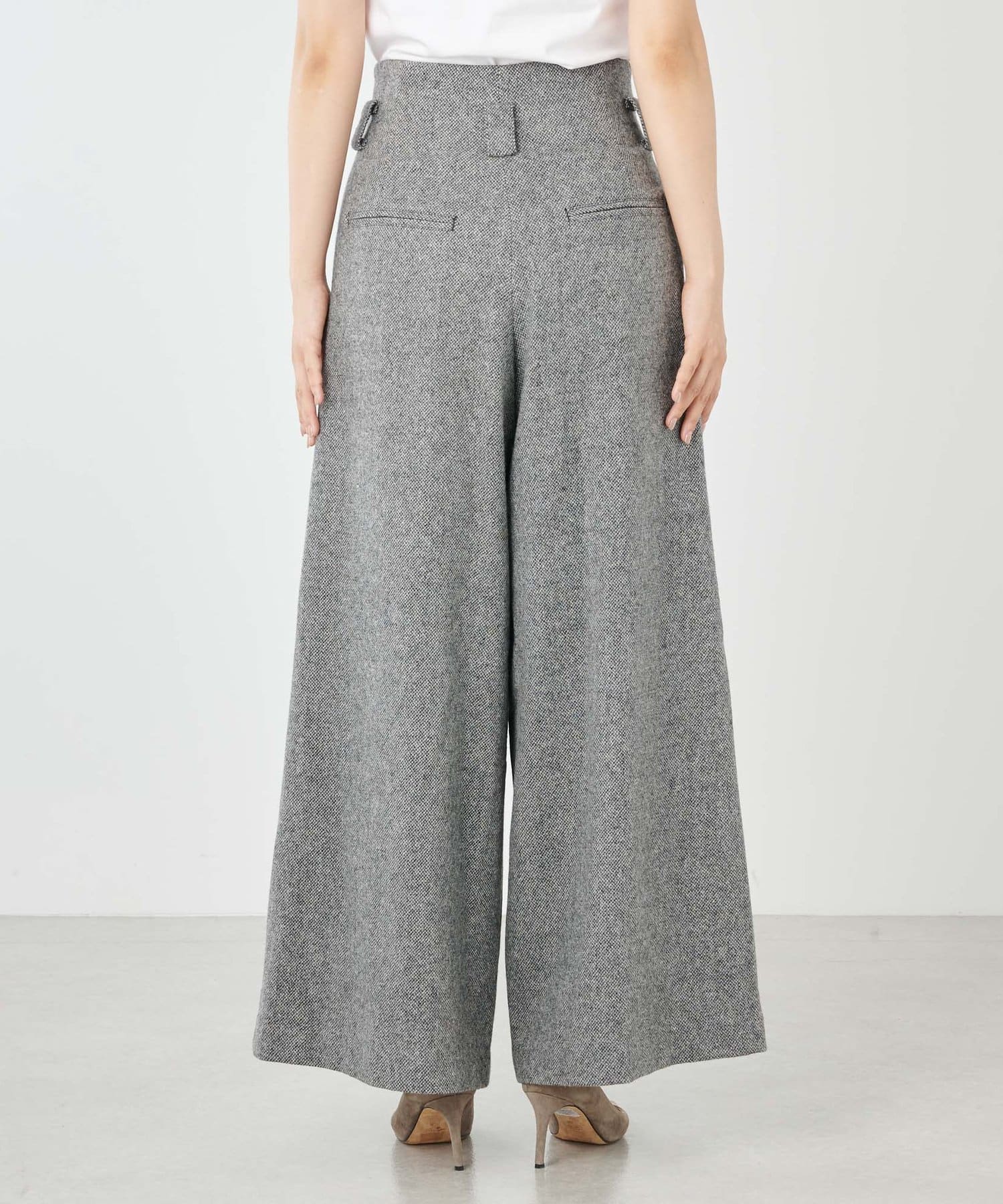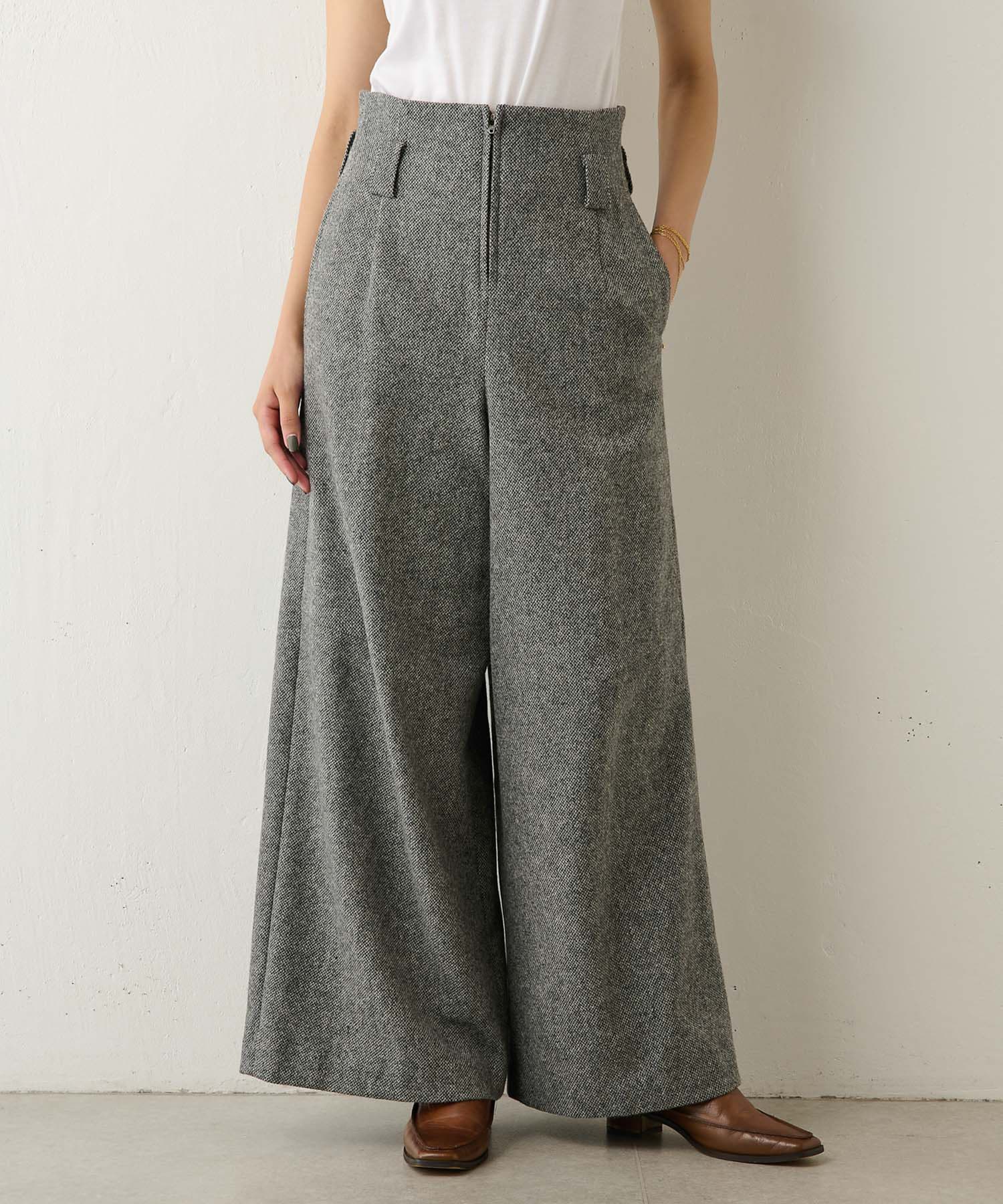 ■中厚手のウール生地をたっぷりと使用したワイドパンツ。
