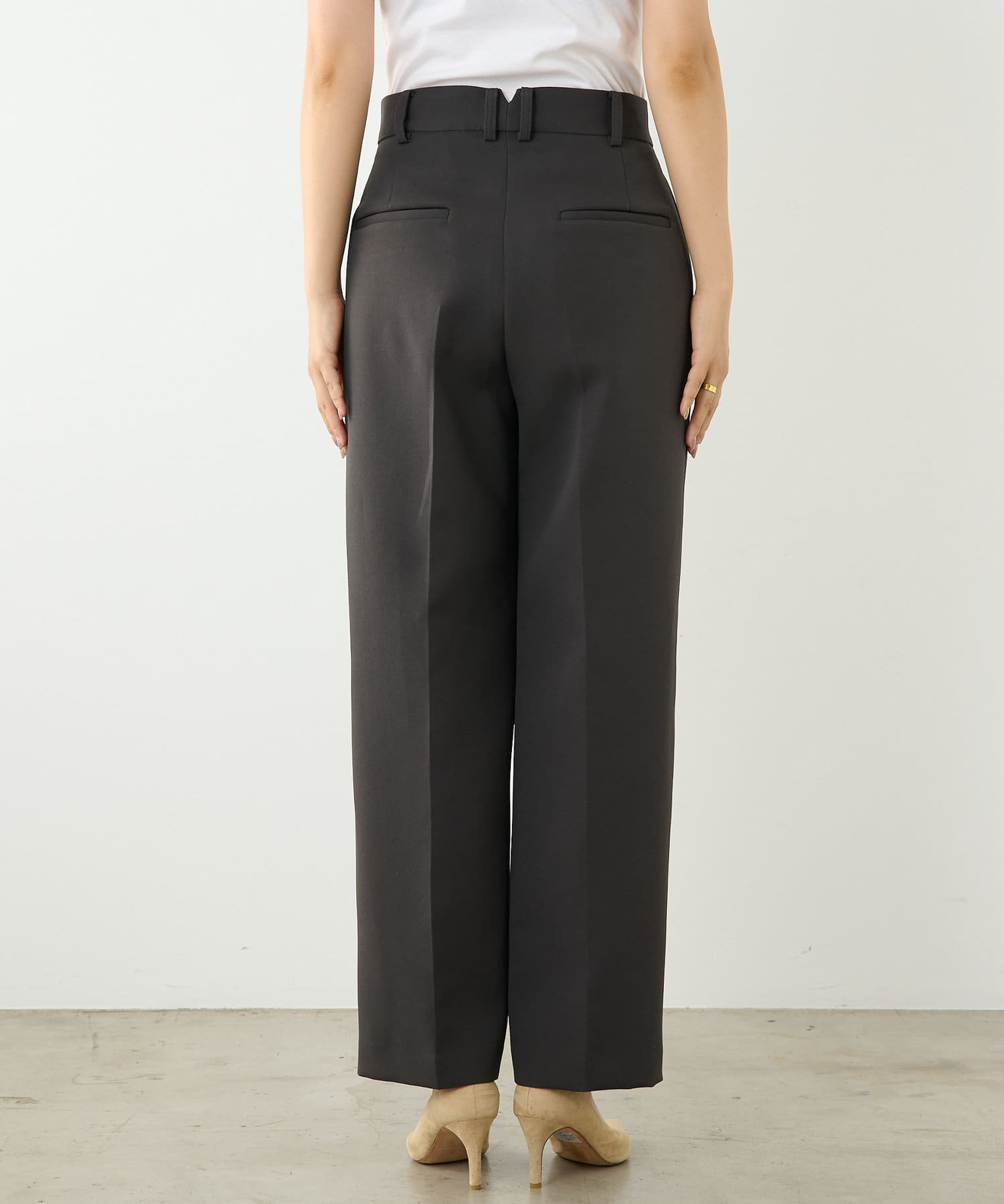 ハリがあるのでシルエットがきれいに出て、コンパクトなトップスですっきりと合わせてもサマになります。ゆとりのあるサイズ感でヒップや太もものハリはしっかりとカバー出来ました。オンオフ問わずに使えるデザインと、シーズンレスに使える素材感で着回し力も抜群です!