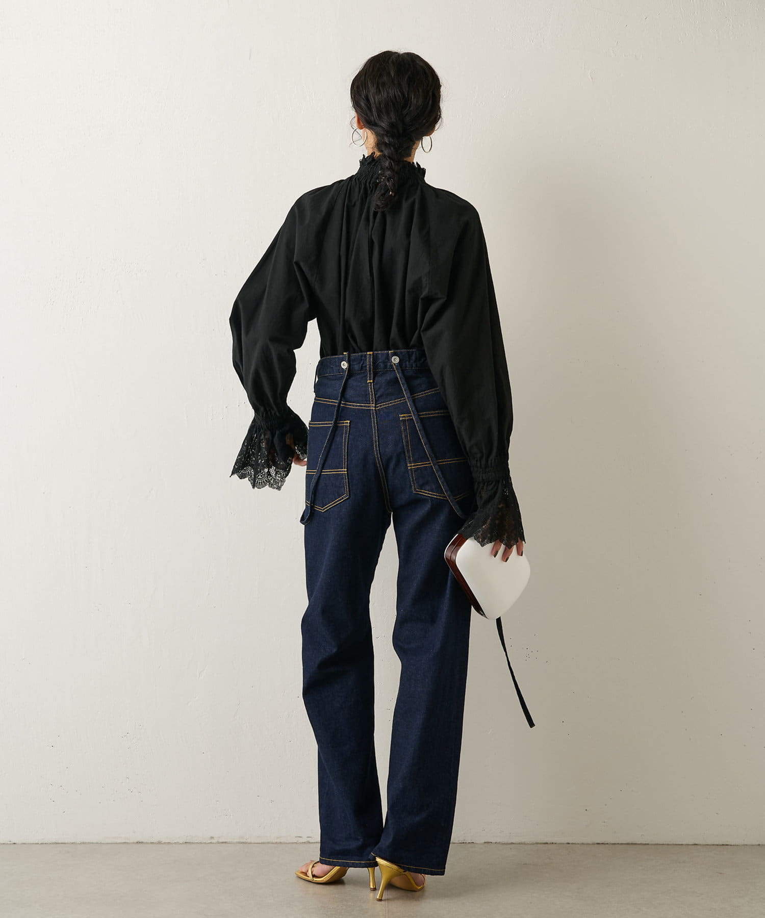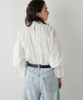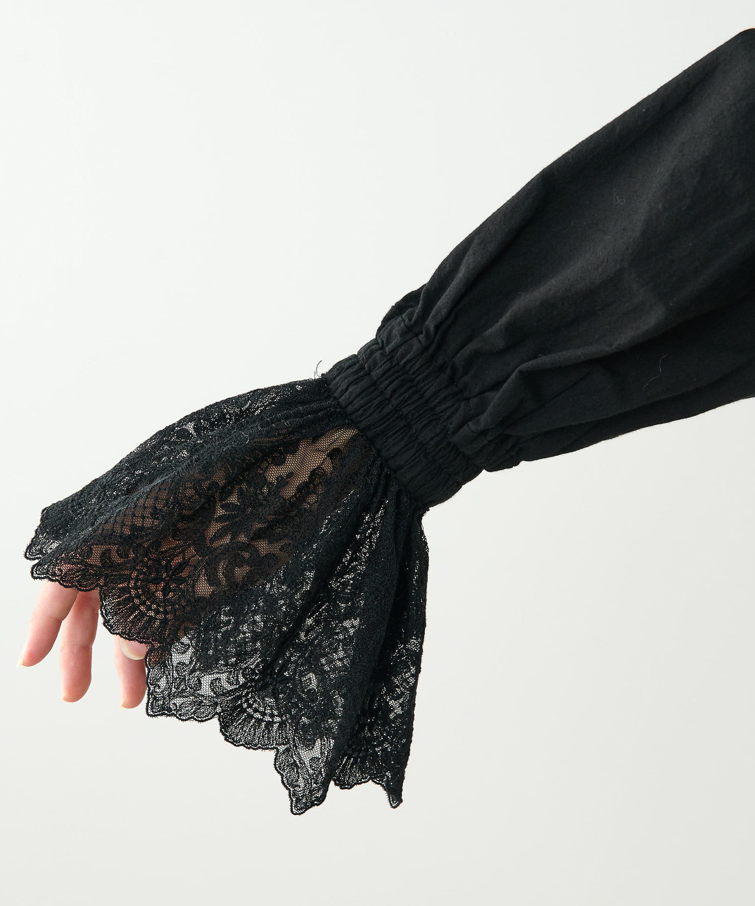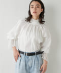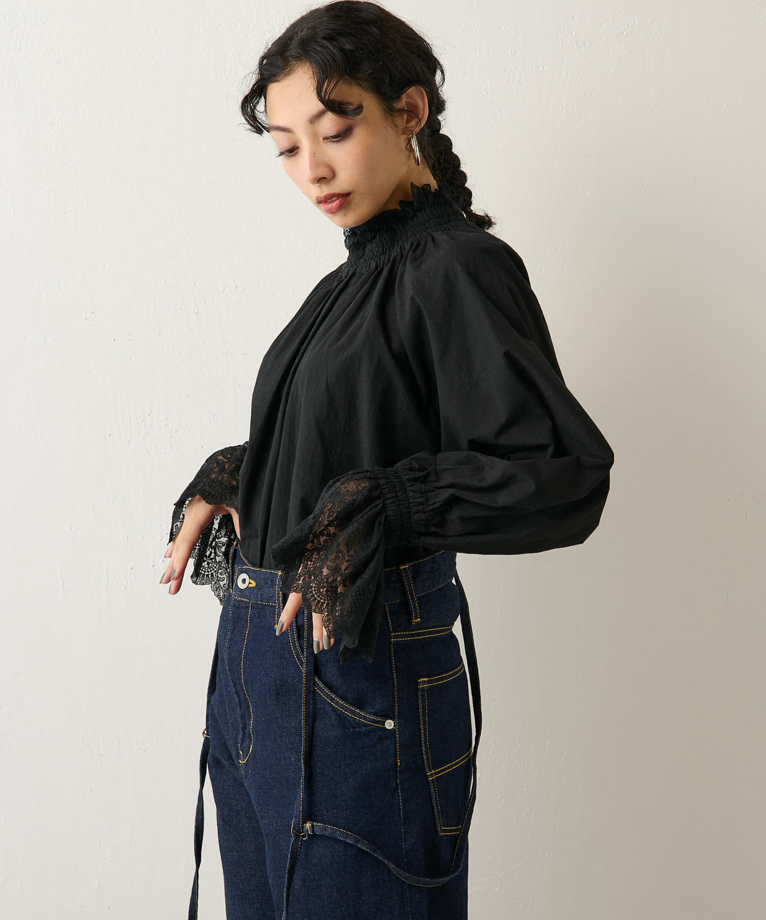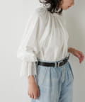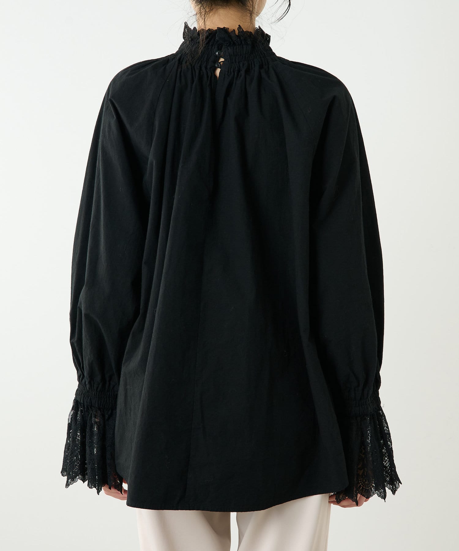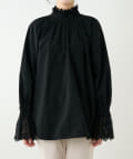 ■襟元と袖口にレースをドッキングしたオーバーブラウス。