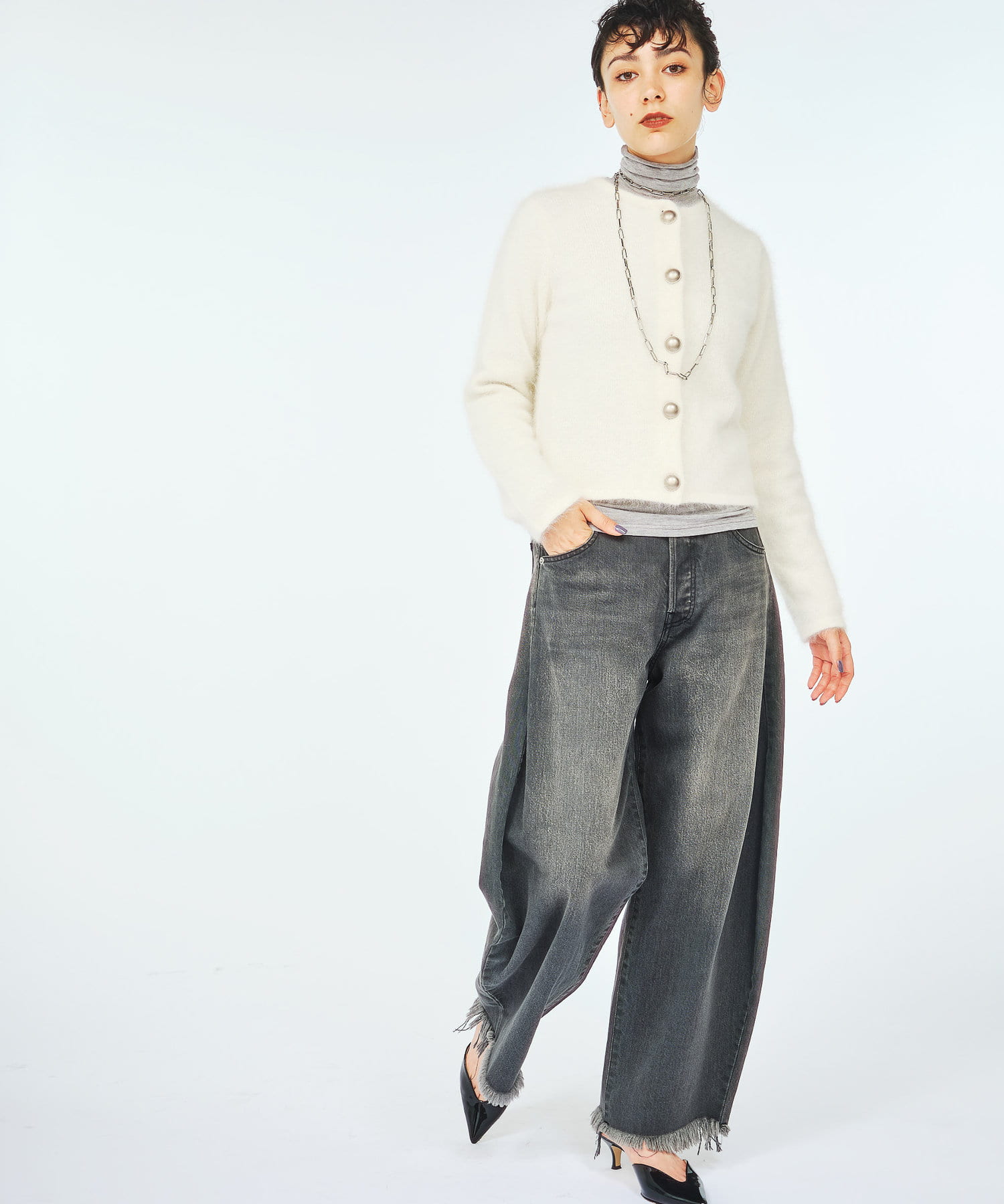 【THE PAUSE】ファーニットクロップドカーディガン