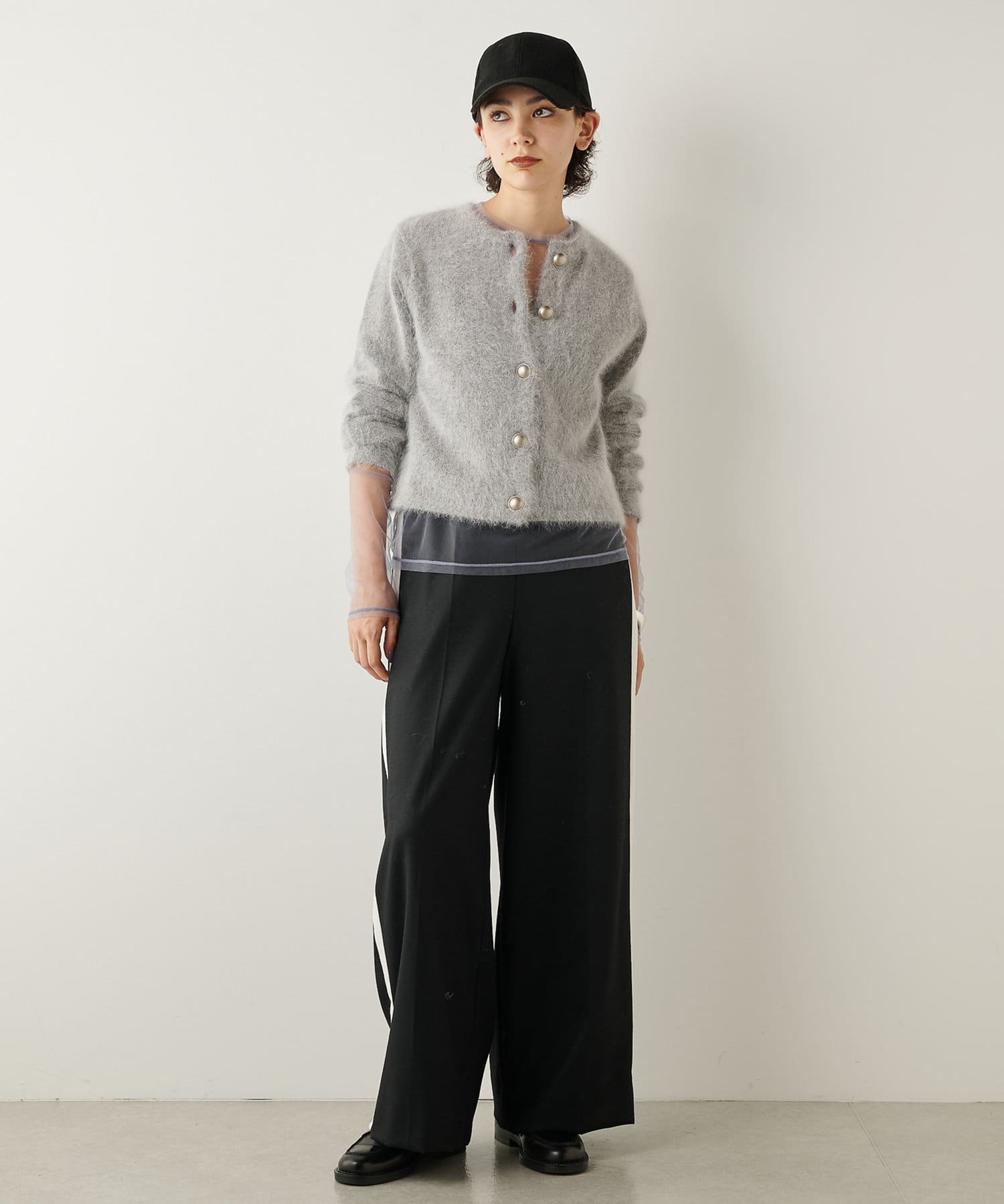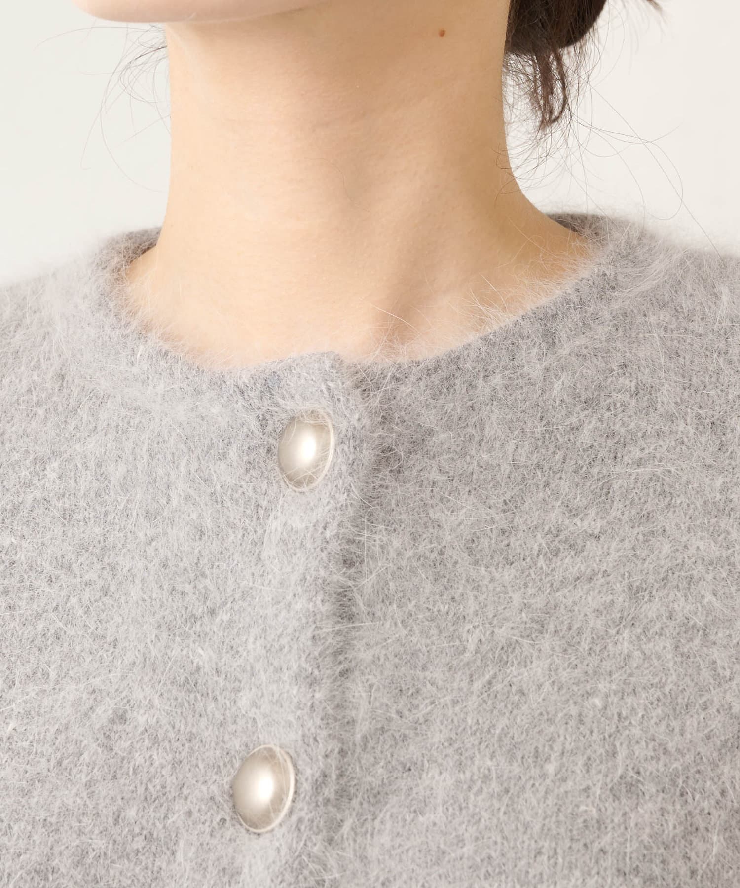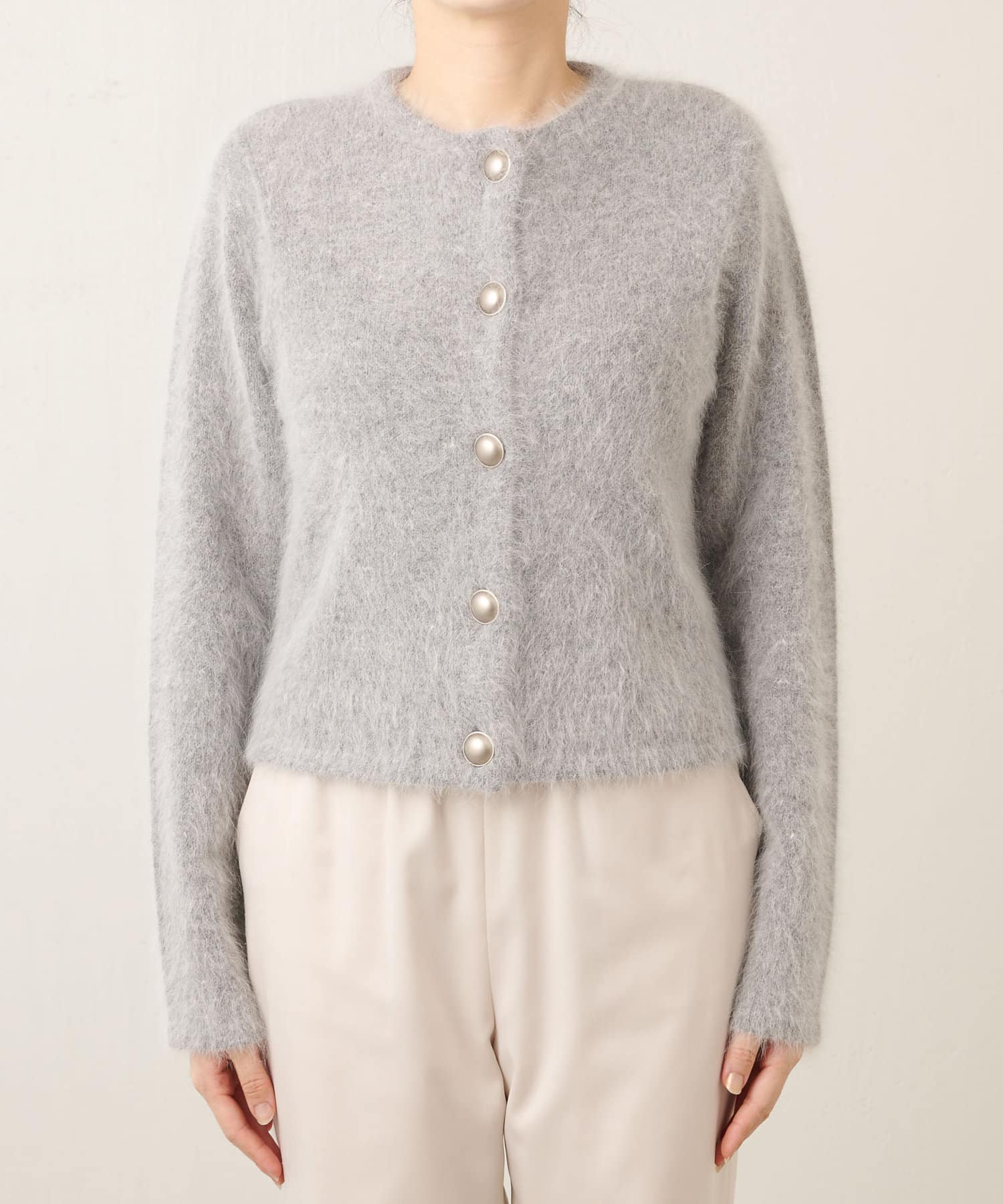 ■ファーニット素材のふんわりとした表情が魅力のカーディガン。