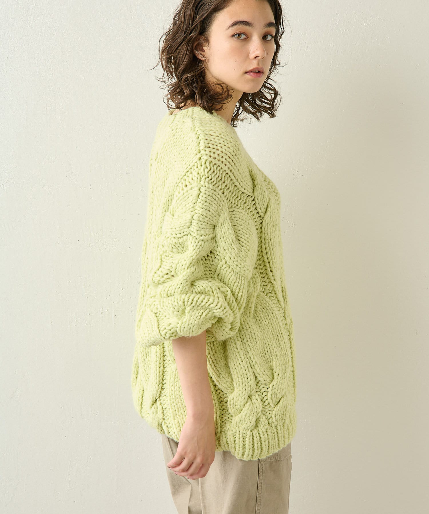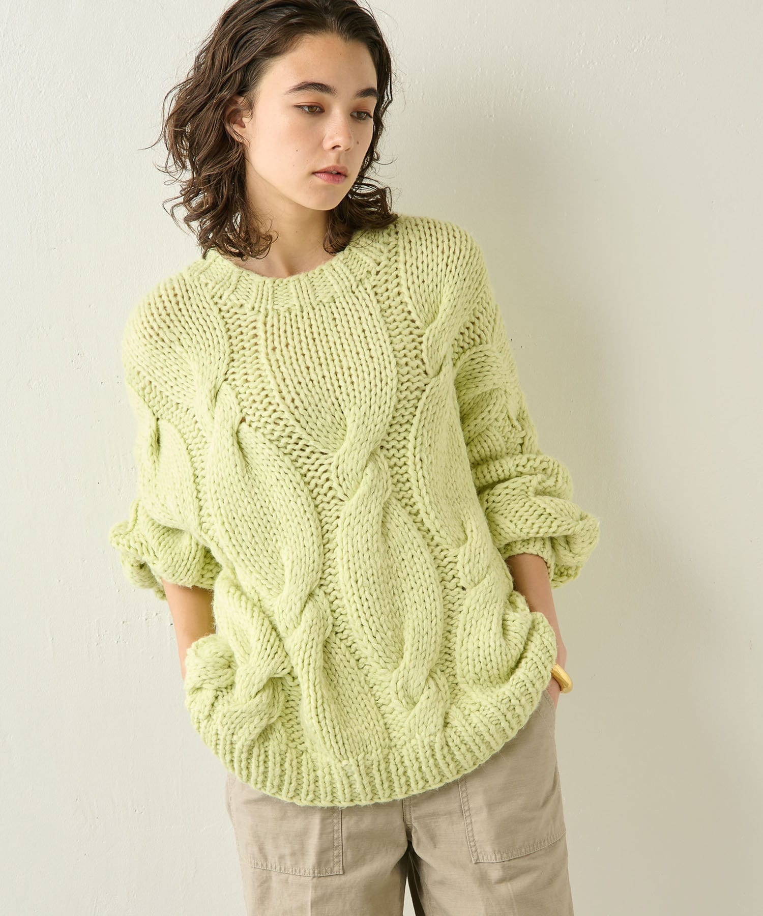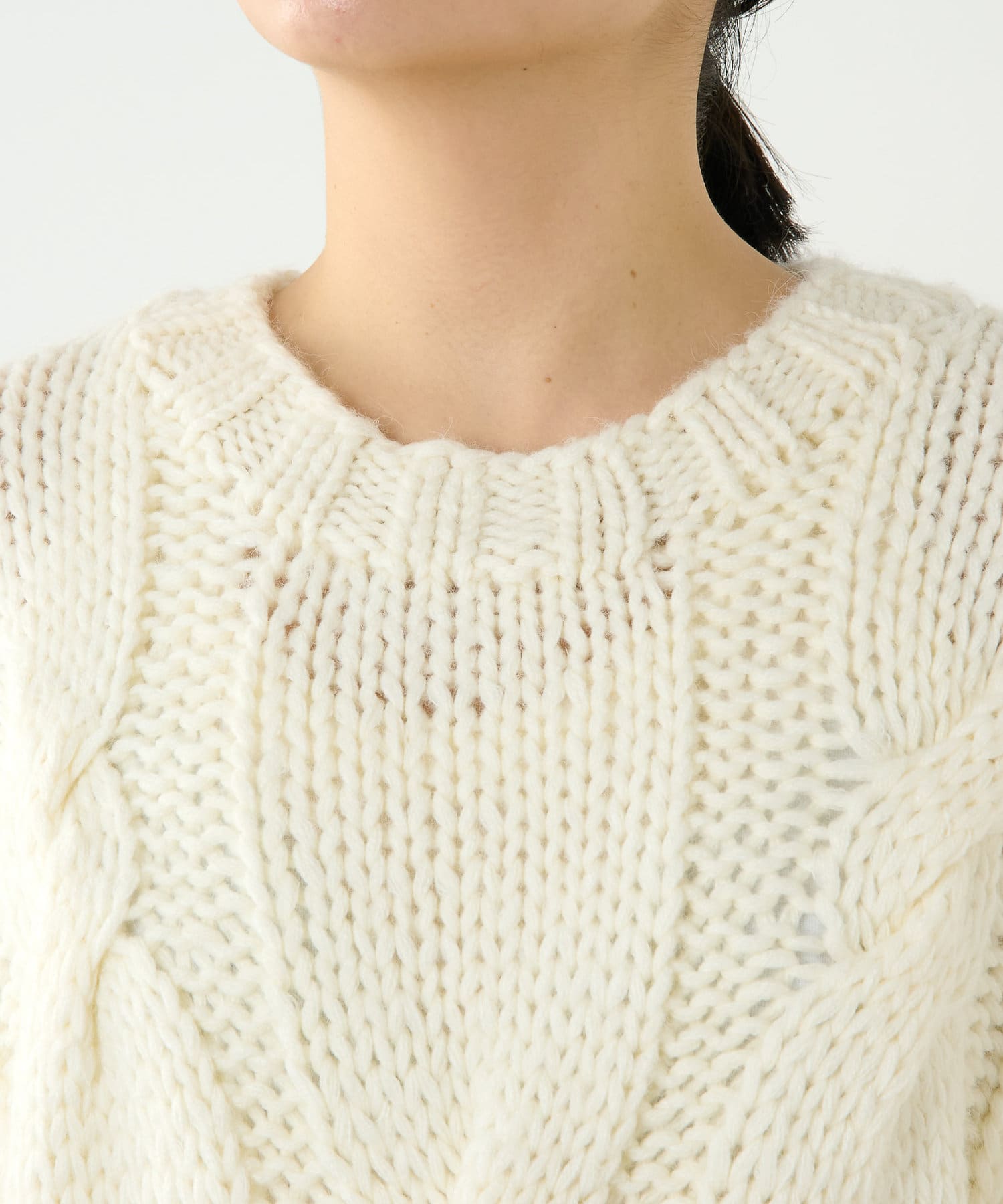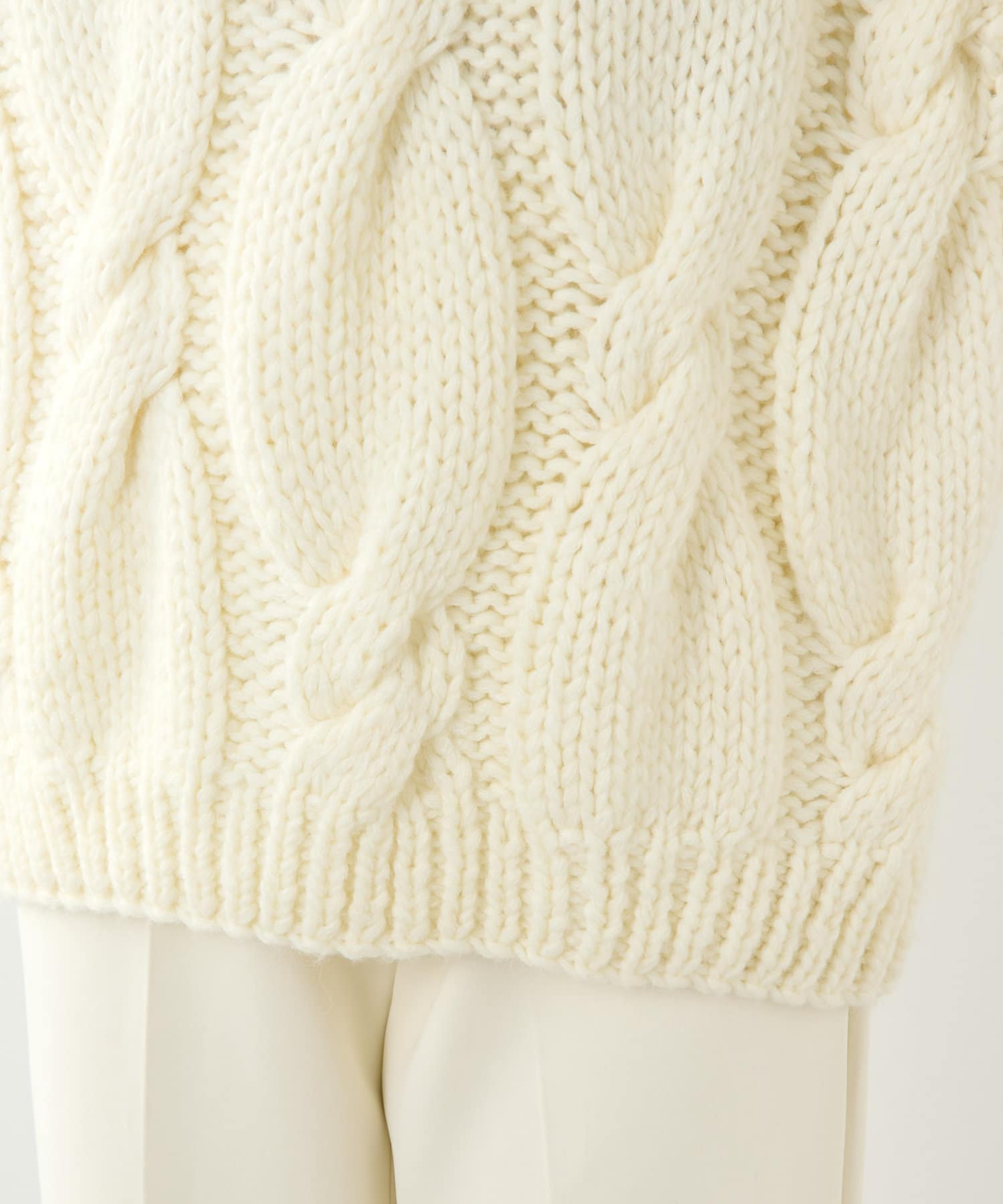 大きめのケーブルが存在感をプラスする、ハンドニットプルオーバー