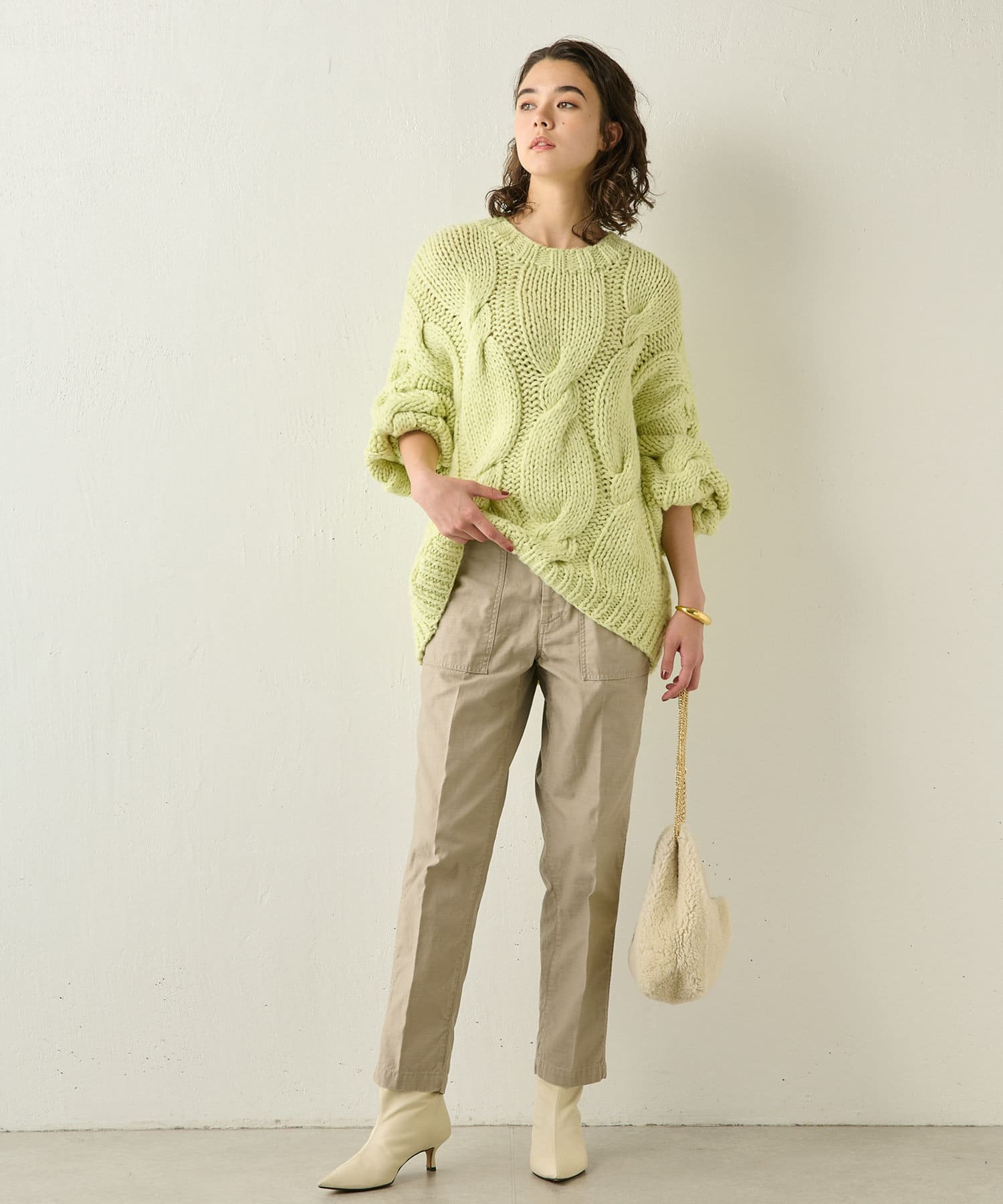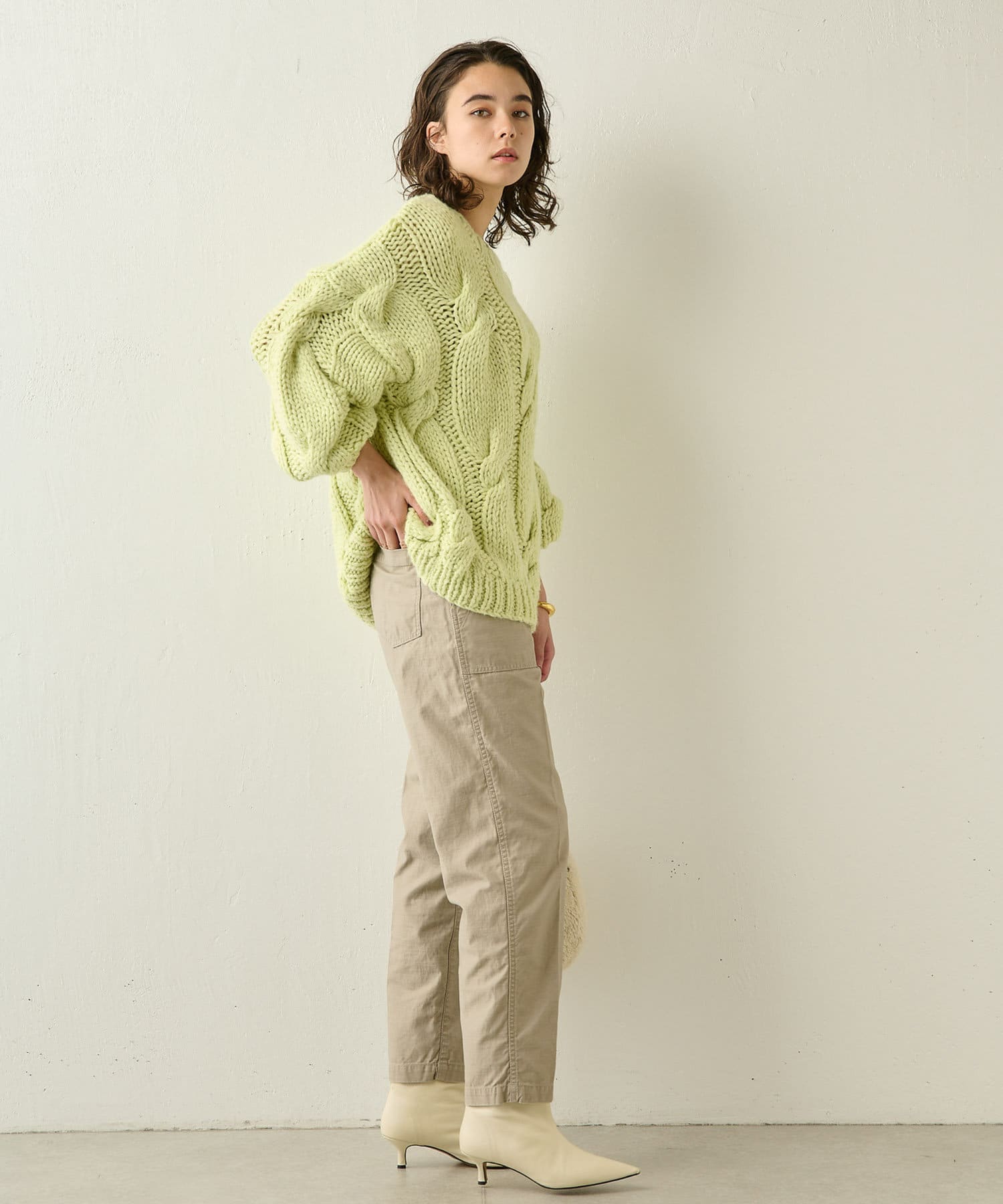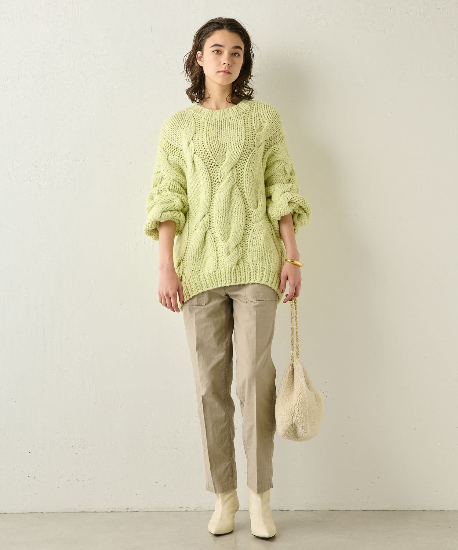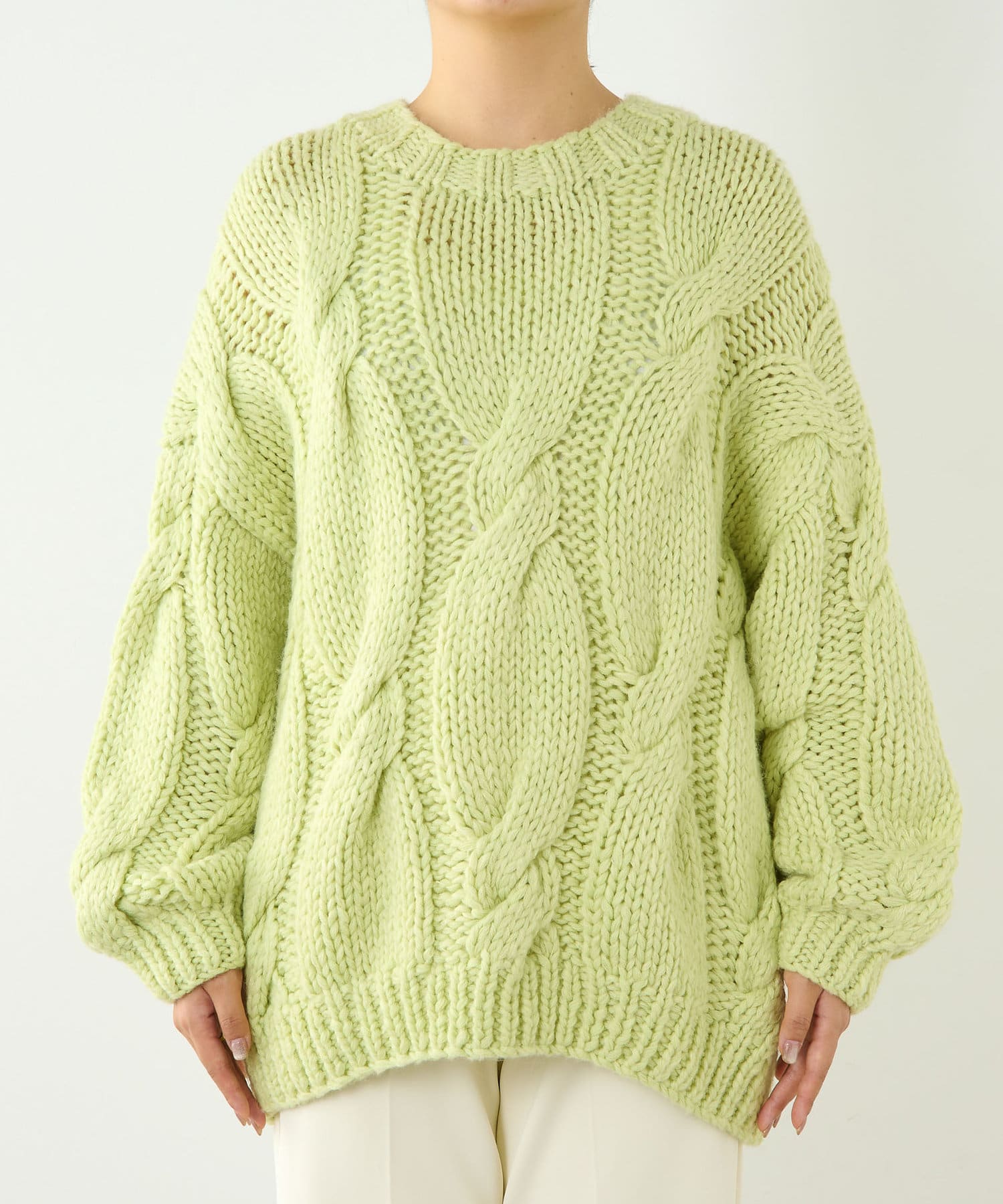 大きめのケーブルが存在感をプラスする、ハンドニットプルオーバー