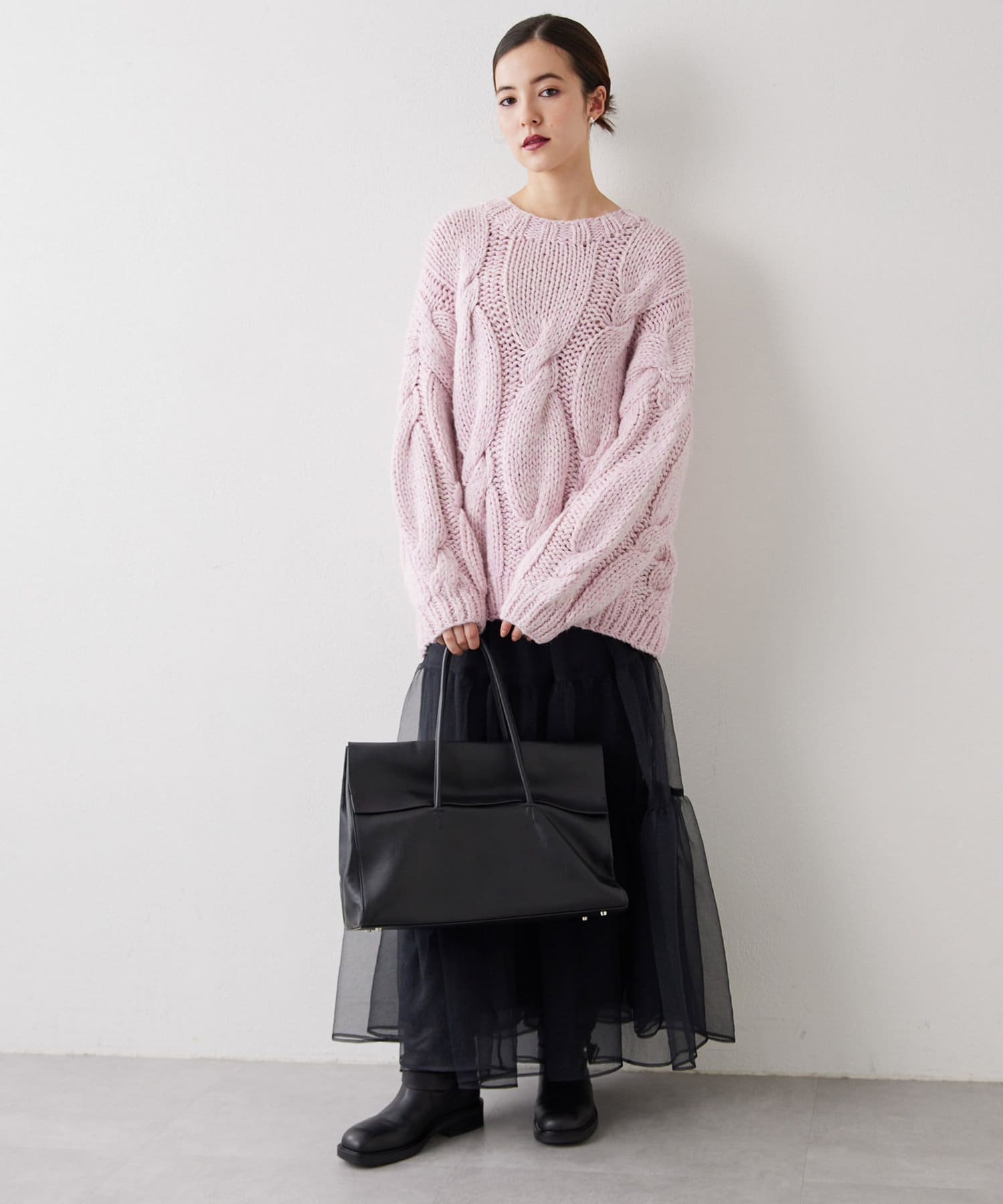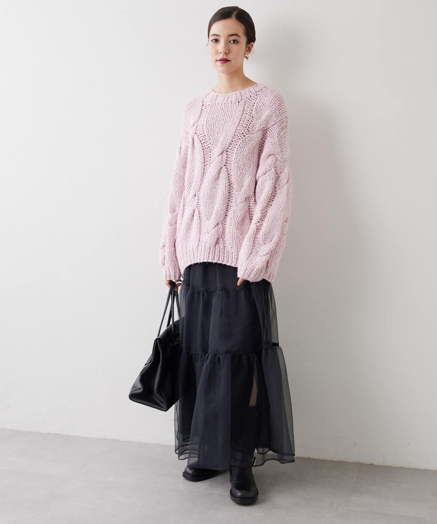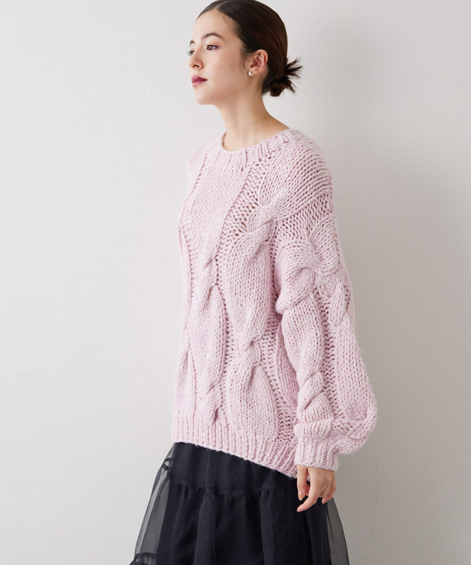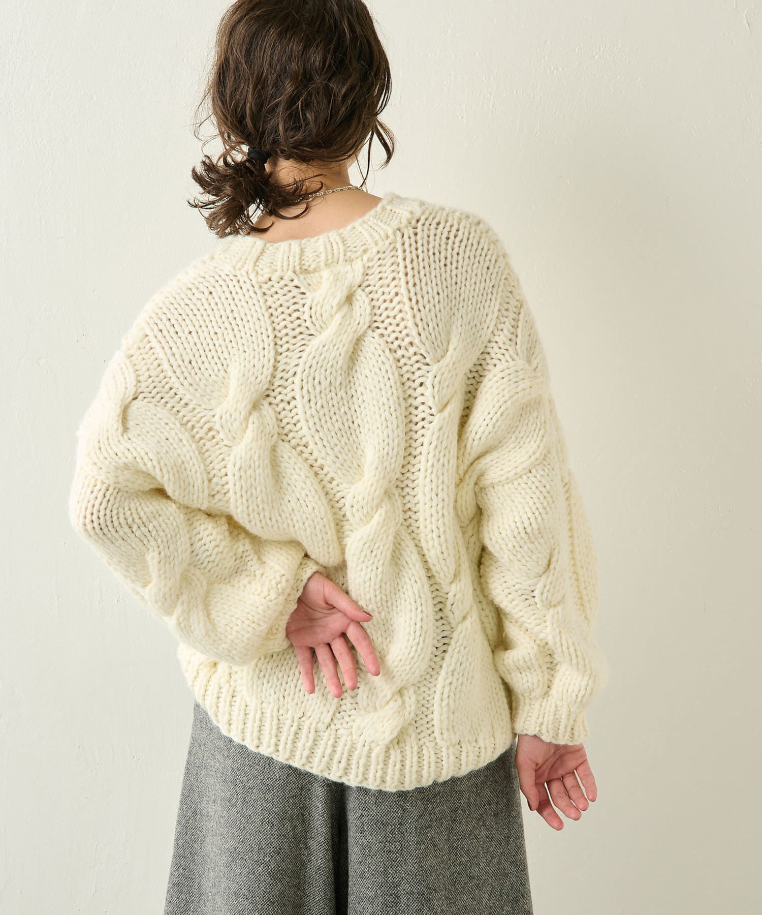 ■手編みだからこそ表現できる大きなケーブルが特徴のニットプルオーバー。