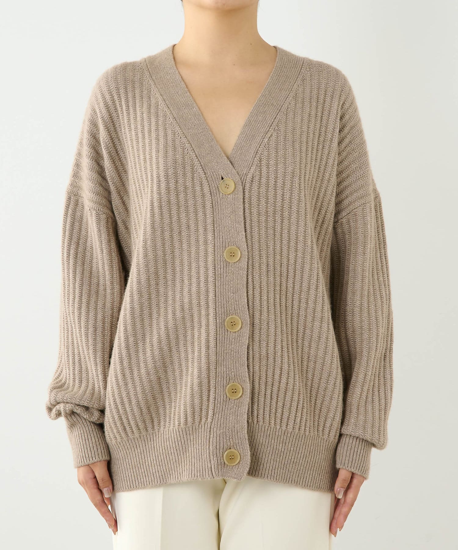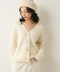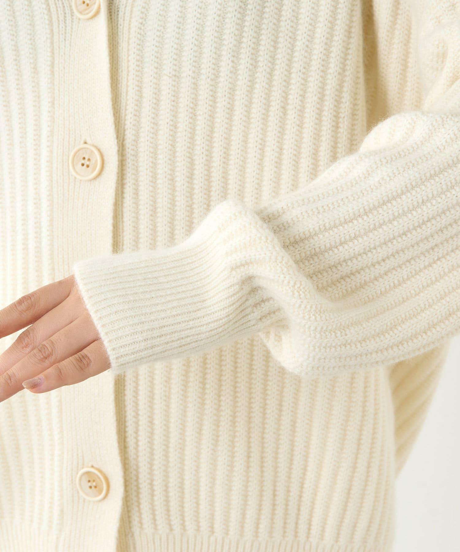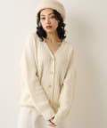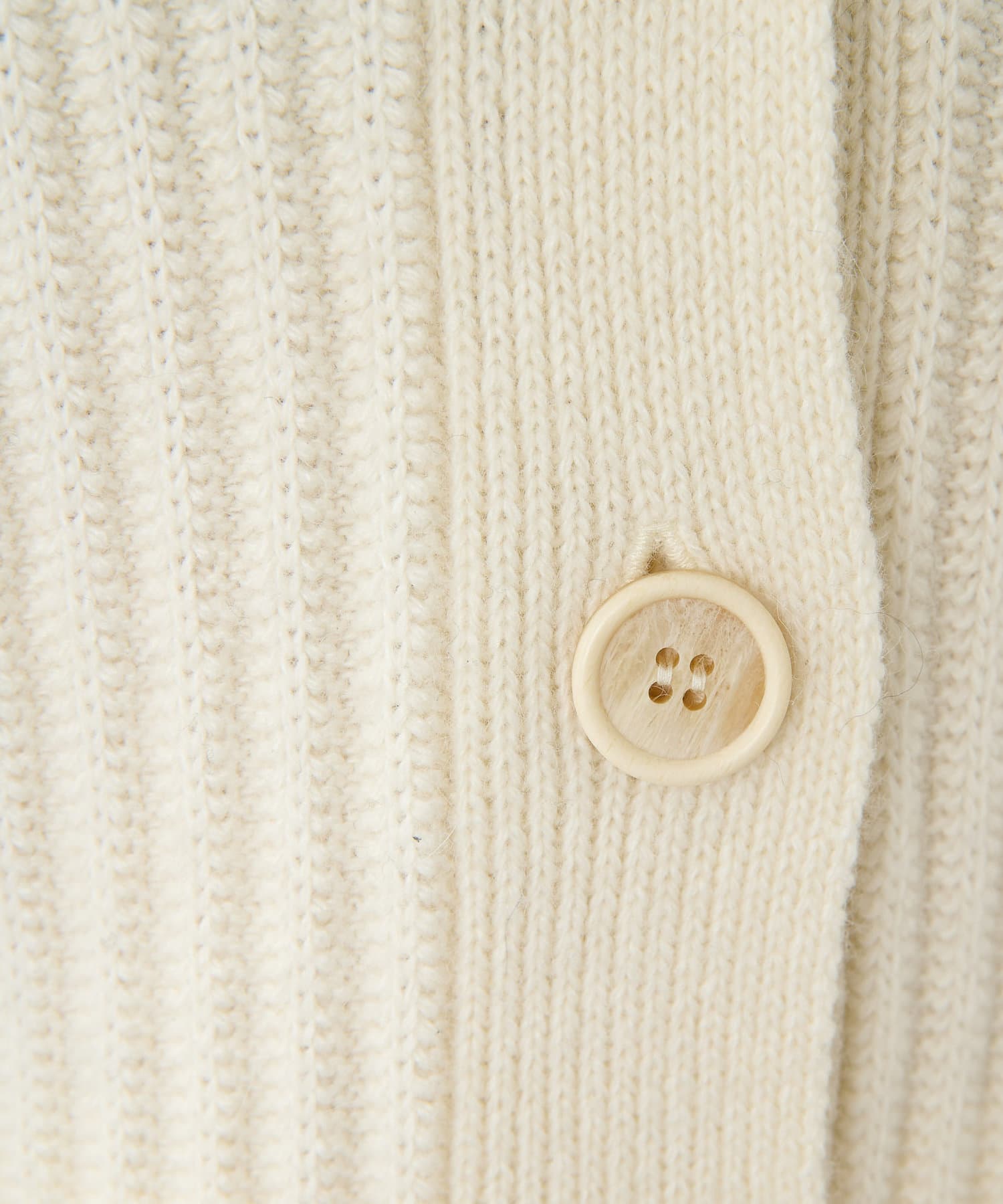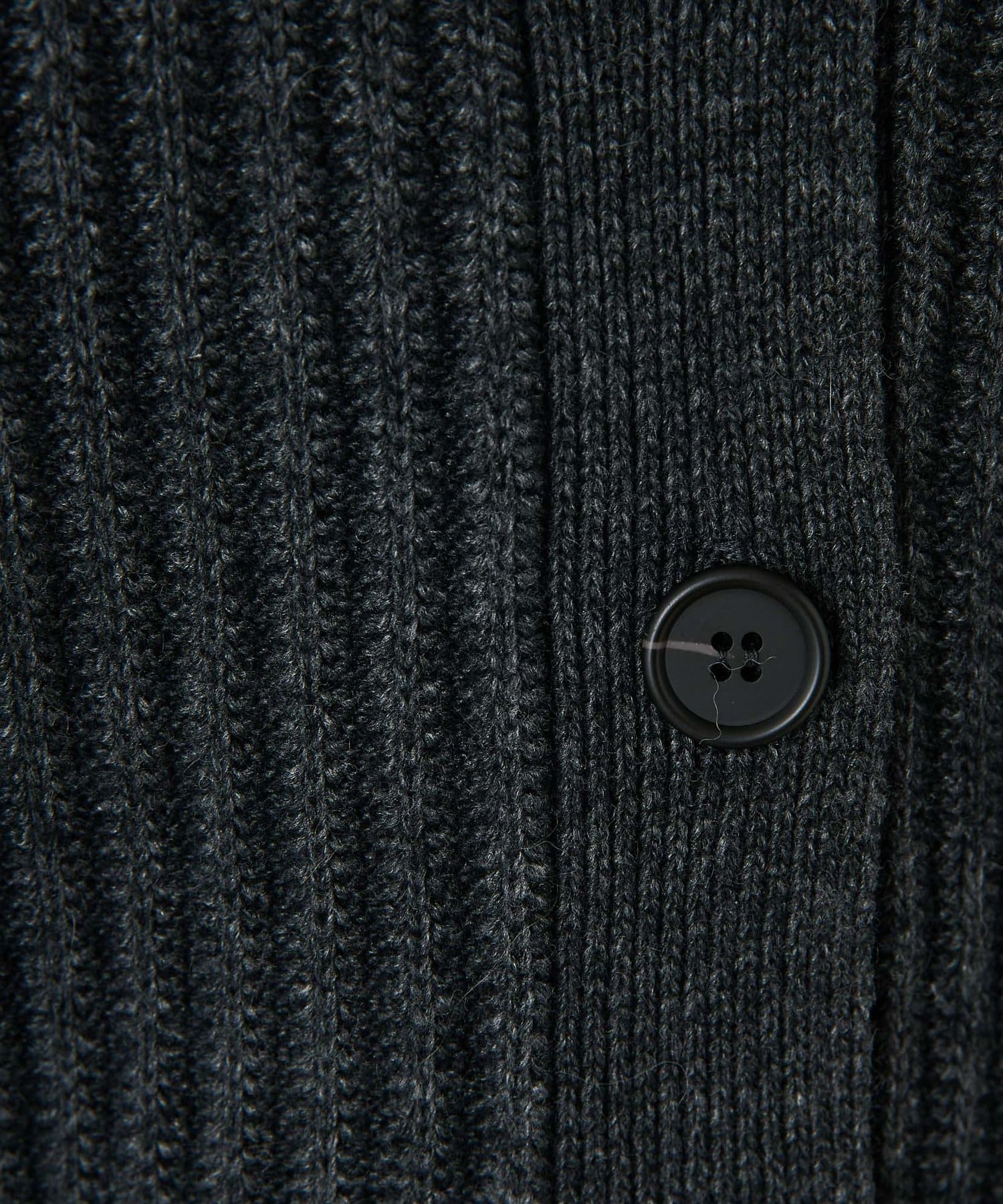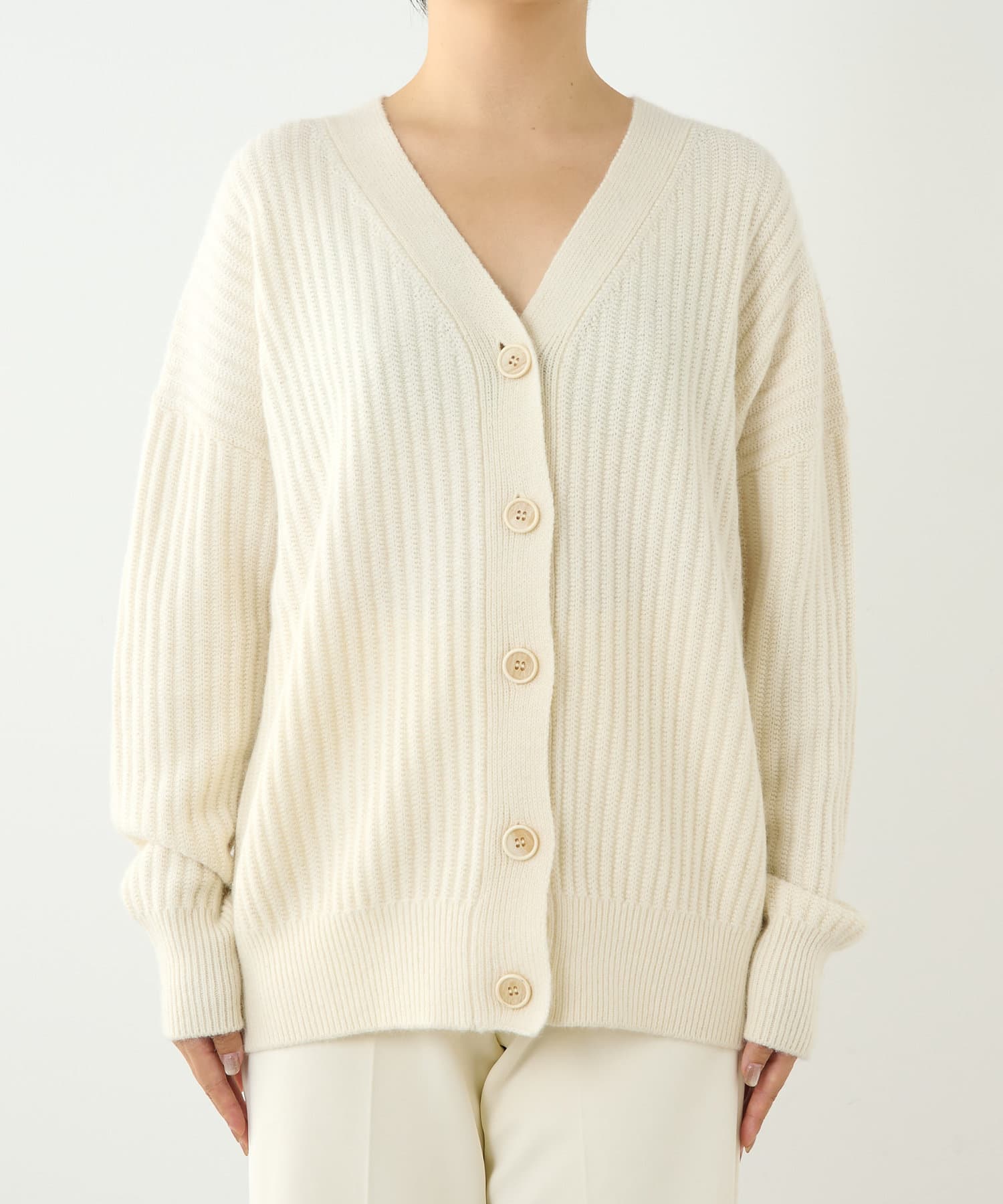 ■表情のある編地がポイントのVネック変形畦編カーディガン。