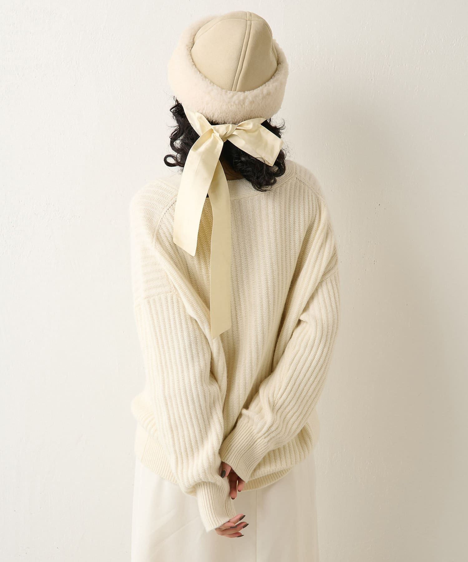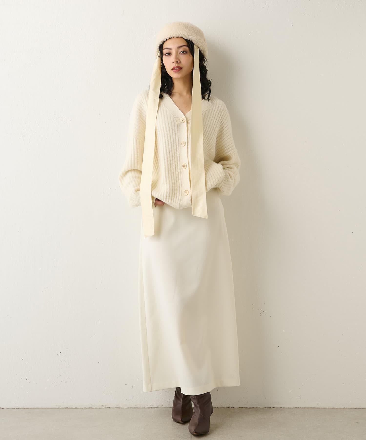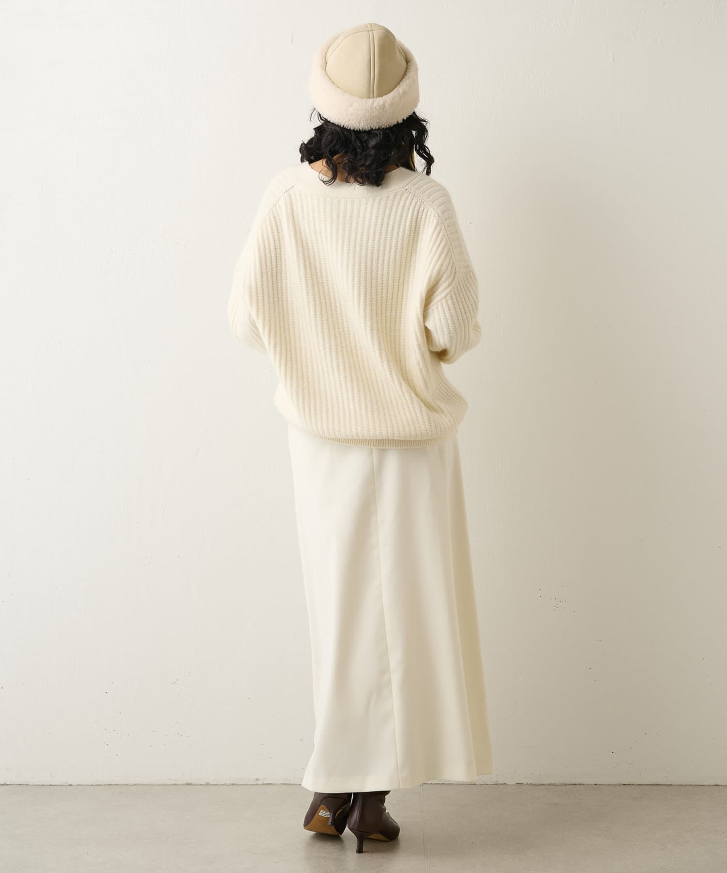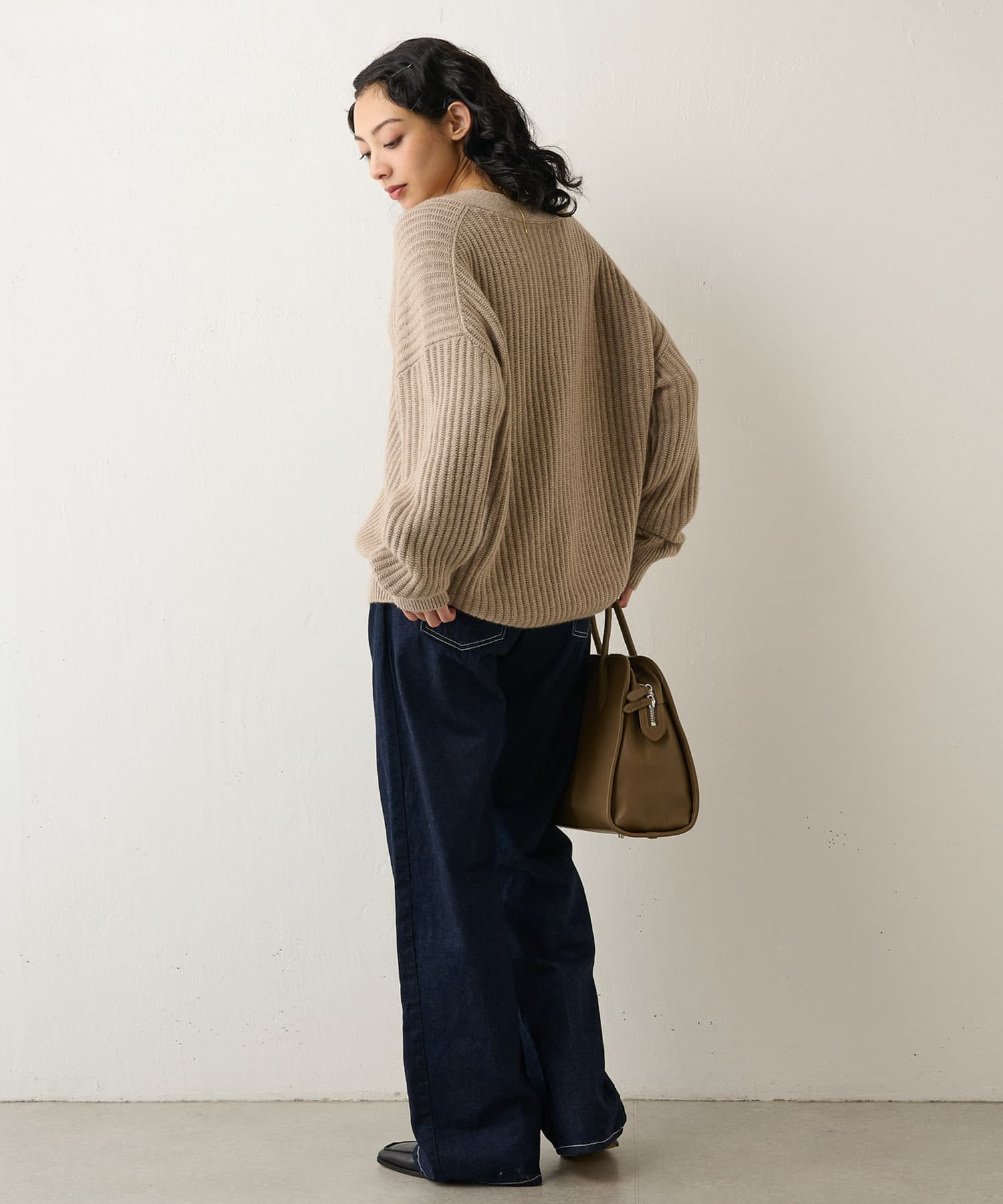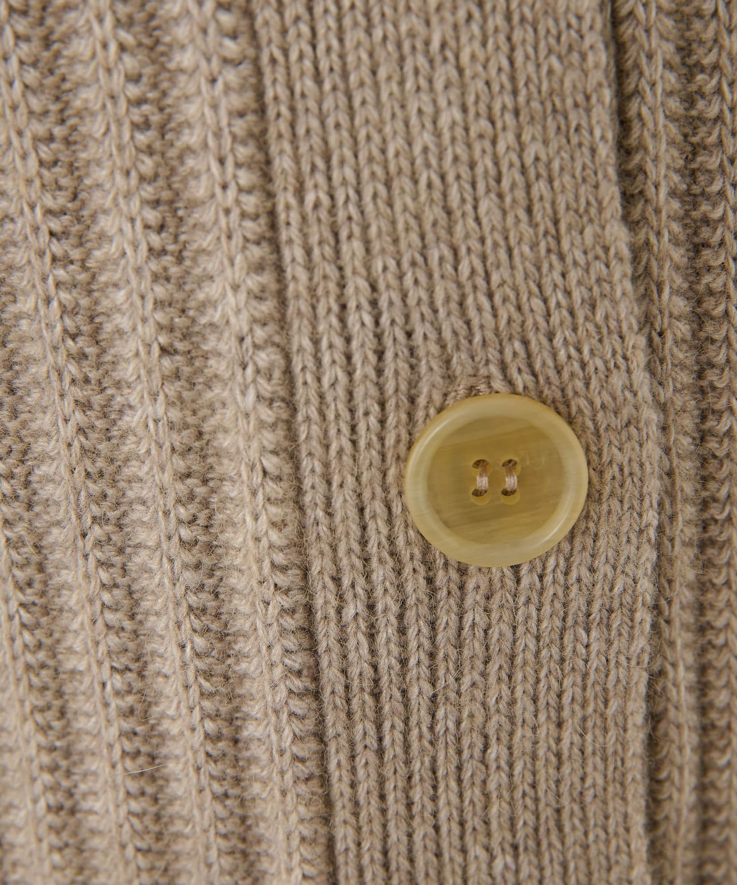 ■表情のある編地がポイントのVネック変形畦編カーディガン。