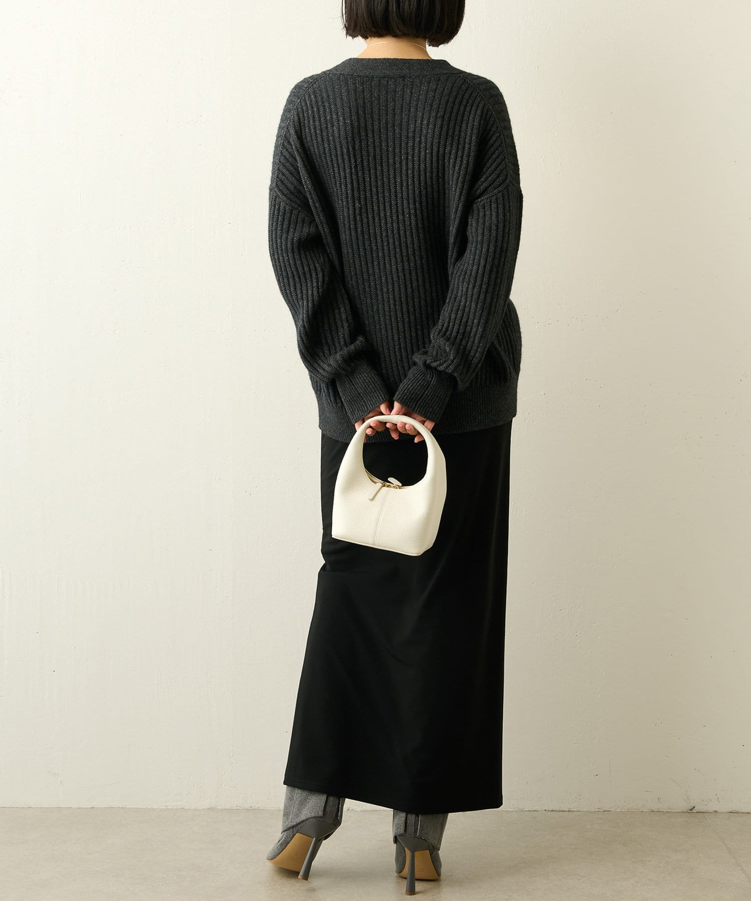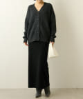 着心地の良いVネックカーディガン。表情がありますので、奥行きを感じられる上品なニット。程よいボリューム感の中に縦のラインがあり、こなれ感があるアイテムです。羽織としても使えますし、ボタンをとめてプルオーバーとしても◎です。