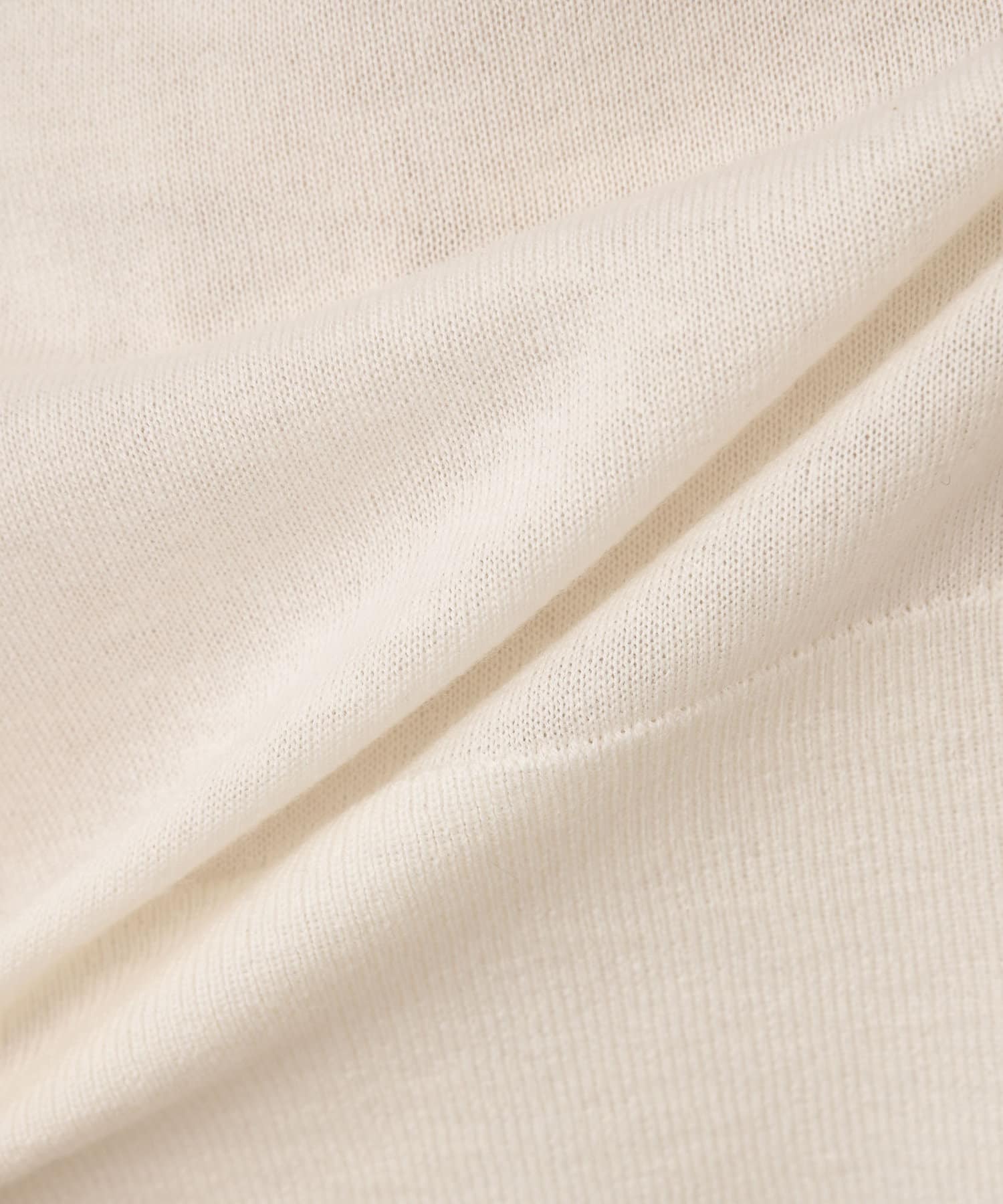 17.5MICのスーパーファイン・メリノを使用したセミ梳毛糸を使用し、マーセライズ加工を施すことで上品な光沢感・ソフトでしなやかな肌触りを持った高品質素材。