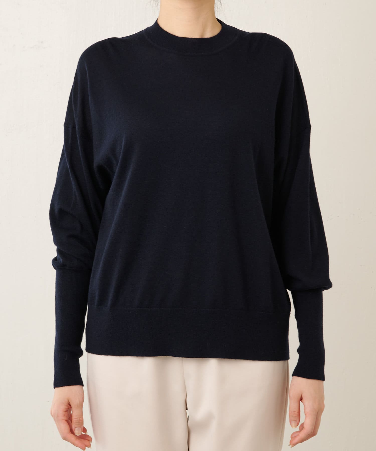 ■ハイゲージの滑らかな質感が心地よいクルーネックニットプルオーバー。