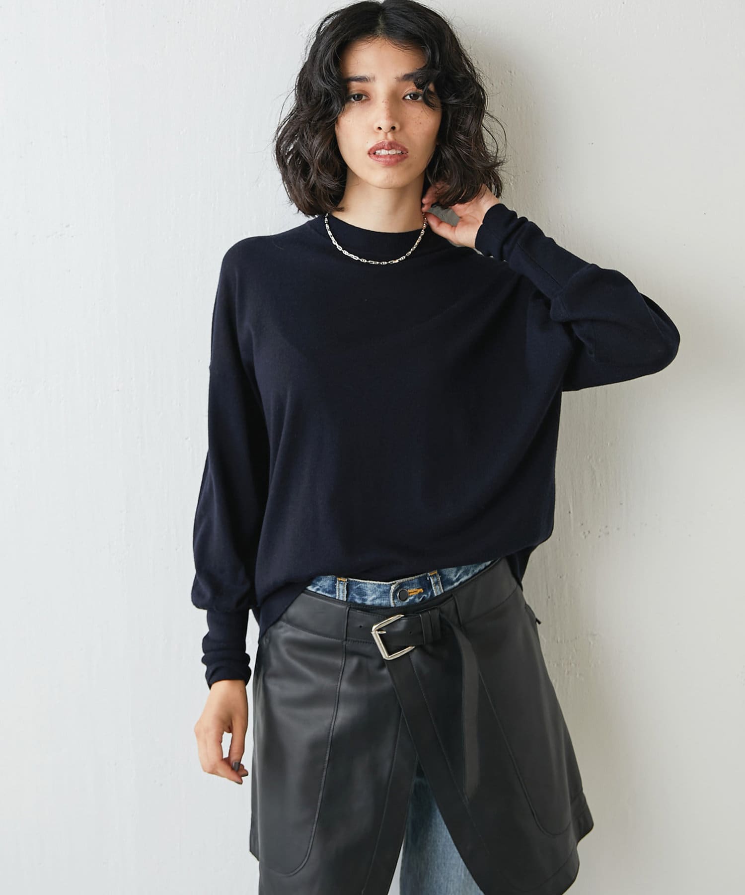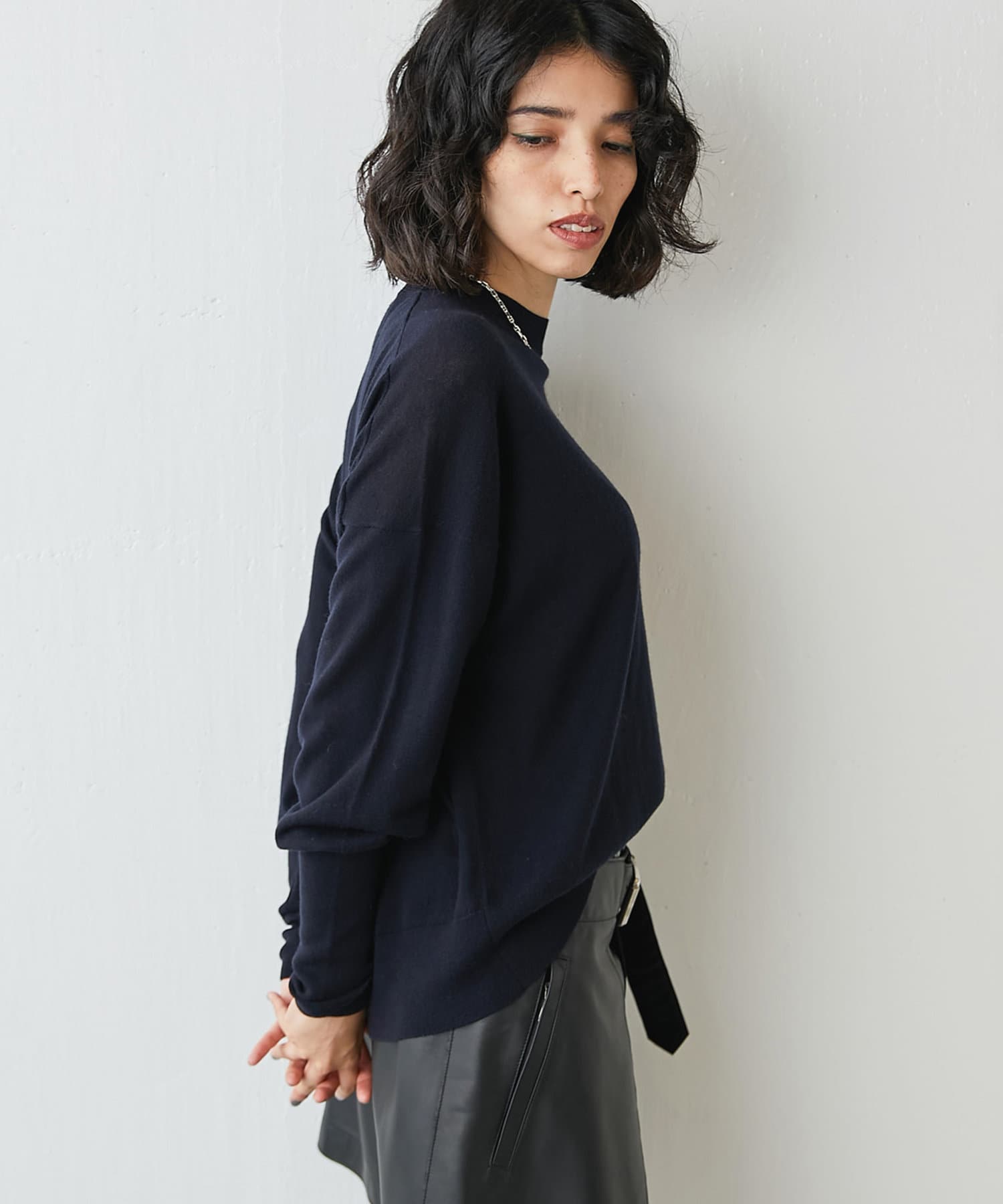 ■シンプルながらもディテールにこだわったニットは一枚で着ても様になり、これからの季節におすすめのアイテム。