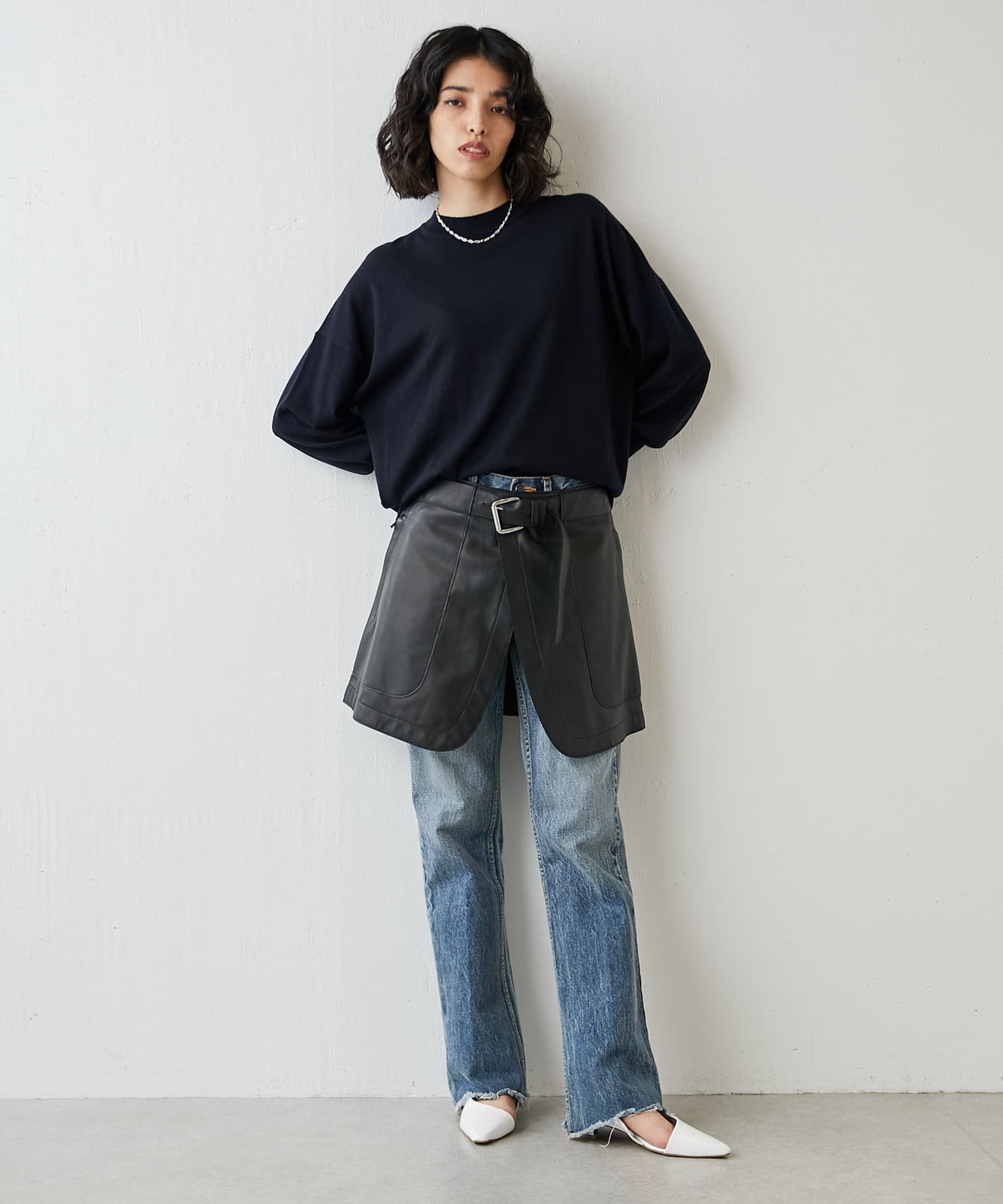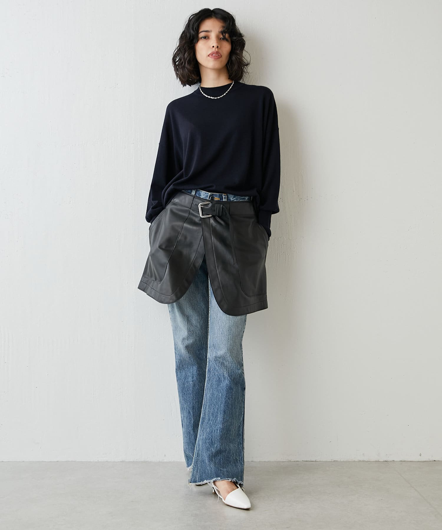 ■リブ切り替えの裾デザインは、アウトスタイルでも、ボトムインして軽くブラウジングしても◎。