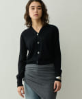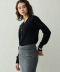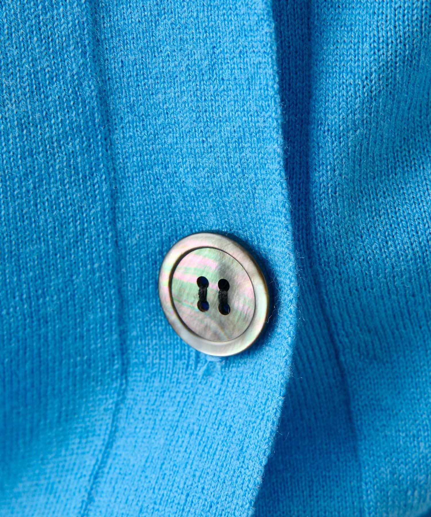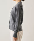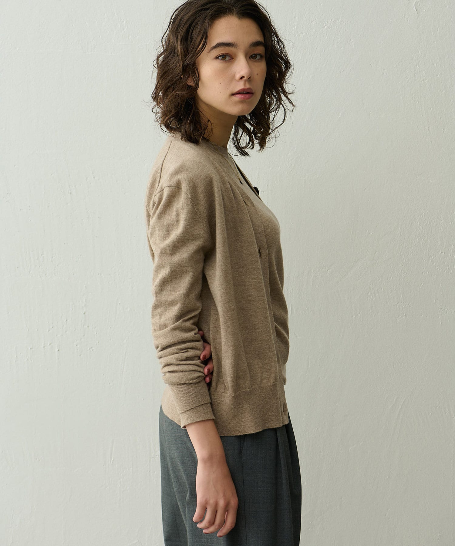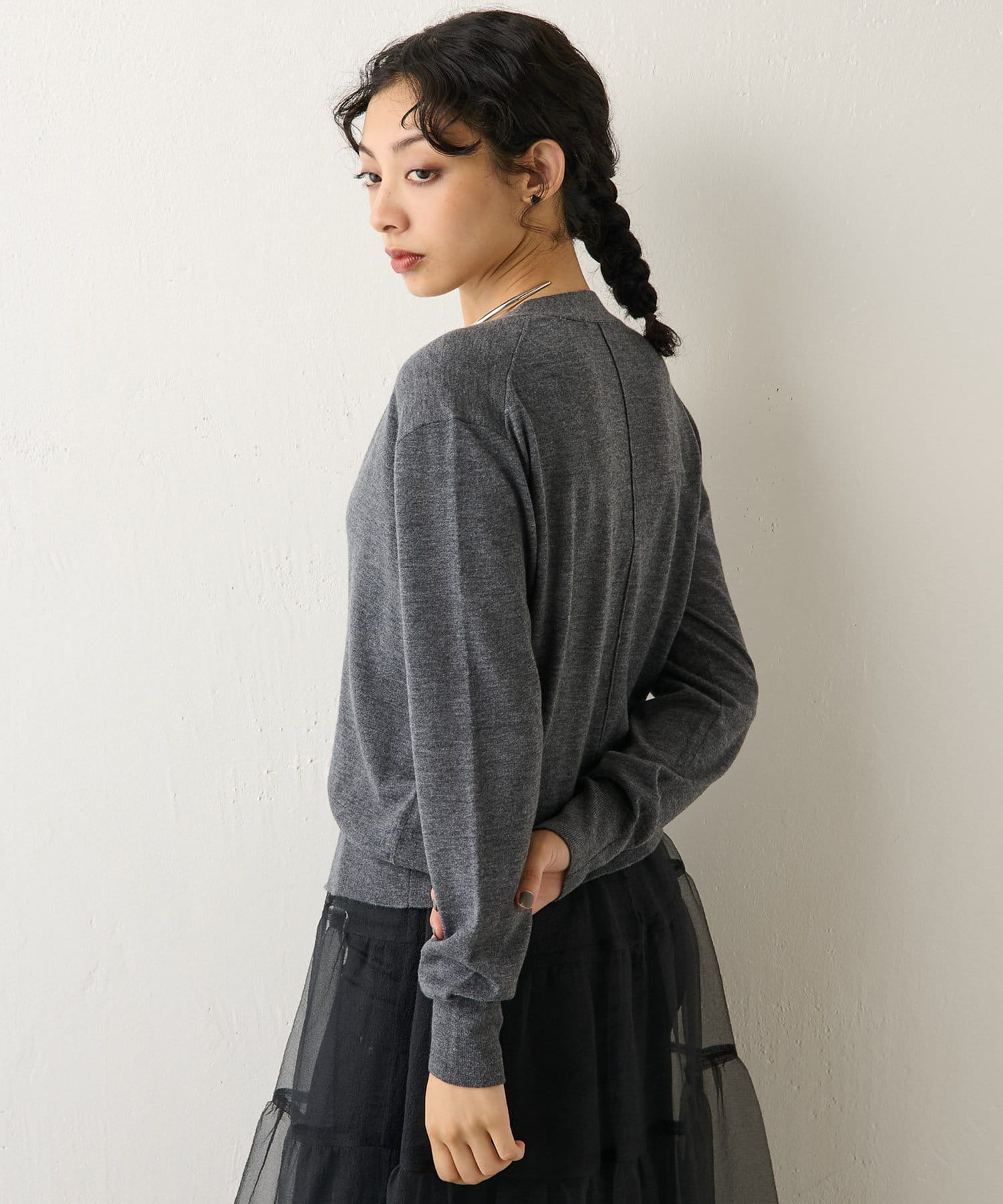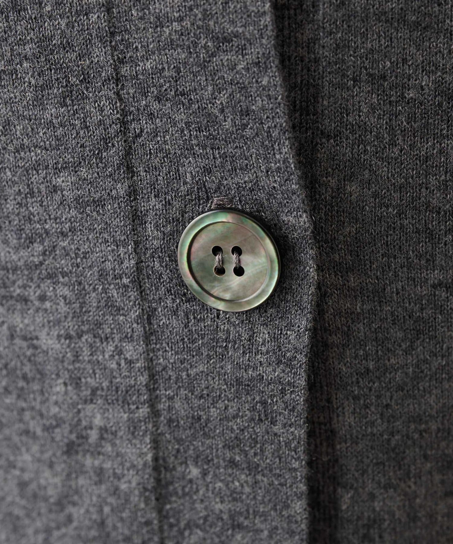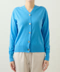 深過ぎないVネックカーディガン。ボタンを全てとめてプルオーバー風な着こなしもおすすめです。滑らかな肌のあたりで生地感が最高。薄手のニットは秋の始まりに活躍し、冬は素材感のあるボトムとの合わせも素敵ですよ。