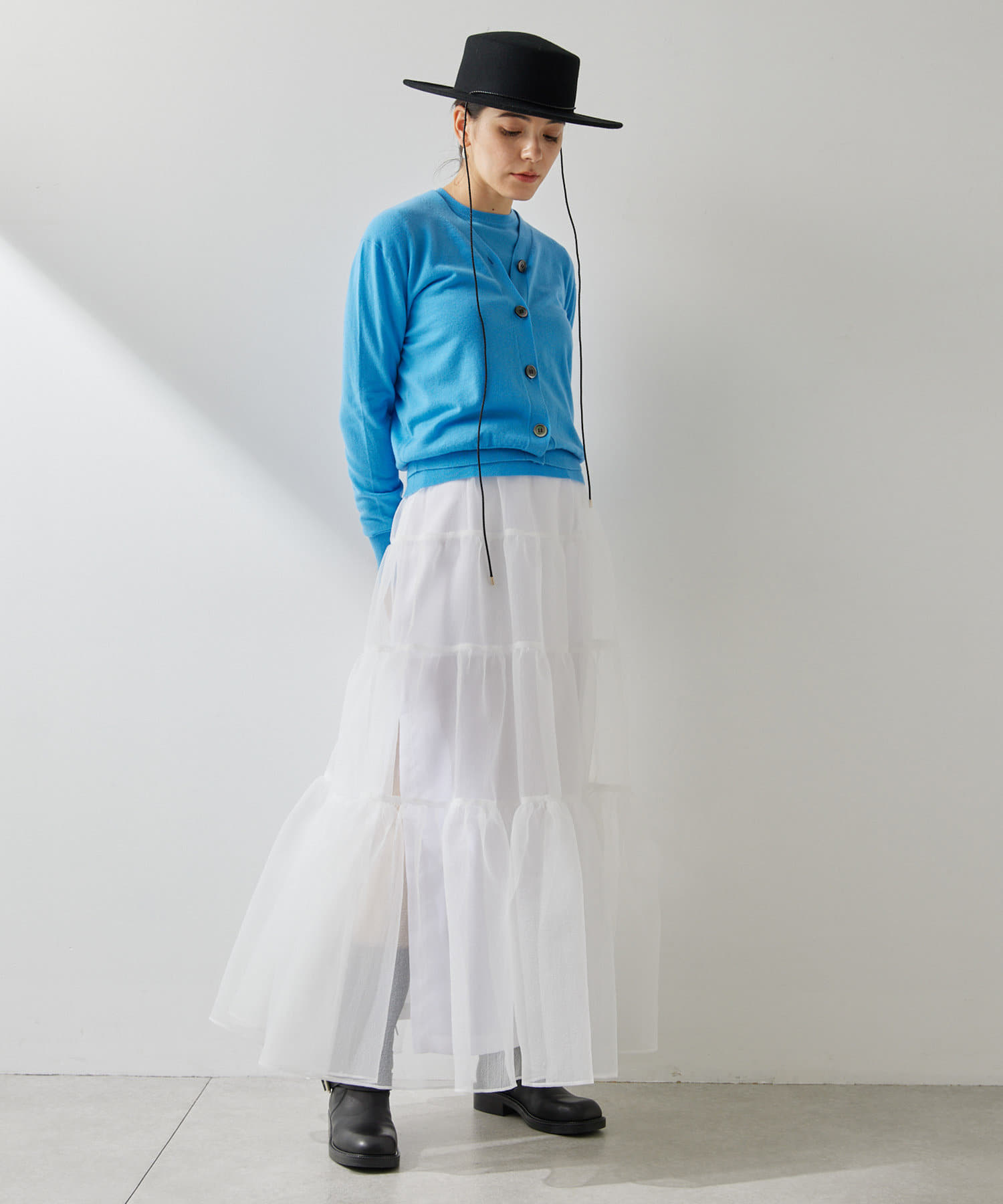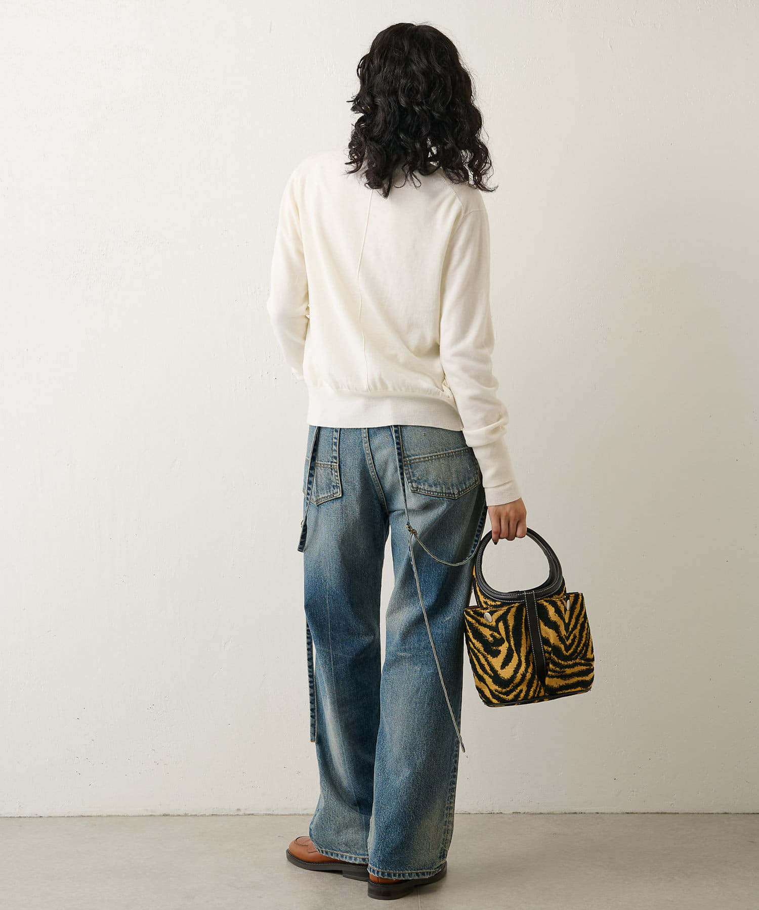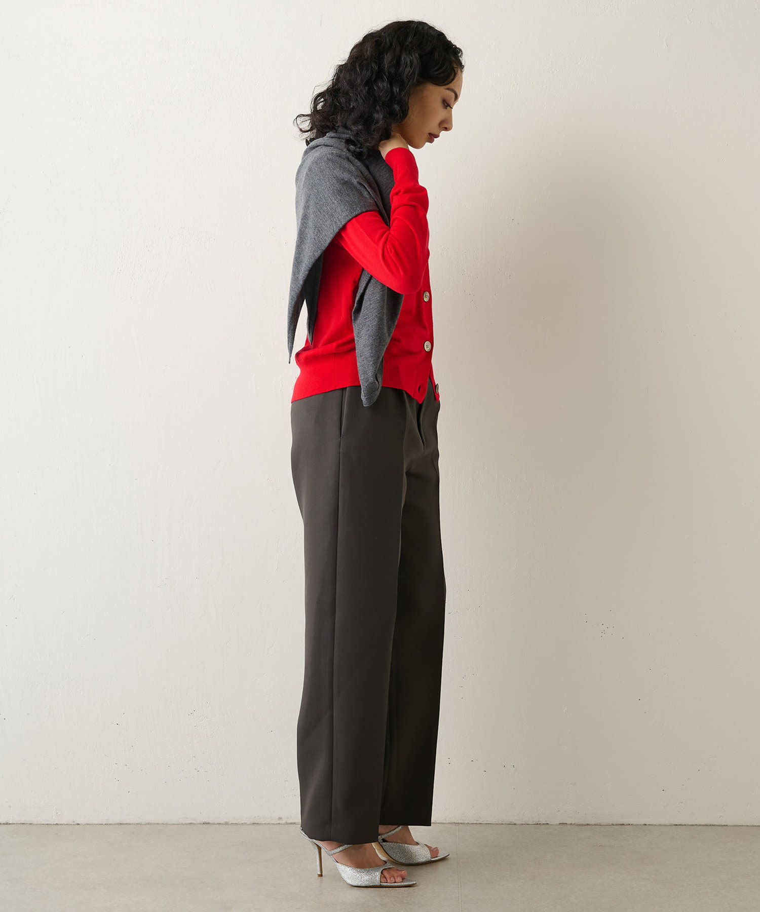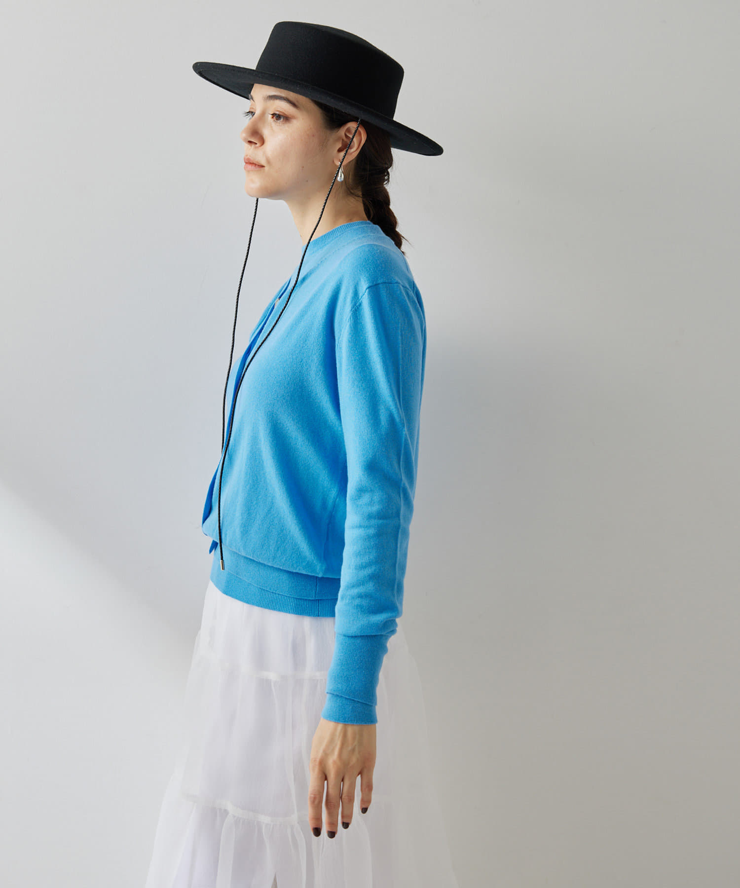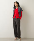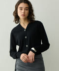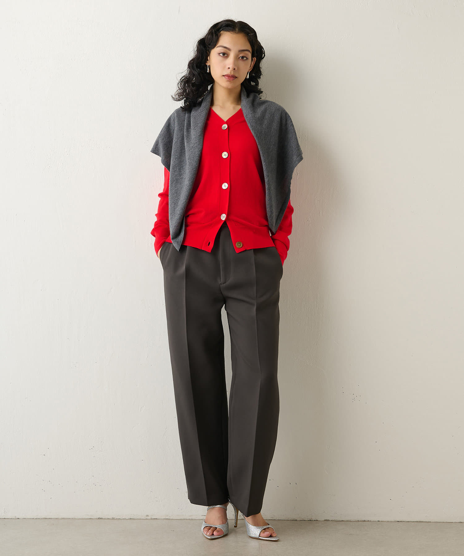 深過ぎないVネックカーディガン。ボタンを全てとめてプルオーバー風な着こなしもおすすめです。滑らかな肌のあたりで生地感が最高。薄手のニットは秋の始まりに活躍し、冬は素材感のあるボトムとの合わせも素敵ですよ。