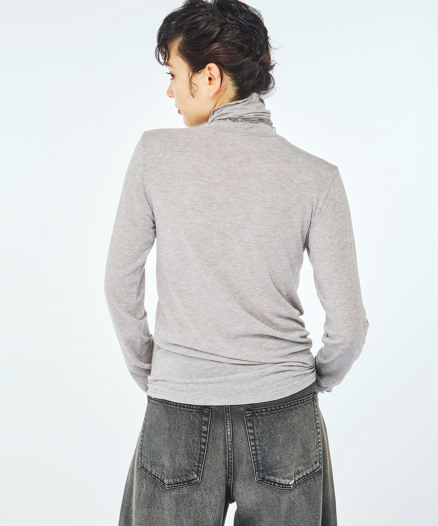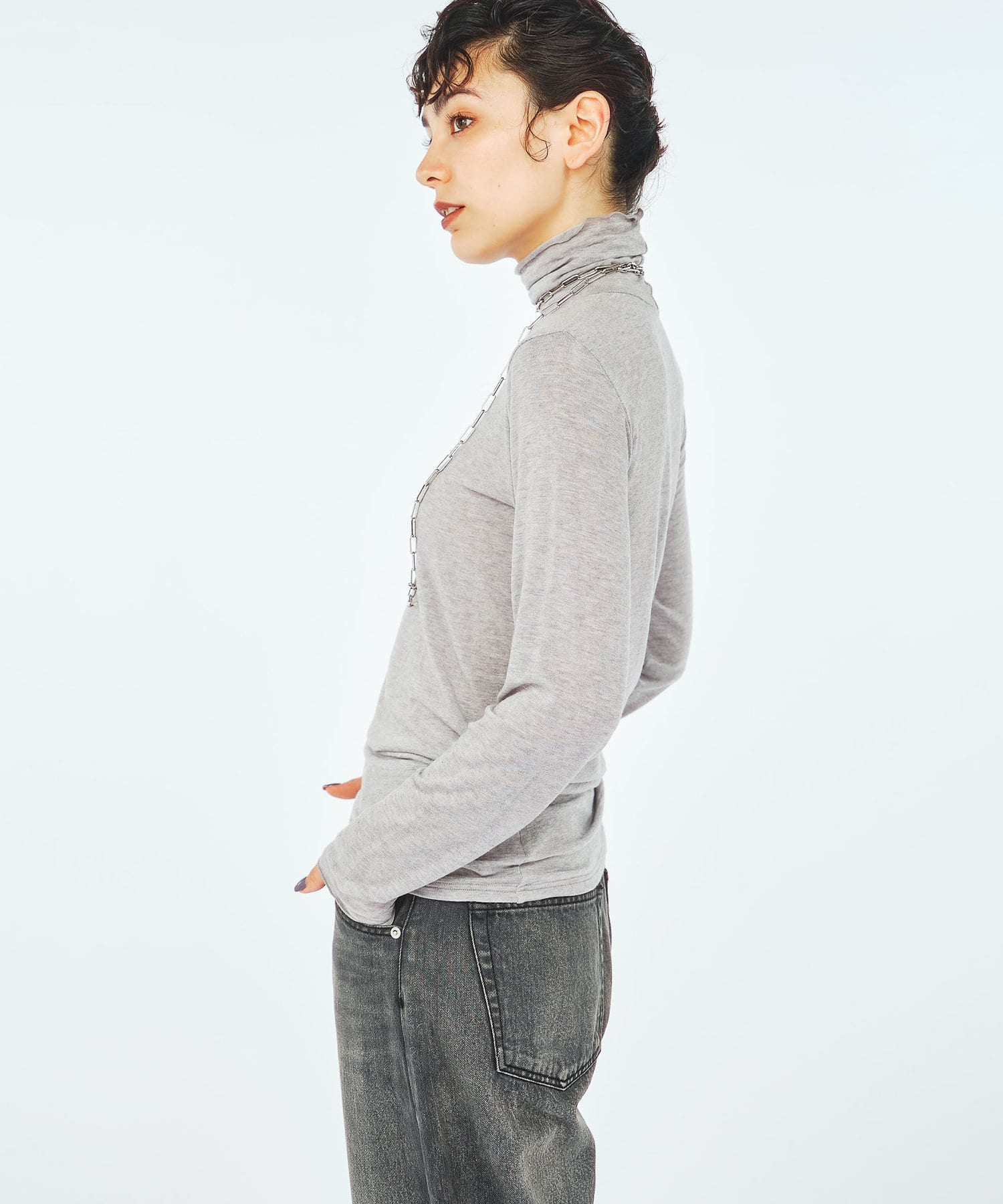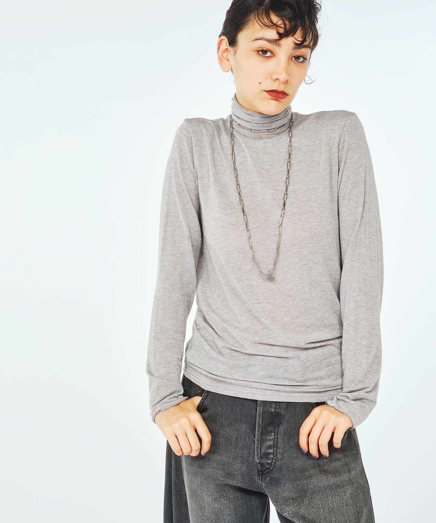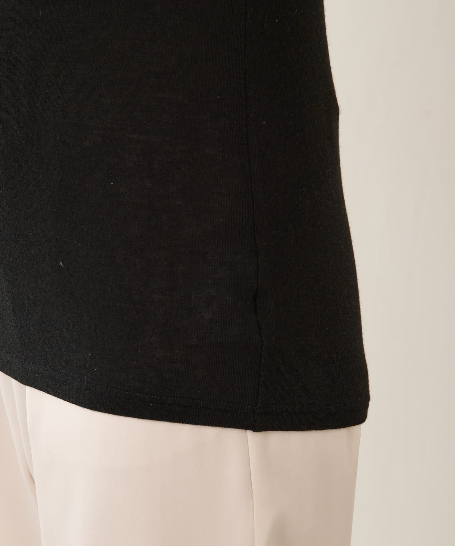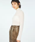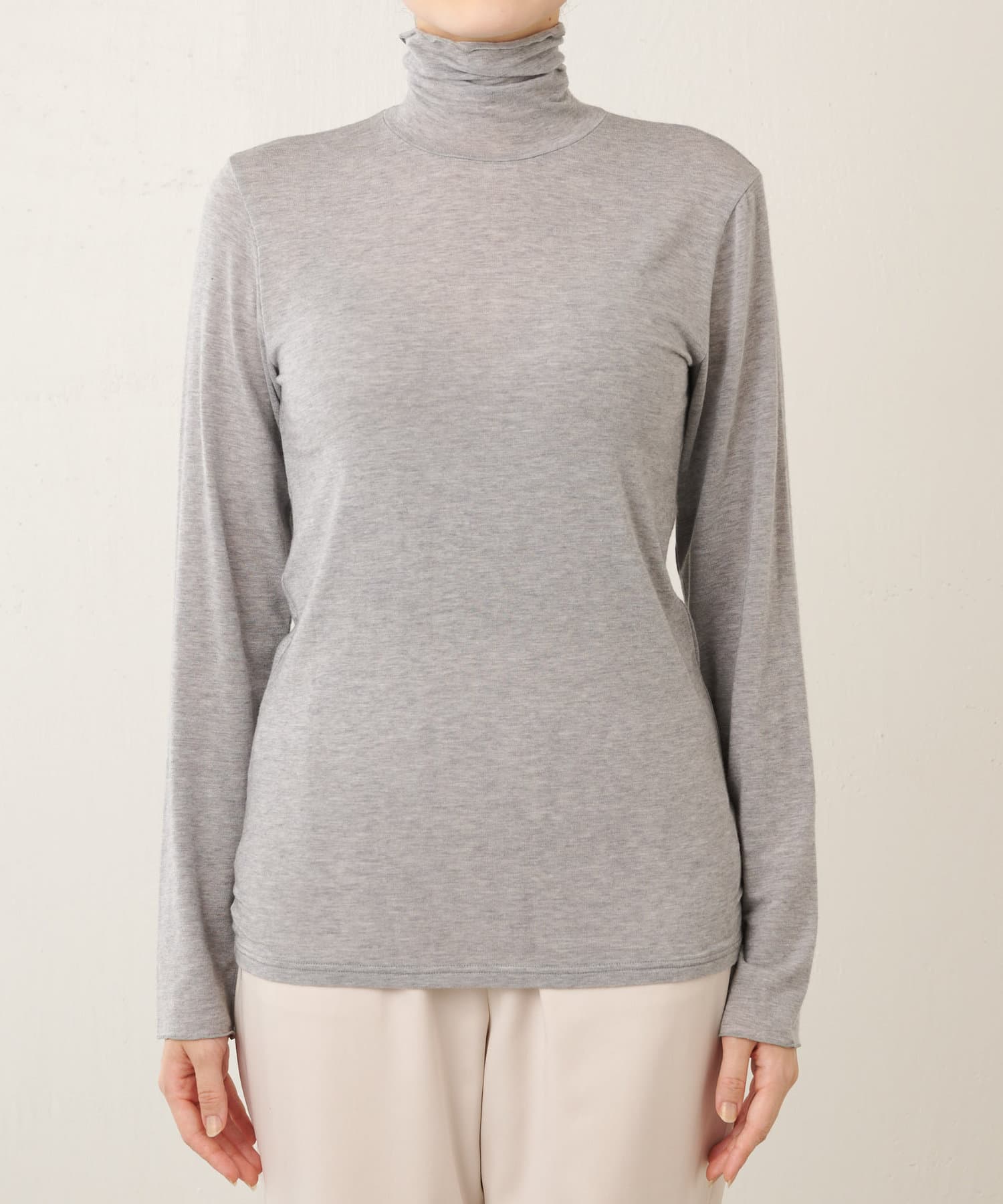 よく伸びて着心地の良いカシミアタッチのタートルカットソー。適度な透け感があり、大人っぽく着こなせるので、インナーでの使用はもちろん、一枚で着ても素敵です。
