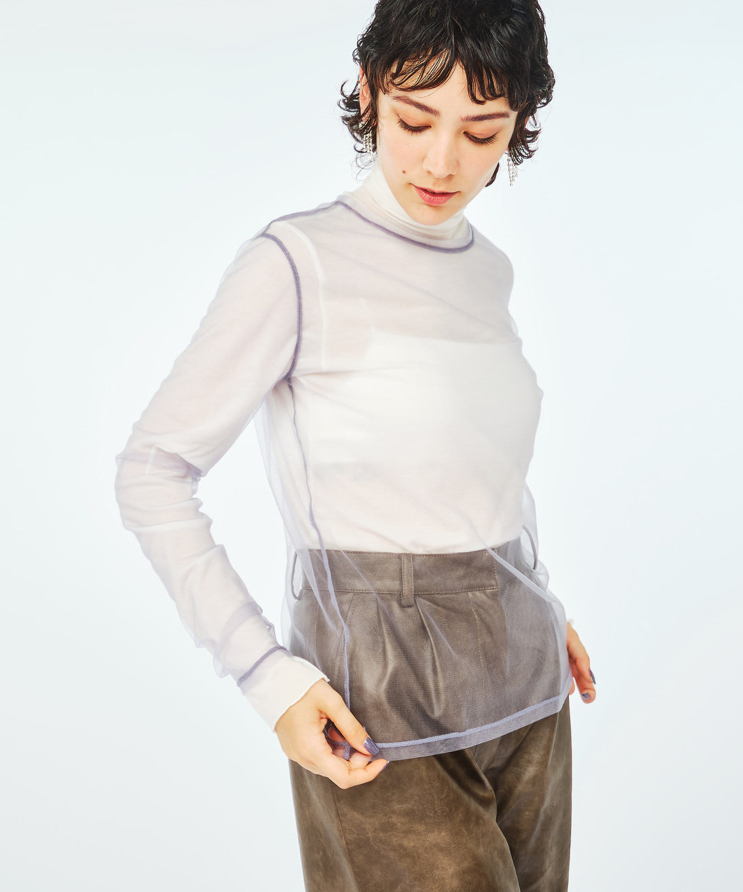 柔らかい肌触りで着心地が良く、ストレッチ性がある程良いサイズ感です。インナーは透け過ぎないので、一枚でも抵抗感なくレイヤードアイテムとしても活躍します。