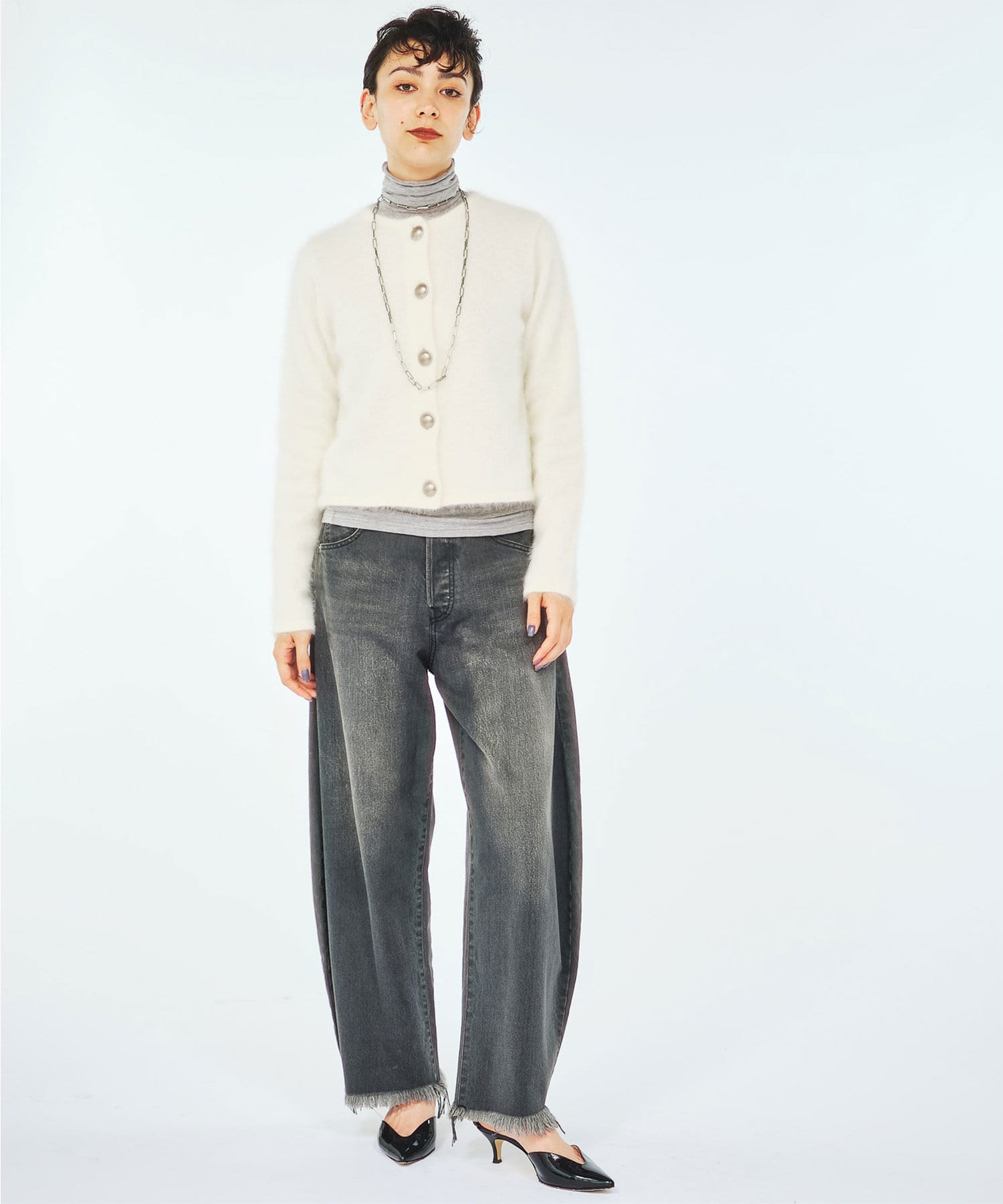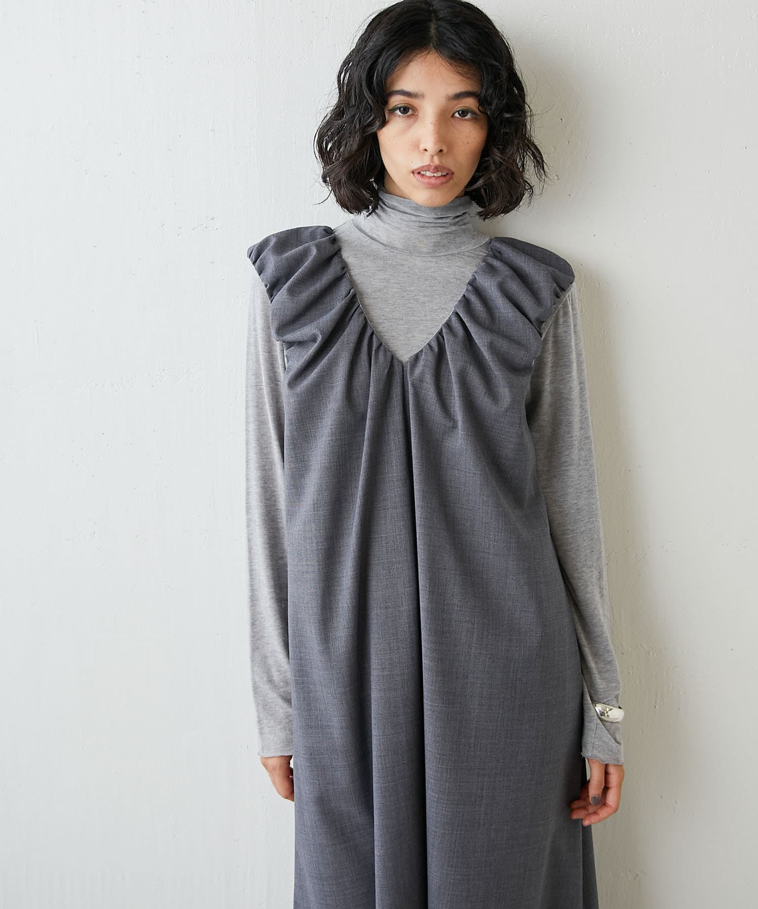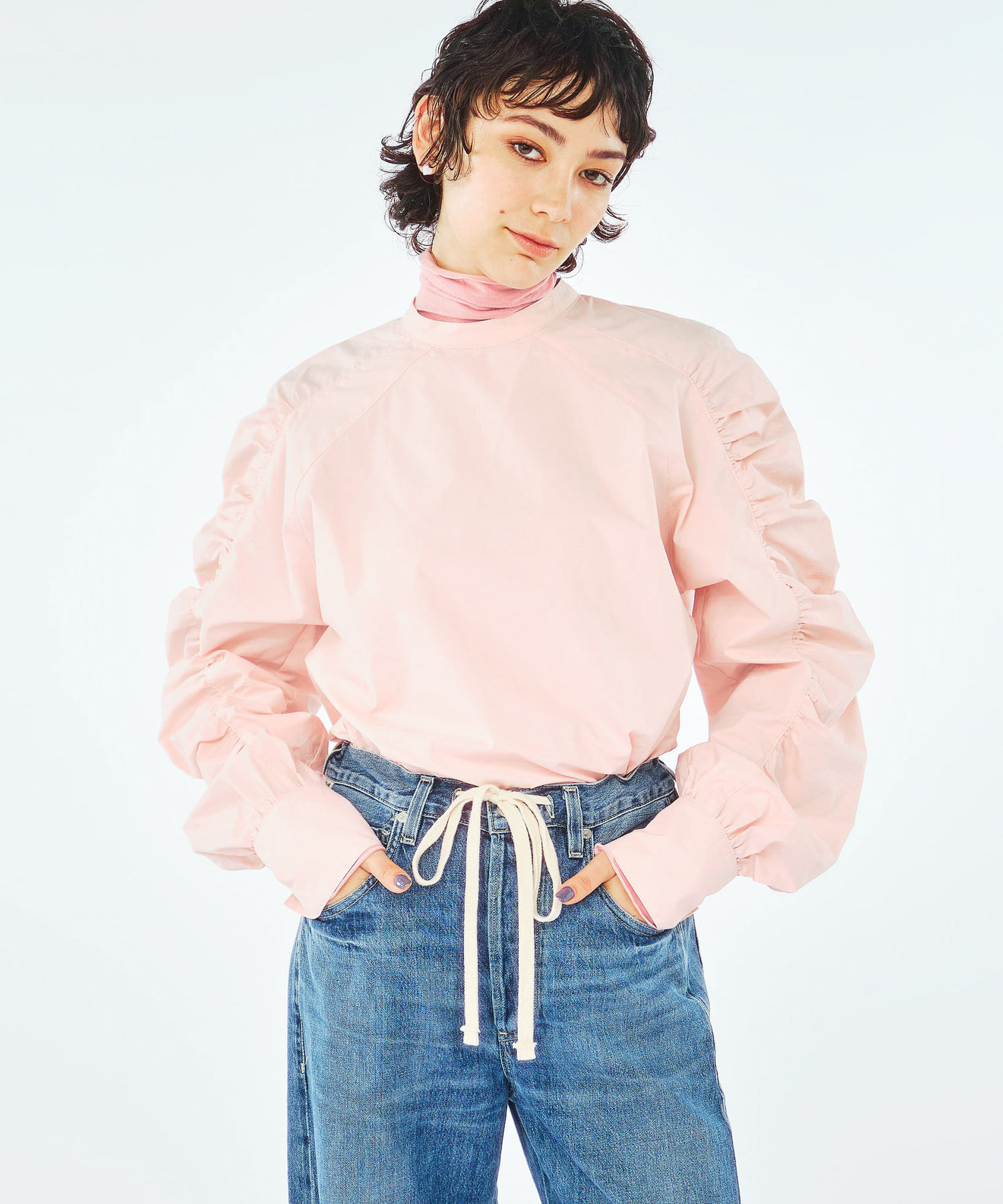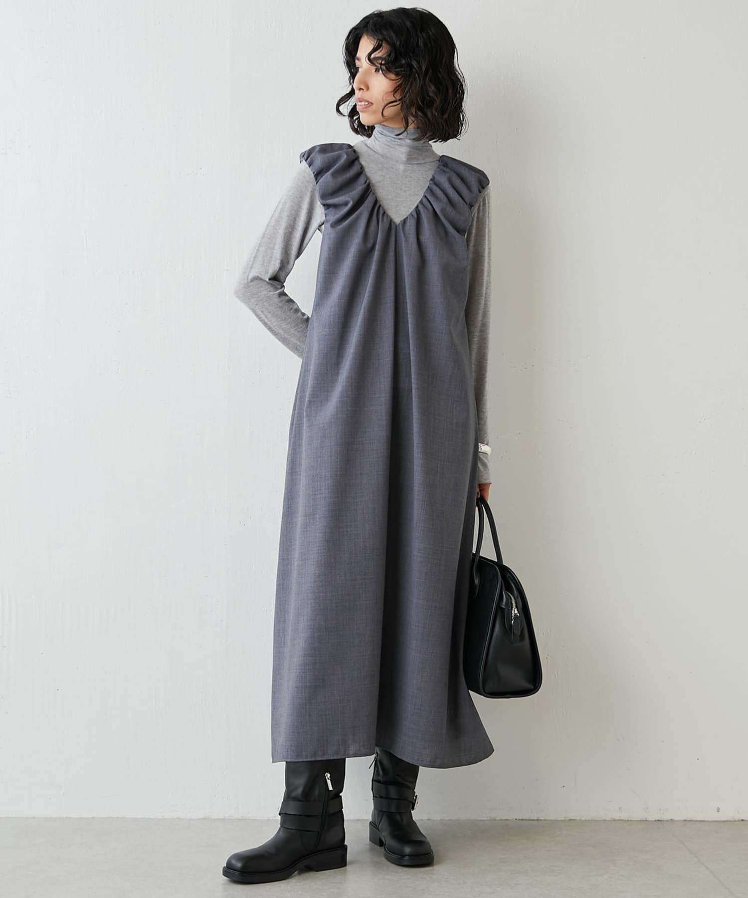 ■重ね着しても響きにくく、一枚で着てもぴったりし過ぎない絶妙なサイズ感がスタイリングしやすい一着。