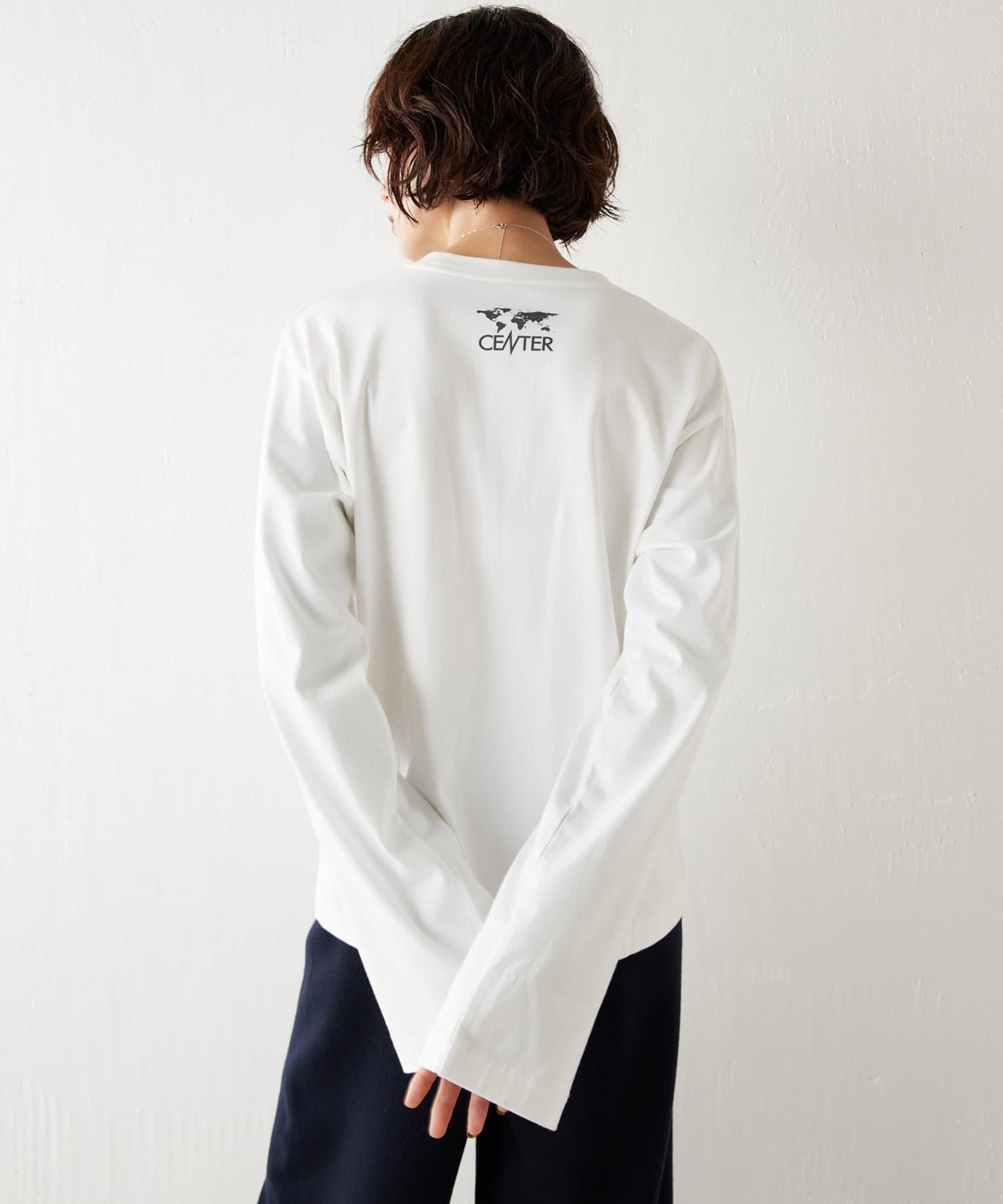 今回は袖に向かって広がるデザインが素敵なデザイン。袖の部分にさり気なくロゴが入っていたり、背中にもポイントがあります。こなれ感のでるロンTは探すとなかなか出会えないと思います。柔らかい質感で肌のあたりも気持ち良いです。年間を通して投入していただけます。
