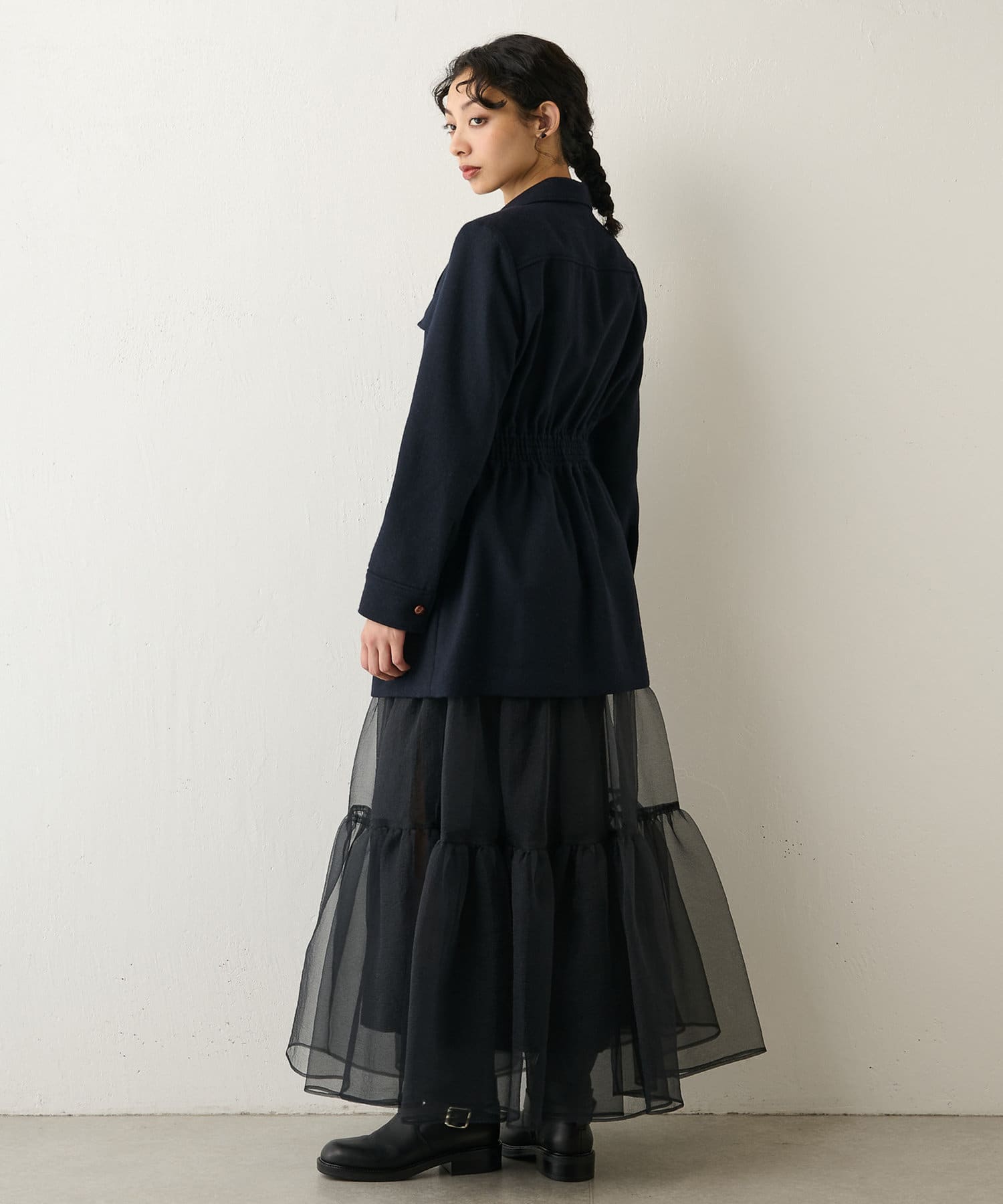 ■中肉厚のウールを使用し、一枚着からアウター使いまで幅広いコーディネートで活躍。