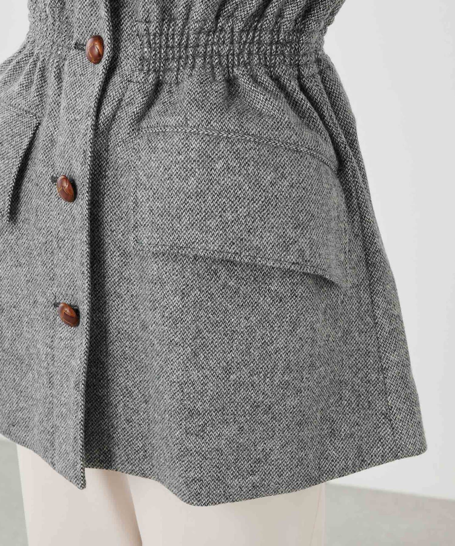 ■メリハリのあるウエストデザインに、ポケットの大きさなど細部までこだわった一着。