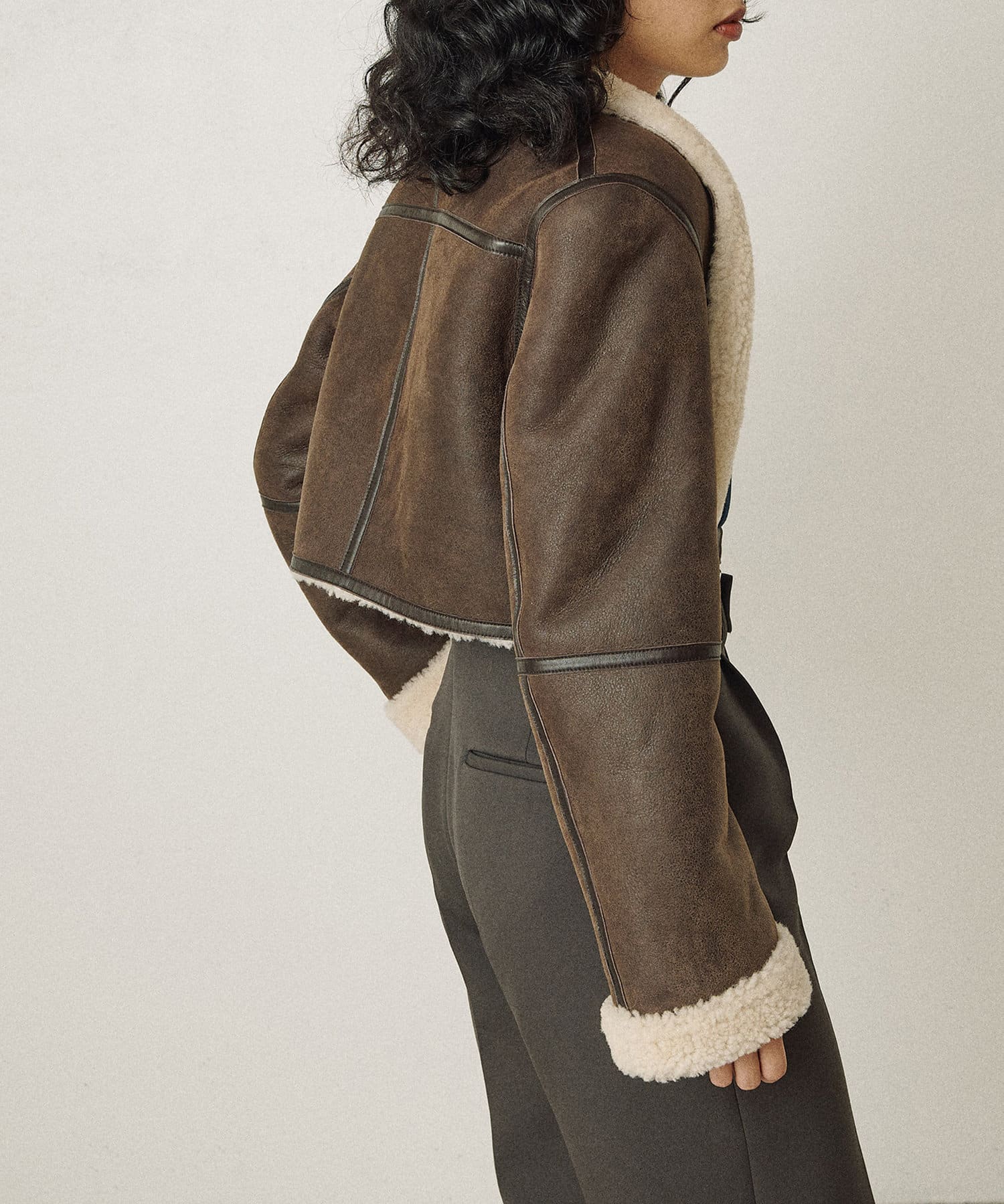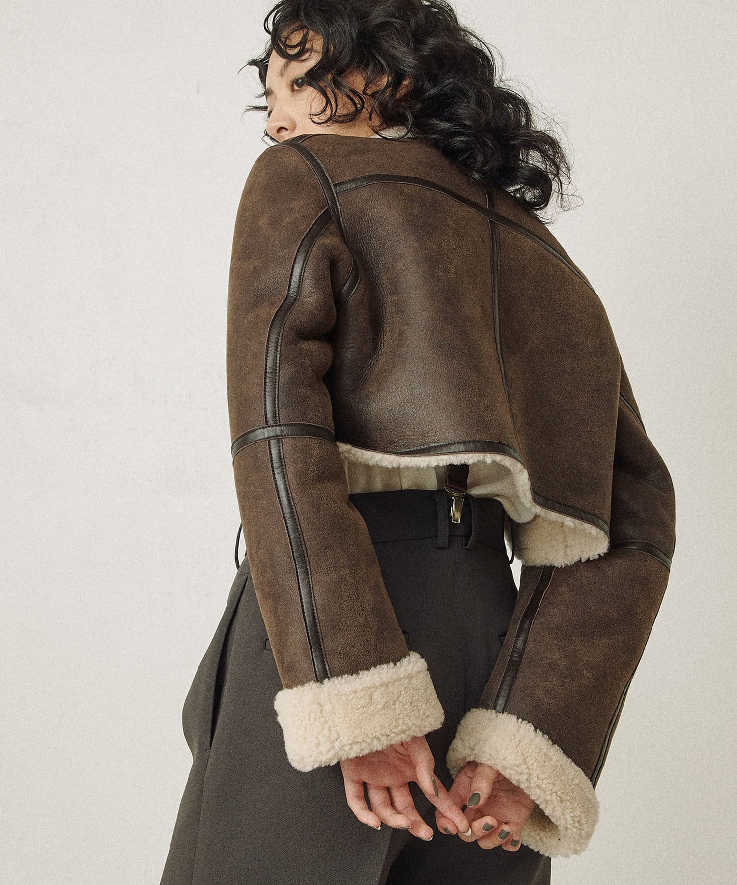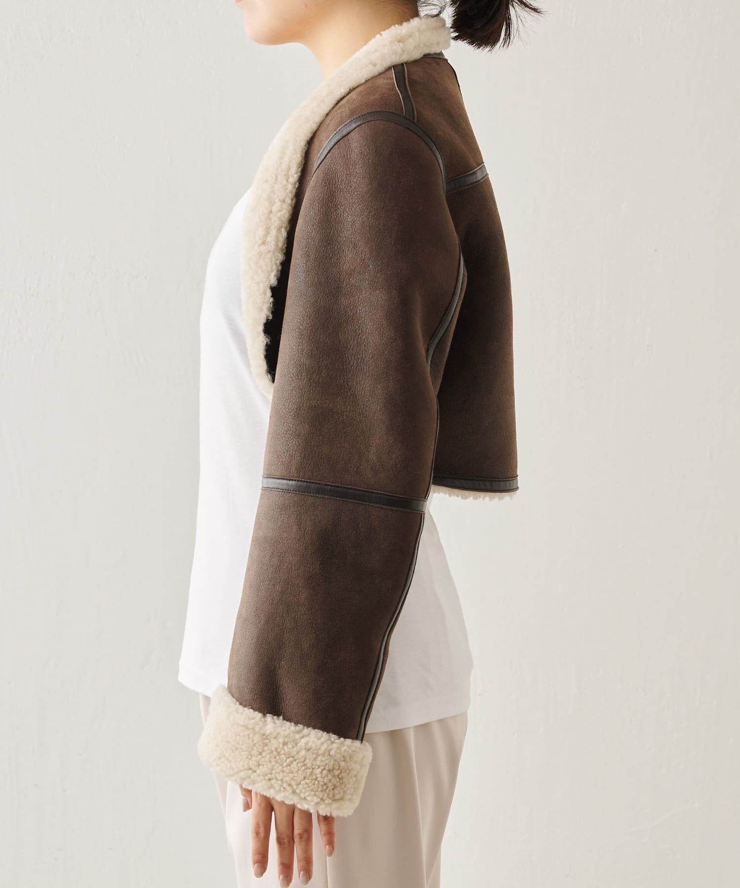 ■上質なシープレザーを使用したムートンショートジャケット。