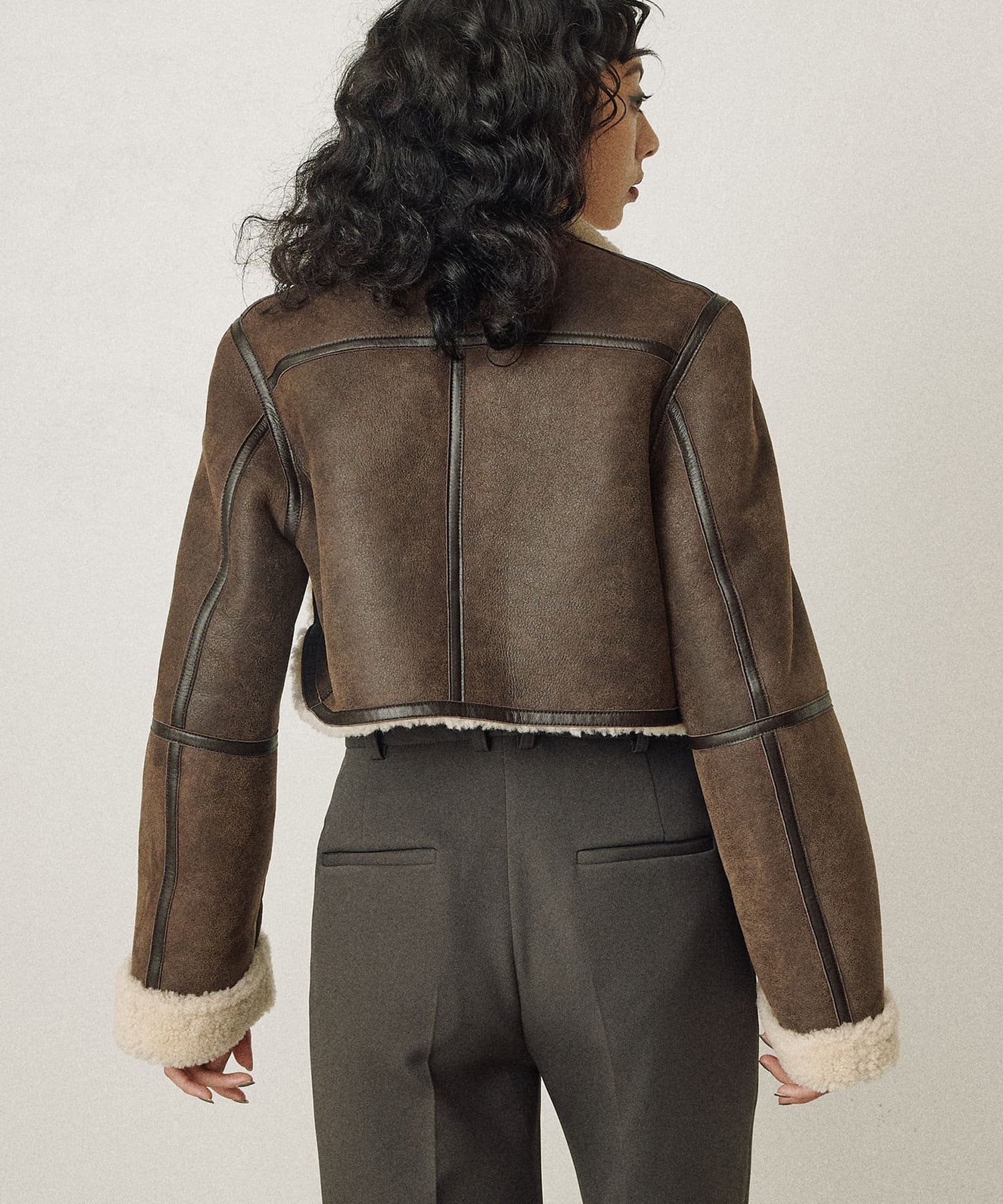 ボアとのコントラストが存在感を放つ、深みのあるブラウン。