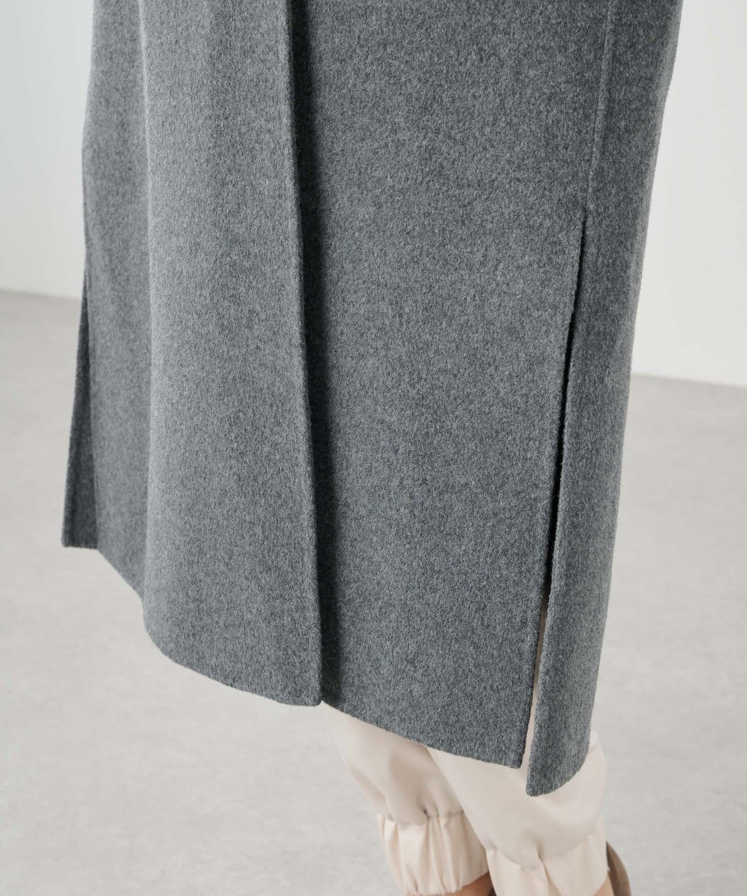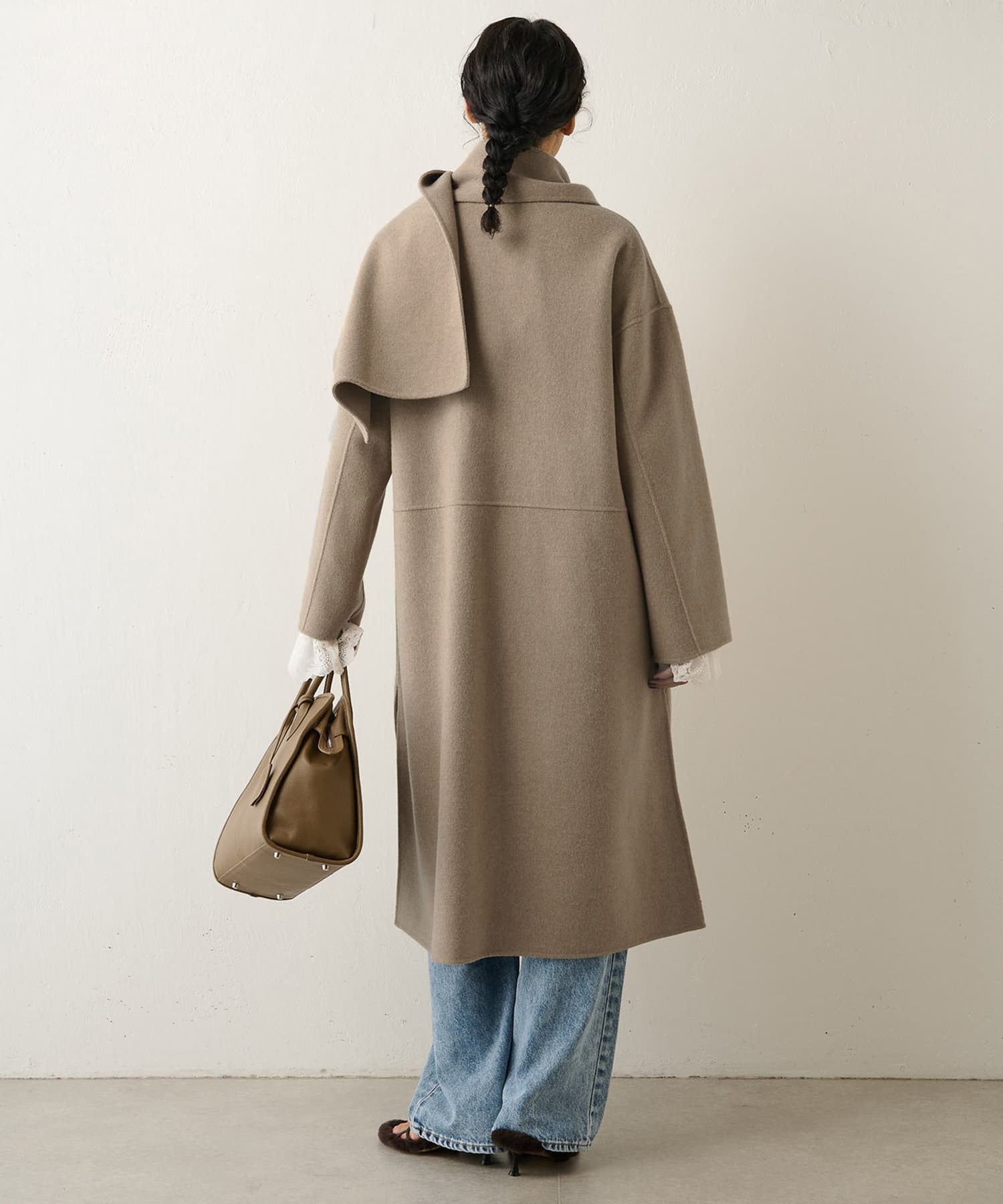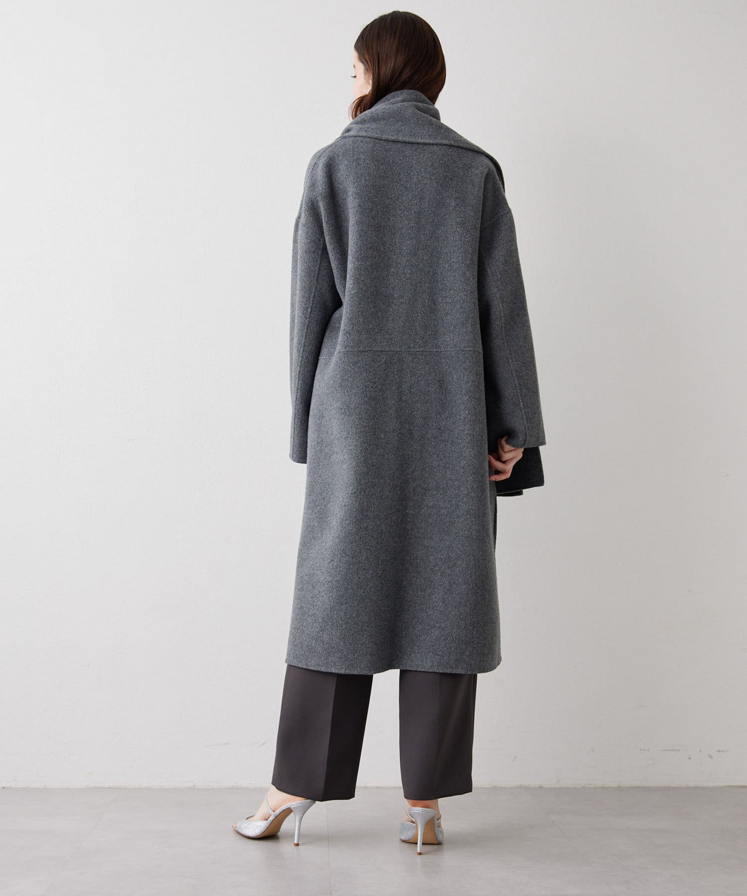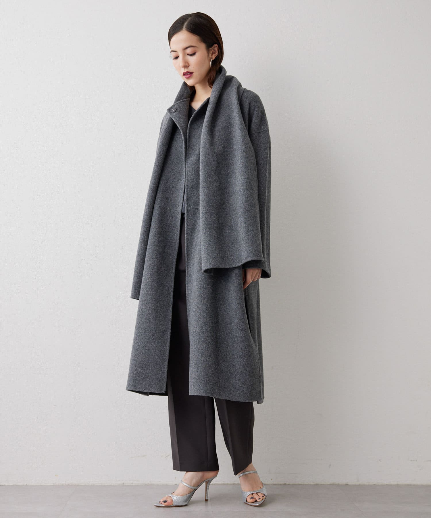 ■コートと同素材のストールがセットになったリバーコート。