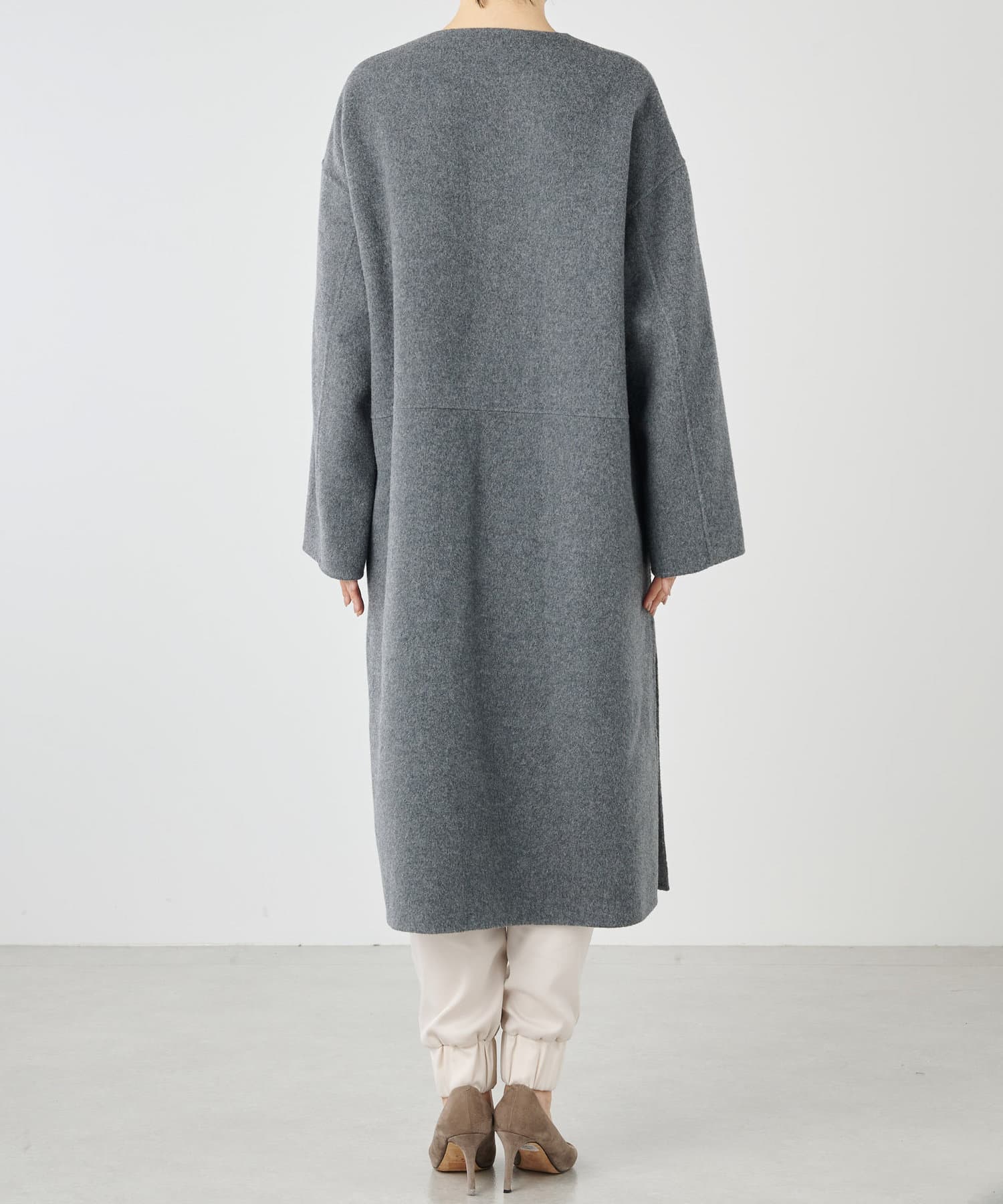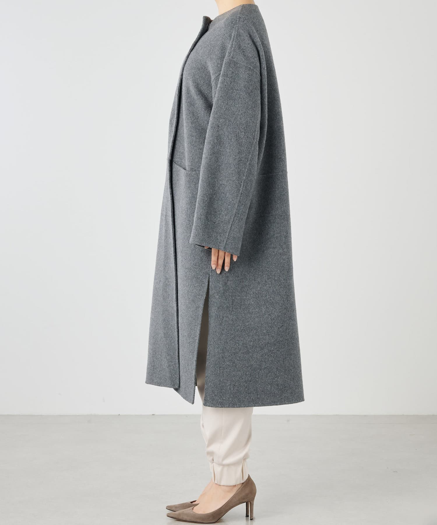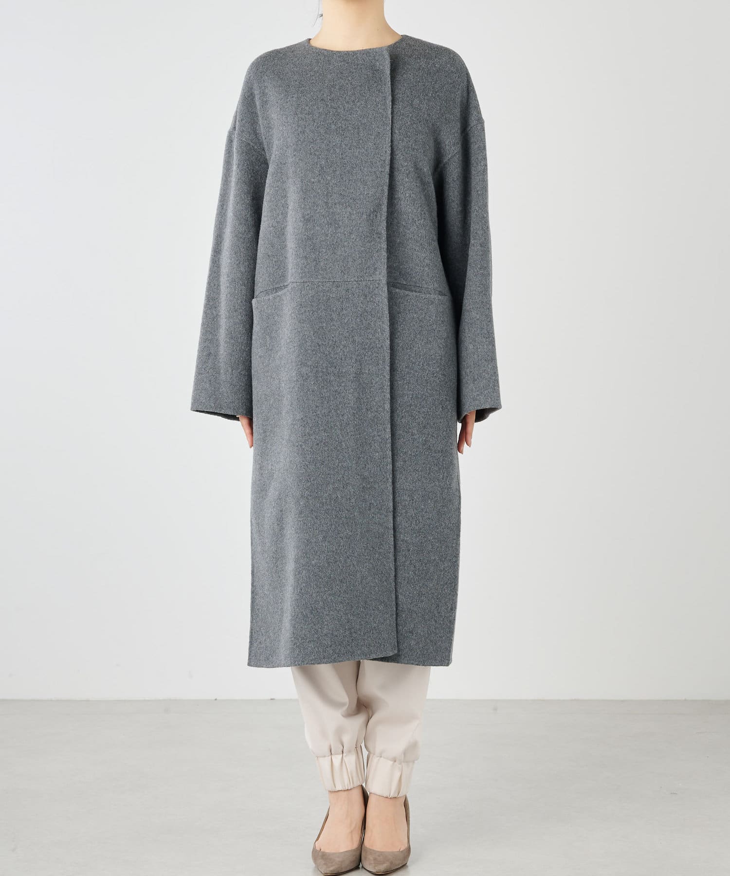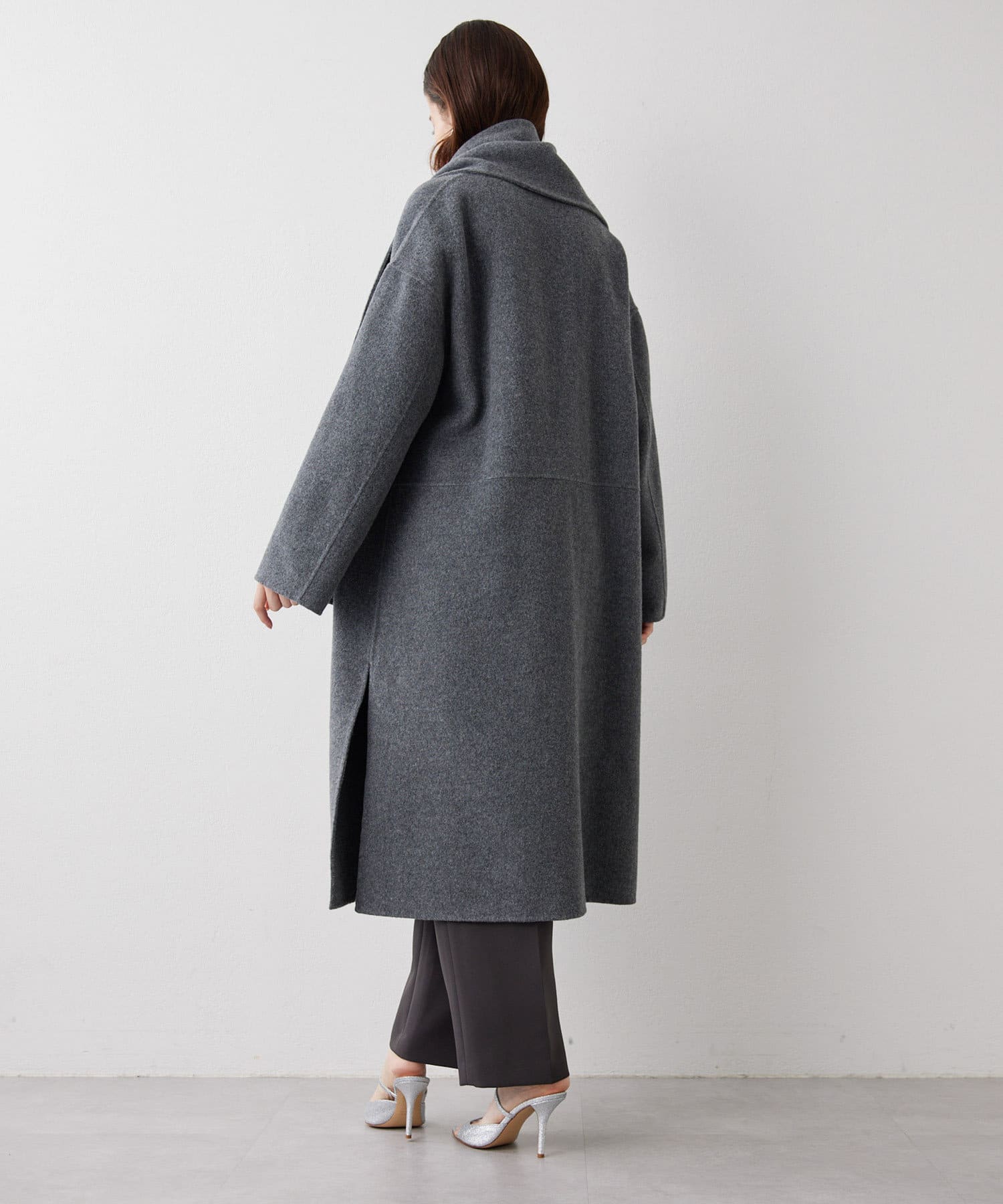 ■コートと同素材のストールがセットになったリバーコート。