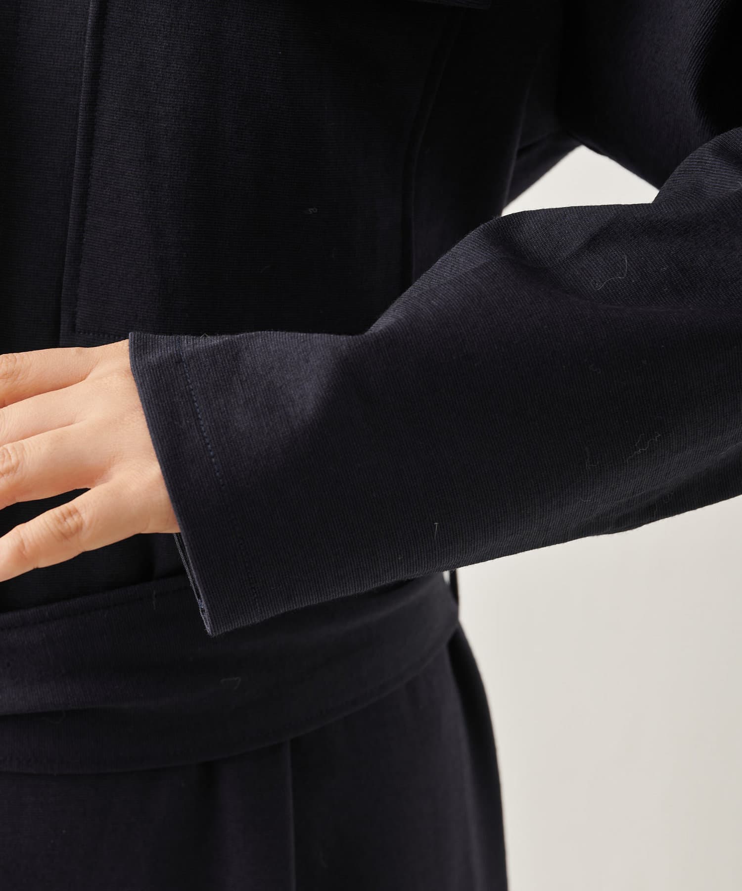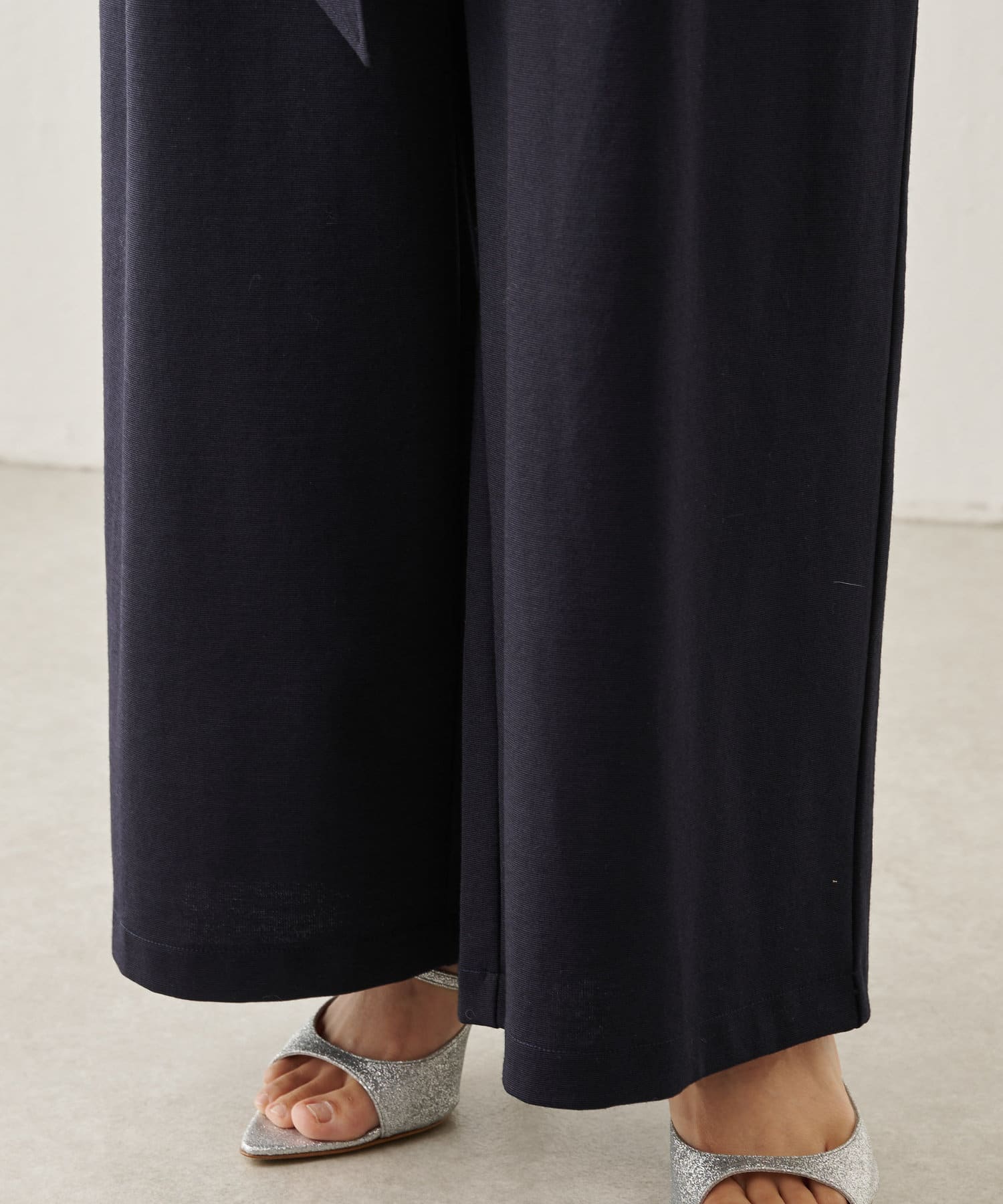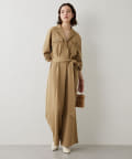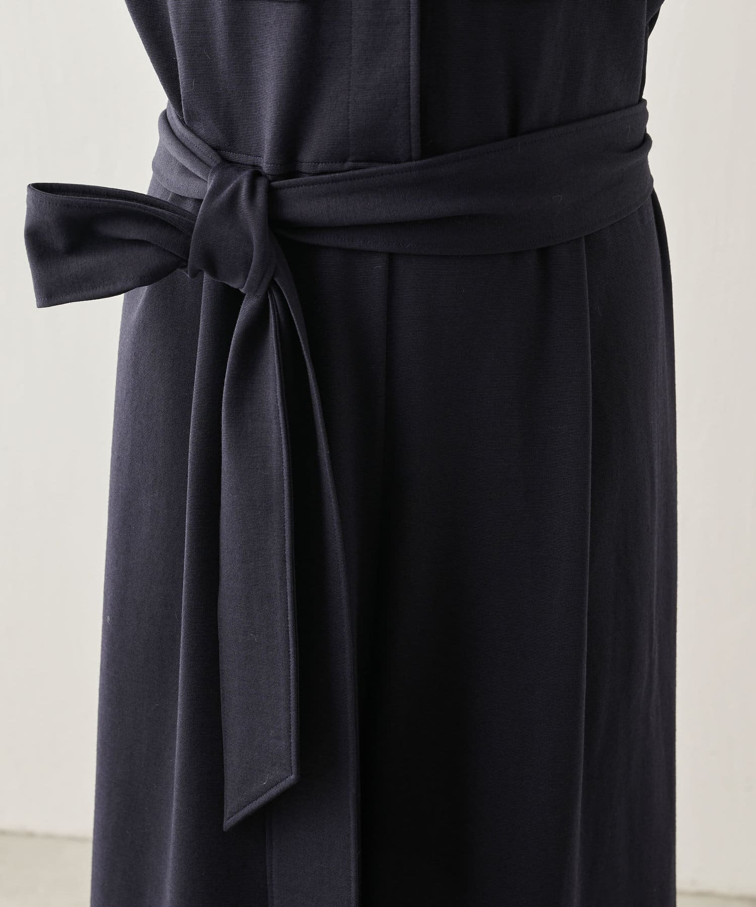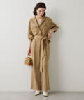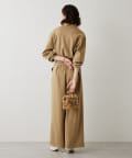 私の身長ですと共布ベルトでマークして、ヒール合わせがちょうど良い丈感。フラットシューズですと裾カットが必要です。ベルトを外せば、体型カバーもできますよ。柔らかでストレッチ性があるので、楽に着用できます。