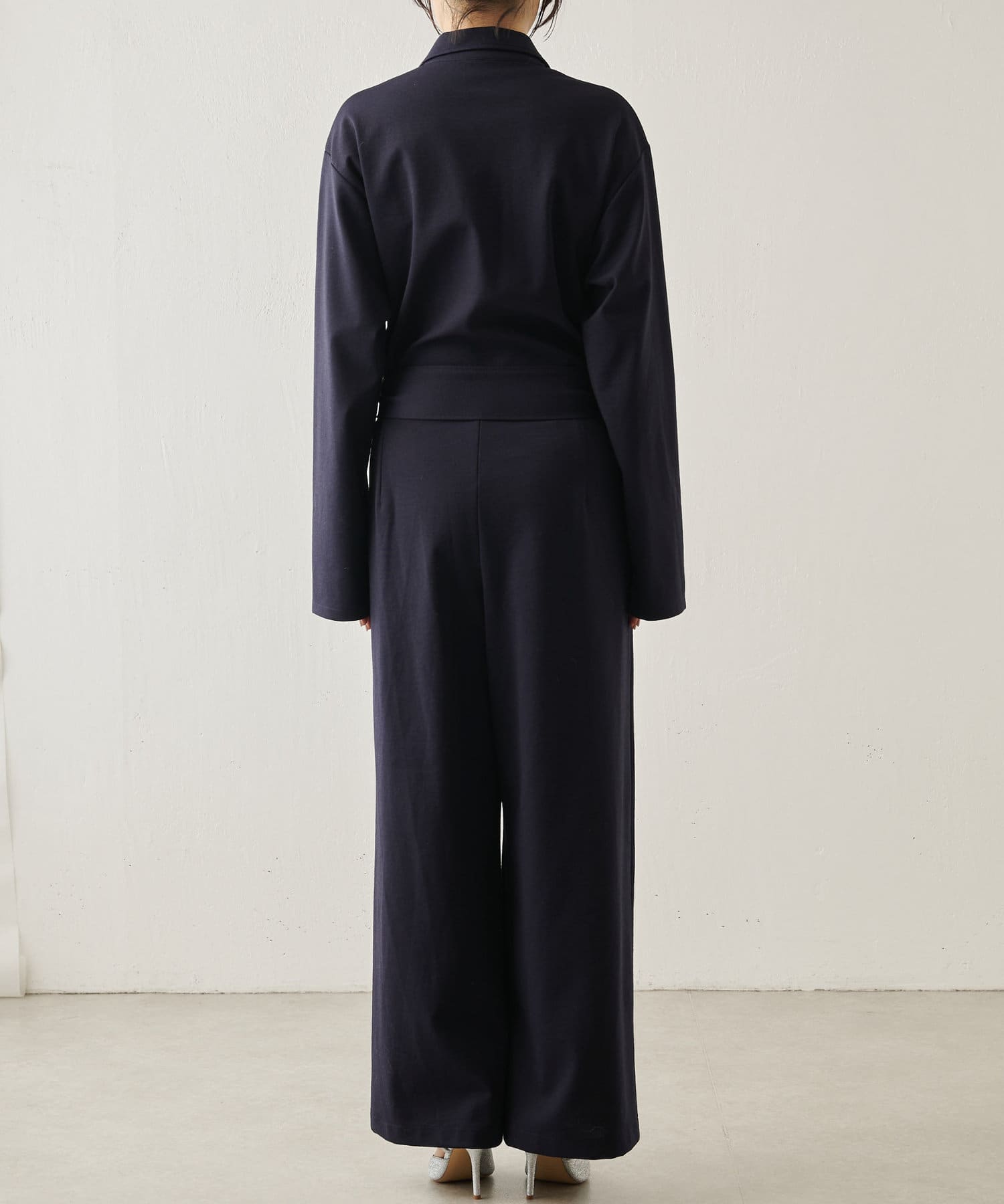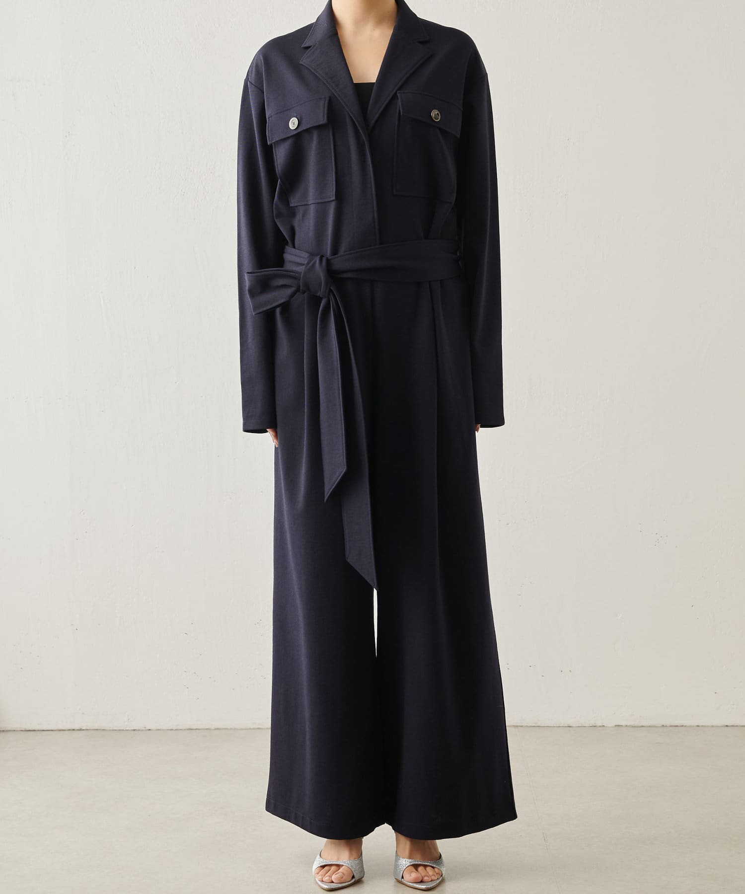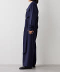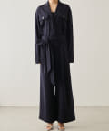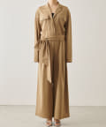 ■オープンカラーとウエストのドローストリング使いがモード感をアップ。