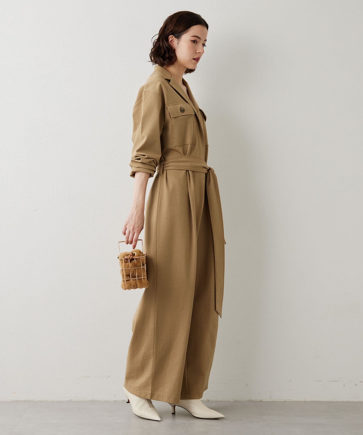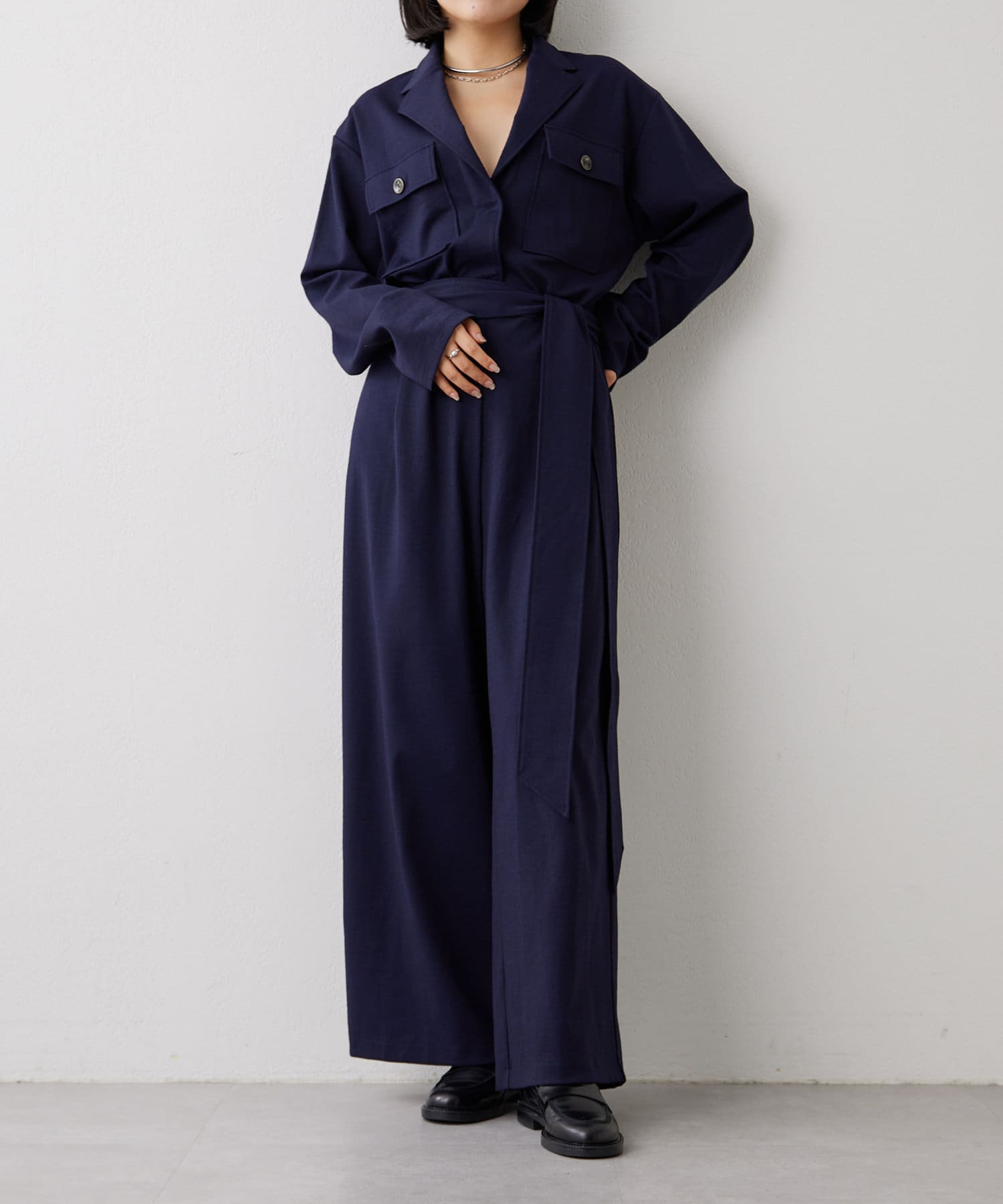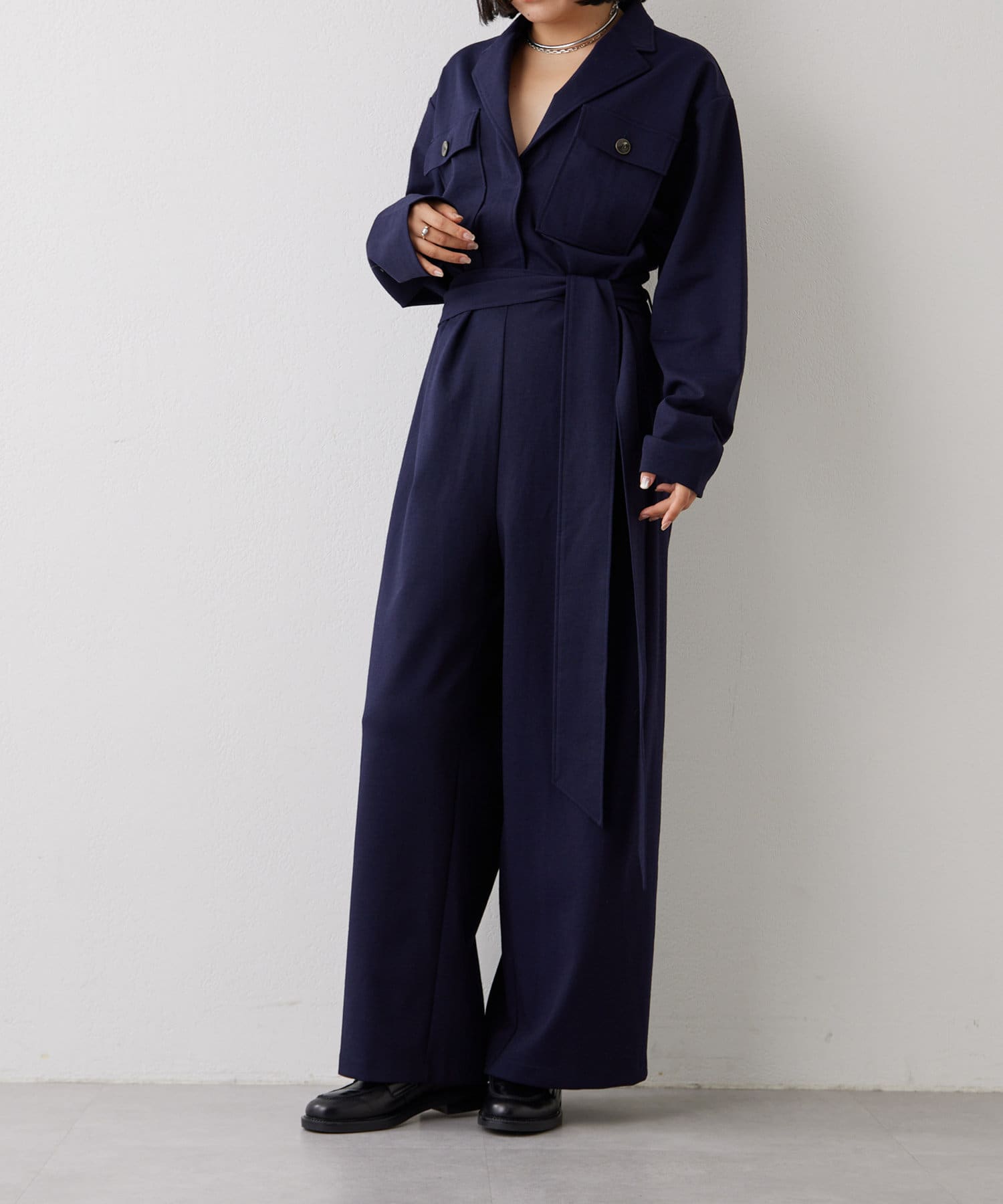 ■あえてメンズのジャンプスーツのようなデザインに仕上げた一着。